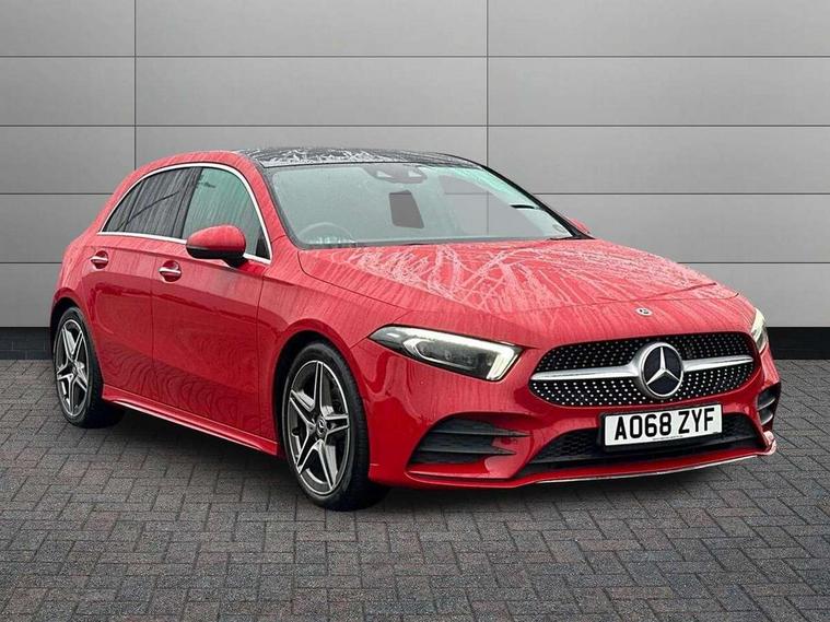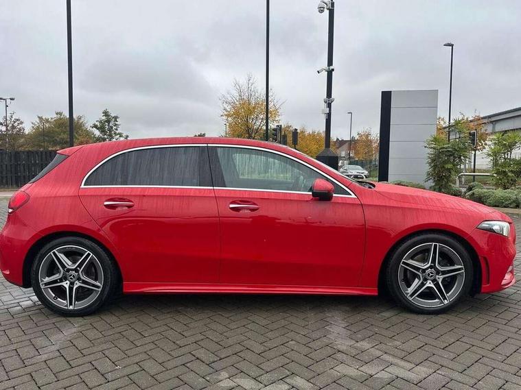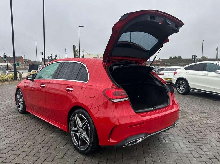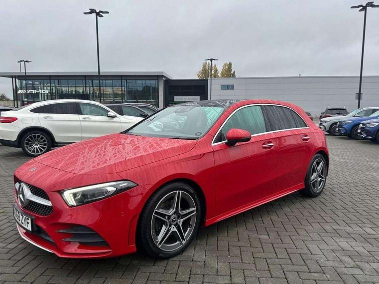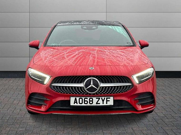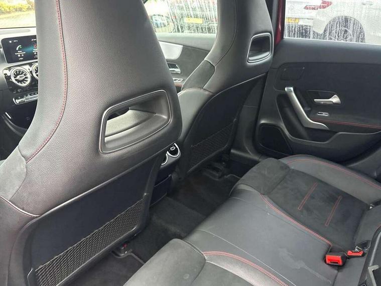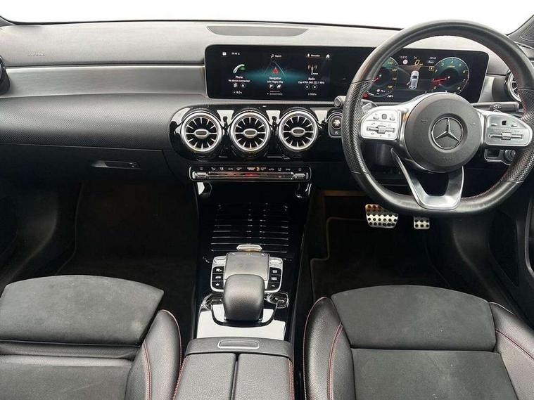 10.25" Digital instrument cluster display screen, 10.25" media display, Active lane keep assist, Active park assist with parktronic system, Attention assist, Bulb failure indicator, Cruise control + speed limiter, Direct steering, DYNAMIC SELECT with a choice of driving modes (ECO, Comfort, Sport, Sport+ and Individual), External temperature gauge, Low fluid warning light, Mercedes connect me with remote online services, Radio aerial integrated into roof spoiler, Reversing camera, Service indicator (ASSYST PLUS), Speed sensitive power steering, Stop/start system, Trip computer, Voice control system, Warning lamp for direction indicators, Lowered comfort suspension, 2 USB ports in centre console, DAB Digital radio, MBUX Multimedia system including digital instrument cluster and phone mirroring, Mid-range sound system, Adaptive brake lights, Adaptive high beam assist plus, AMG body styling, Auto dimming driver's door mirror, Auto dimming rear view mirror, Body colour bumpers, Body colour door handles, Body colour side skirt, Body coloured door mirrors, Chrome beltline trim, Diamond radiator grille with chrome pins and silver louvre + chrome insert, Electric adjustable heated door mirrors, Electric folding door mirrors, Electric front windows, Electric rear windows, Headlamp assist, Heated rear window with timer, High level third brake light, LED daytime running lights, LED Headlights, LED rear lights, Panoramic sliding sunroof, Rain sensor windscreen wipers, Rear fog lights, Rear wiper, Twin Trapezoidal tailpipes, 1/3 to 2/3 split folding rear seats, 12V socket, 3 spoke flat bottomed nappa leather sport steering wheel, AMG floor mats with red stitching, Artico man-made leather/Dinamica upholstery, Auto Mercedes-Benz child seat recognition sensor, Black headlining, Brushed stainless steel sports pedals with rubber studs, Controller on centre console with chrome surround, Dual zone automatic climate control, Electric front seats with memory function, Exit lights, Footwell lights, Front and rear reading lights, Front centre armrest with storage compartment, Front door sills with Mercedes Benz lettering, Front head restraints, Front seat backs luggage nets, Front sport seats, Gearshift paddles on steering wheel, Heated front seats, Height adjustable front seats, Height/reach adjustable steering column, Illuminated cup holders, Illuminated door sills, Illuminated glovebox, Illuminated storage compartment, Integrated head restraints, Interior door handle illumination, Interior lighting - 64 colour Ambient lighting, Isofix rear child seat preparation, Load securing rings in luggage compartment, Luggage compartment cover, Multifunction steering wheel, Oddments tray lighting, Reading lights, Rear armrest, Rear head restraints, Storage compartment under load area floor, Sunvisors with illuminated vanity mirrors, Touchpad, Twin front cupholders, Seat comfort pack - A Class, 3 rear 3 point seatbelts, ABS with Brake Assist, Active bonnet, Brake calipers with Mercedes-Benz lettering + perforated brake discs, Child proof door locks, Crash responsive emergency lighting, Drivers knee airbag, Dual stage driver/passenger airbags, Electronic parking brake, ESP with ASR, Front and rear seatbelt reminder, Front head airbags, Front passenger seat occupancy sensor, Front side airbags, Hill start assist, Tyre pressure monitoring system, Warning triangle and first aid kit, Window airbags, Alarm system/interior protection/immobiliser, Keyless Go access/ignition system, Remote central locking, Chrome air vent surrounds, 18" AMG 5 twin spoke light alloy wheels in titanium grey with highsheen finish, Tirefit sealant with electric air pump,