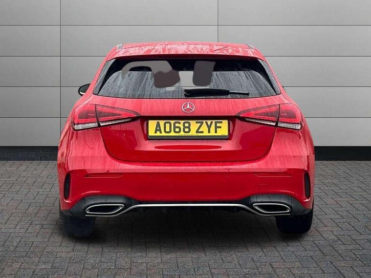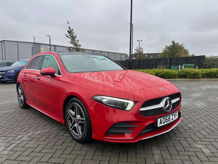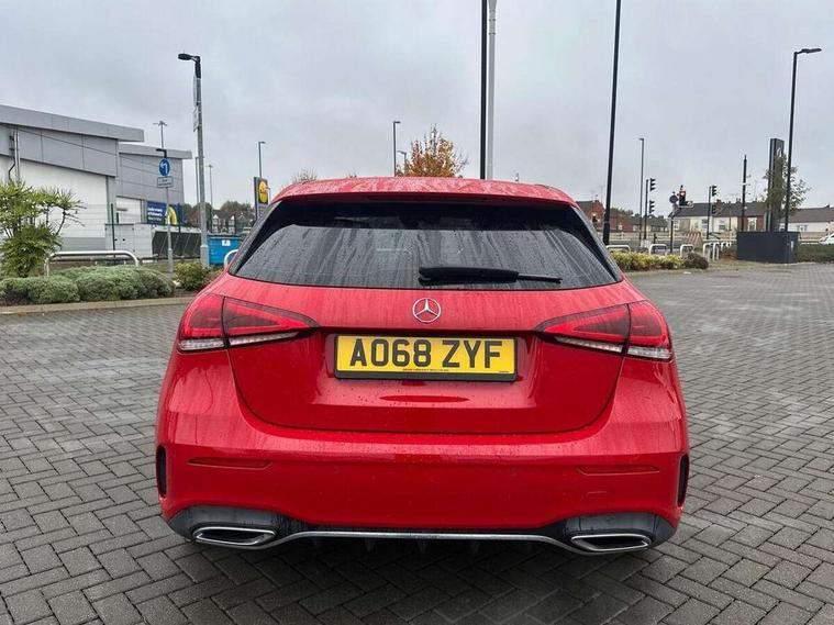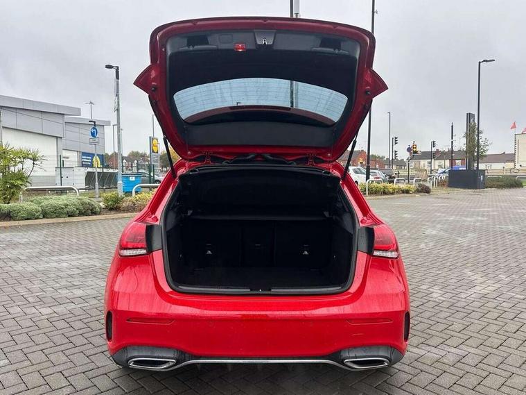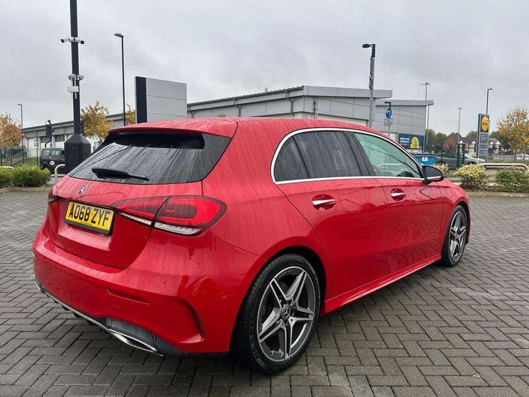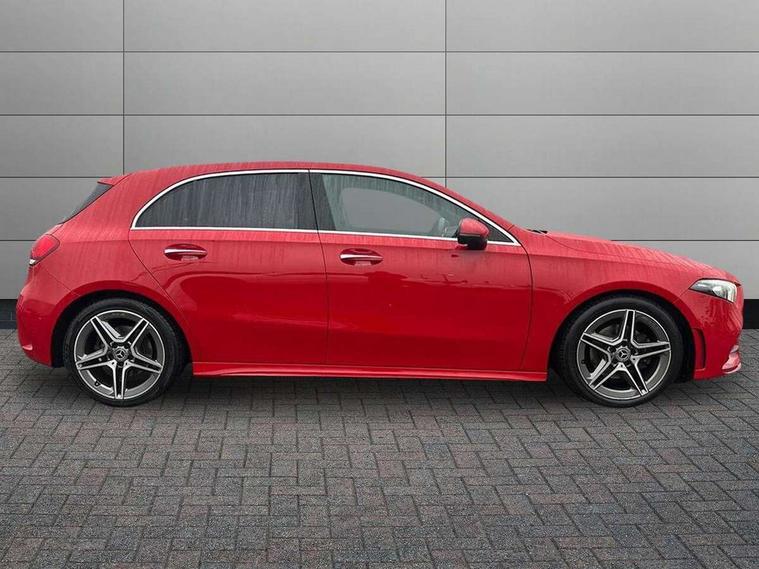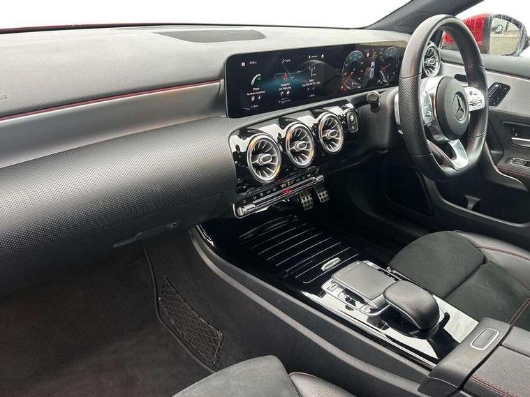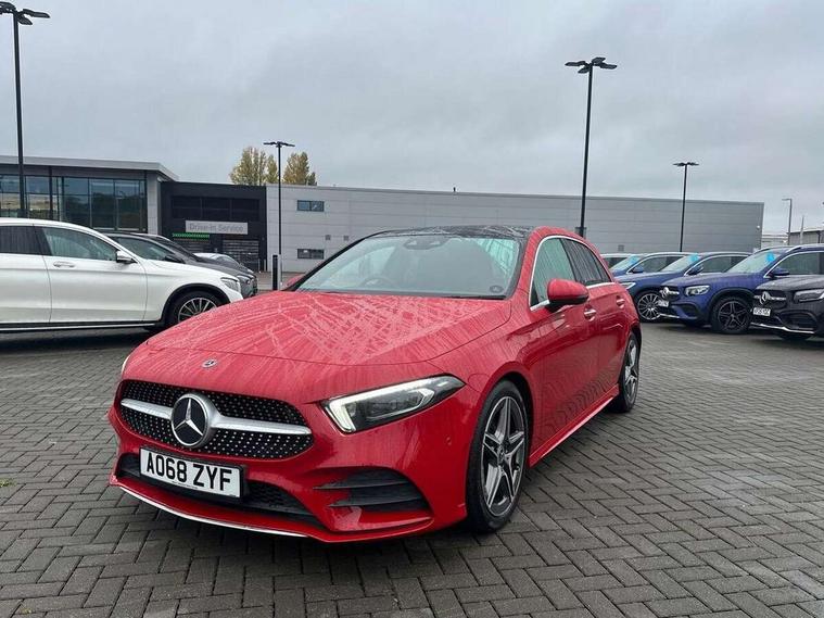 10.25" Digital instrument cluster display screen, 10.25" media display, Active lane keep assist, Active park assist with parktronic system, Attention assist, Bulb failure indicator, Cruise control + speed limiter, Direct steering, DYNAMIC SELECT with a choice of driving modes (ECO, Comfort, Sport, Sport+ and Individual), External temperature gauge, Low fluid warning light, Mercedes connect me with remote online services, Radio aerial integrated into roof spoiler, Reversing camera, Service indicator (ASSYST PLUS), Speed sensitive power steering, Stop/start system, Trip computer, Voice control system, Warning lamp for direction indicators, Lowered comfort suspension, 2 USB ports in centre console, DAB Digital radio, MBUX Multimedia system including digital instrument cluster and phone mirroring, Mid-range sound system, Adaptive brake lights, Adaptive high beam assist plus, AMG body styling, Auto dimming driver's door mirror, Auto dimming rear view mirror, Body colour bumpers, Body colour door handles, Body colour side skirt, Body coloured door mirrors, Chrome beltline trim, Diamond radiator grille with chrome pins and silver louvre + chrome insert, Electric adjustable heated door mirrors, Electric folding door mirrors, Electric front windows, Electric rear windows, Headlamp assist, Heated rear window with timer, High level third brake light, LED daytime running lights, LED Headlights, LED rear lights, Panoramic sliding sunroof, Rain sensor windscreen wipers, Rear fog lights, Rear wiper, Twin Trapezoidal tailpipes, 1/3 to 2/3 split folding rear seats, 12V socket, 3 spoke flat bottomed nappa leather sport steering wheel, AMG floor mats with red stitching, Artico man-made leather/Dinamica upholstery, Auto Mercedes-Benz child seat recognition sensor, Black headlining, Brushed stainless steel sports pedals with rubber studs, Controller on centre console with chrome surround, Dual zone automatic climate control, Electric front seats with memory function, Exit lights, Footwell lights, Front and rear reading lights, Front centre armrest with storage compartment, Front door sills with Mercedes Benz lettering, Front head restraints, Front seat backs luggage nets, Front sport seats, Gearshift paddles on steering wheel, Heated front seats, Height adjustable front seats, Height/reach adjustable steering column, Illuminated cup holders, Illuminated door sills, Illuminated glovebox, Illuminated storage compartment, Integrated head restraints, Interior door handle illumination, Interior lighting - 64 colour Ambient lighting, Isofix rear child seat preparation, Load securing rings in luggage compartment, Luggage compartment cover, Multifunction steering wheel, Oddments tray lighting, Reading lights, Rear armrest, Rear head restraints, Storage compartment under load area floor, Sunvisors with illuminated vanity mirrors, Touchpad, Twin front cupholders, Seat comfort pack - A Class, 3 rear 3 point seatbelts, ABS with Brake Assist, Active bonnet, Brake calipers with Mercedes-Benz lettering + perforated brake discs, Child proof door locks, Crash responsive emergency lighting, Drivers knee airbag, Dual stage driver/passenger airbags, Electronic parking brake, ESP with ASR, Front and rear seatbelt reminder, Front head airbags, Front passenger seat occupancy sensor, Front side airbags, Hill start assist, Tyre pressure monitoring system, Warning triangle and first aid kit, Window airbags, Alarm system/interior protection/immobiliser, Keyless Go access/ignition system, Remote central locking, Chrome air vent surrounds, 18" AMG 5 twin spoke light alloy wheels in titanium grey with highsheen finish, Tirefit sealant with electric air pump,