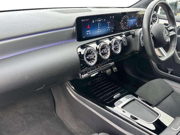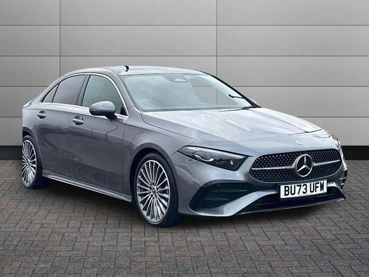 10.25 inch touchscreen central media display, 10.25" Digital instrument cluster display screen, Attention assist, Brake pad wear indicator warning light, Car wash mode, Direct steering, Direction indicators with lane change function, Dual bluetooth interfaces, DYNAMIC SELECT with a choice of driving modes (ECO, Comfort, Sport and Individual), ECO start/stop function, Engine start/stop button, Fluid level warning indicator for fuel, oil, coolant and washer fluid, Hard-disk navigation, Head up Display, Hey Mercedes Voice activation, Lamp failure indicator, MBUX augmented reality for navigation, MBUX Interior assistant, Mercedes me connect including emergency call system, accident recovery, breakdown and maintenance management, Mercedes me remote services, Outside temperature gauge, Owners manual in English, Pre-installation of private car share, Preinstallation for Mercedes Benz link, Remote boot closing, Service indicator (ASSYST), Smartphone integration with Apple CarPlay and Android auto, Speed limit assist, Speed sensitive power steering, Trip computer in multifunction display with current consumption indicator, Wireless charging, Lowered comfort suspension, DAB Digital radio, MBUX multimedia system, Mercedes Benz advanced sound system (225 W) with 10 speakers, 1 central speaker, speakers on doors, a tweeter on door, one sub woofer + boost amplifier, 4 Electric Front and Rear windows, Adaptive brake lights, AMG body styling - AMG front apron with front splitter and AMG rear apron and visible exhaust tailpipe trim elements, Body colour bumpers, Body colour door handles with chrome inserts, Body colour side skirt, Body coloured door mirrors, Chrome beltline strips, Diamond radiator grille with pins in fine star pattern, Electric adjustable and heated door mirrors with integrated LED side indicators, Exhaust system with 2 visible tailpipe trim elements and rear apron, Headlamp assist automatic headlamp activation, Heat insulating dark tinted rear and rear side windows, Heated glass rear windscreen + timer control, LED daytime running lights, LED tail lamp, Multibeam LED headlamps with adaptive highbeam assist and cornering function, Panoramic sliding sunroof, Privacy glass, Radio aerial, Rain sensing windscreen wipers with two sensitivity settings, Rear boot, Rear fog lights, Rear side wing doors, Third brake light featuring LED technology, Window line trim strip in chrome, 3 seat bench in 2nd row, 3 Spoke flat bottom leather multi function steering wheel with perforated leather in grip area, 40:20:40 split folding rear seats, Automatic child seat recognition sensor, Black air vents with surround in silver chrome, Black roof lining, Brushed stainless steel sports pedals with rubber studs, Electrically adjustable front memory seats including lumbar support and backrest inclination, Floor mats with AMG lettering, Front centre armrest with stowage, Front seat backs luggage nets, Galvanished gear shift paddles on steering wheel, Heated front seats, Height/reach adjustable steering column, Illuminated Mercedes Benz lettering front door sills with changeable cover, Interior lighting - 64 colour Ambient lighting, Interior mirror with reading lamps in black and frameless, Rear armrest with 2 cupholders, Seat occupancy sensor for front passenger seat, Single front passenger seat, Sports seats with adjustable head restraints, Stowage compartment in centre console with retractable cover, Sunvisors with illuminated vanity mirrors, Twin front cupholders, Two zone thermotronic luxury automatic climate control, Keyless go comfort pack - A Class, Light and sight pack - A Class, Mirror package - A Class, Parking pack with 360 degree camera - A Class, Seat comfort pack - A Class, USB pack plus - A Class, 3 rear 3 point seatbelts, ABS with Brake Assist, Active bonnet, Adaptive brake assist with hold function and hill start assist, Black seatbelts, Bonnet with power domes, Childproof locks manually operated for rear doors and electrically operated for rear power windows, Crash responsive emergency lighting, Driver and passenger head and side airbags, Drivers knee airbag, Dual stage driver/passenger airbags, Electronic parking brake, ESP curve dynamic assist, ESP with ASR, Front and rear seatbelt reminder, ISOFIX and top tether child seat fixing points in two outer rear seats, Tyre pressure monitoring system, Warning triangle and first aid kit, Window airbags, Alarm system/interior protection/immobiliser, Guard 360 degree vehicle protection, Remote central locking and crash sensor with emergency opening function, Light longitudinal grain aluminium trim, 19" AMG multi-spoke light alloy wheels, aerodynamically optimised, painted in titanium grey with high sheen finish, Summer tyres, Tirefit sealant kit,