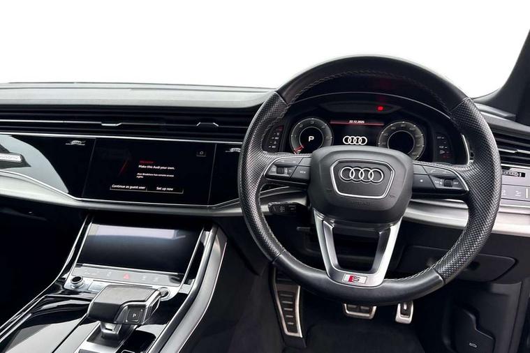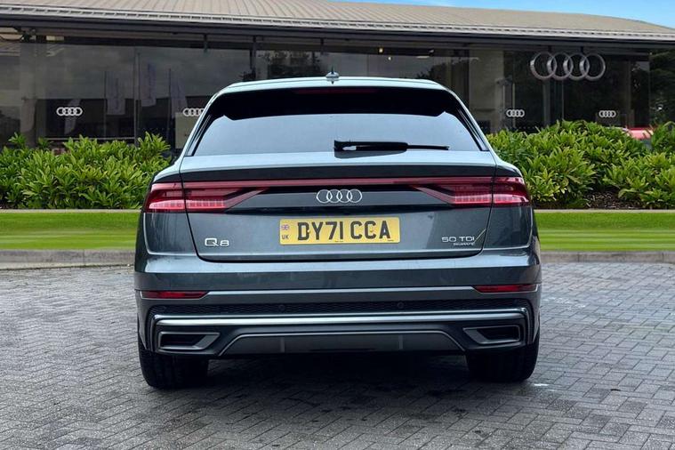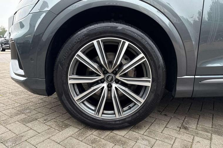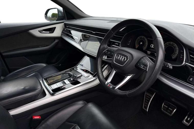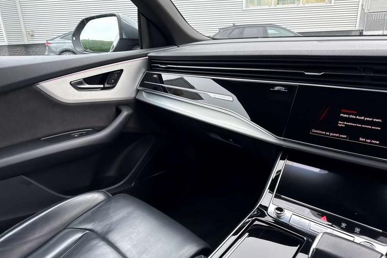 10.1" and 8.6" Dual colour touchscreens, Audi connect safety and service (e-call), Audi connect with Amazon Alexa Integration, Audi drive select, Audi parking system plus includes 360 degree display with front and rear sensors, Audi virtual cockpit - 12.3" high resolution LCD display with fully customisable instrument cluster, Automatic start/stop system, Electro-mechanical PAS, Low washer fluid indicator, MMI - Multi Media Interface control system, MMI navigation plus with MMI touch, Natural voice recognition, On board computer, Operating buttons in black, glass look with haptic feedback, Power operated tailgate, Rear view camera, Service interval indicator, Smartphone interface includes wireless Apple carplay/Android Auto, 48V Mild hybrid technology, Adaptive sport air suspension, Diesel particulate filter, Quattro all wheel drive with self locking centre differential, Audi music interface with 2 USB ports with charge and data functions, Audi sound system with 6 channel amplifier, 180 watt amplifying capacity and 10 loudspeakers including subwoofer, Aux-in socket, DAB Digital radio, Acoustic windscreen, Aluminium window trim, Audi HD Matrix LED headlights with dynamic front and rear indicators, Auto dimming frameless rear view mirror, Body colour door mirrors, Coming/leaving home lighting function, Electric front+rear windows, Electrically folding auto dimming/adjustable/heated door mirrors with memory function, LED side indicators and kerb view function for passenger side, Headlight washers, Heat insulating glass in windshield, Illuminated door sill trims with S line logo, LED signature daytime running lights, Platinum grey front spoiler lip and diffuser insert with honeycomb grille in black, Privacy glass - dark tinted rear and rear side windows from B-pillar backwards, Rain and light sensors, Rear wiper, S line badges on front wings, S Line body styling, S line bumpers in full body colour paint finish, S line roof spoiler, S Line side skirts, S line side ventilation grille, 2 zone automatic climate control, 4-way lumbar support for front seats, 40:20:40 split folding rear bench seat, Black cloth headlining, Comfort front centre armrest, Driver seat memory function, Electrically adjustable front seats, Front head restraints, Front/rear floor mats, Heated front seats, ISOFIX child seat mounting for front passenger seat and 2 outer rear seats with top tether child seat mounting for all 3 rear seats, LED interior ambient lighting, Luggage compartment sill protection in stainless steel, Rear centre armrest with 2 cupholders, Rear headrests, Rear seat bench plus, Stainless steel pedals, Sunvisors with illuminated vanity mirrors, 3 point seatbelts on all seats, Audi pre sense front, Driver and front passenger, front side and curtain airbags, Electromechanical parking brake, Electronic Stability Control (ESC) including ABS, ASR and EDL, Front passenger airbag deactivation, Hill descent control, Hill hold assist, Predictive pedestrian protection, Seatbelt monitoring, Traction control, Tyre pressure loss indicator, Warning triangle and first aid kit, Anti theft alarm with tow away protection, Anti-theft wheel bolts and wheel loosening detection, Immobiliser, Keyless go with remote central locking, Dark matt brushed aluminium inlay, Tool kit, Tyre repair kit,