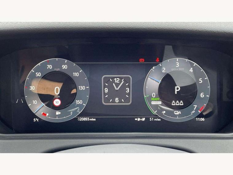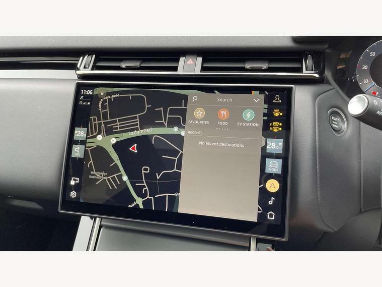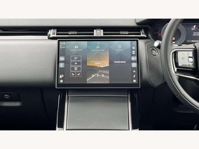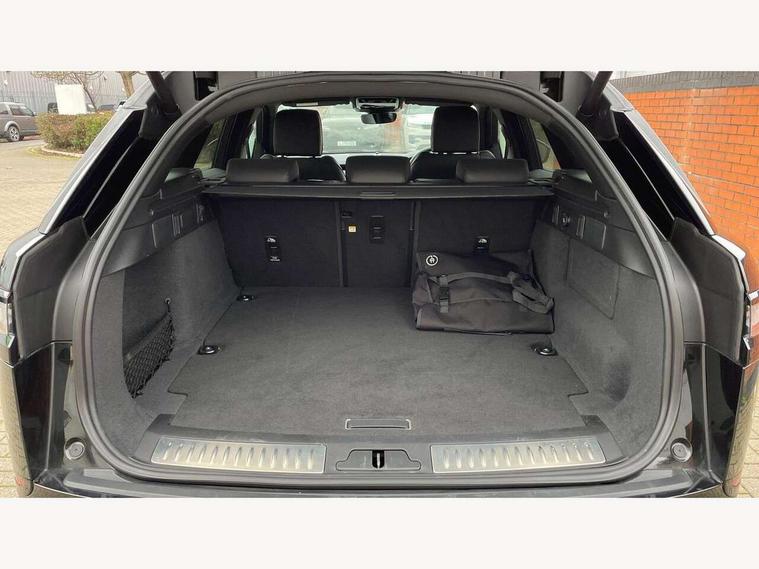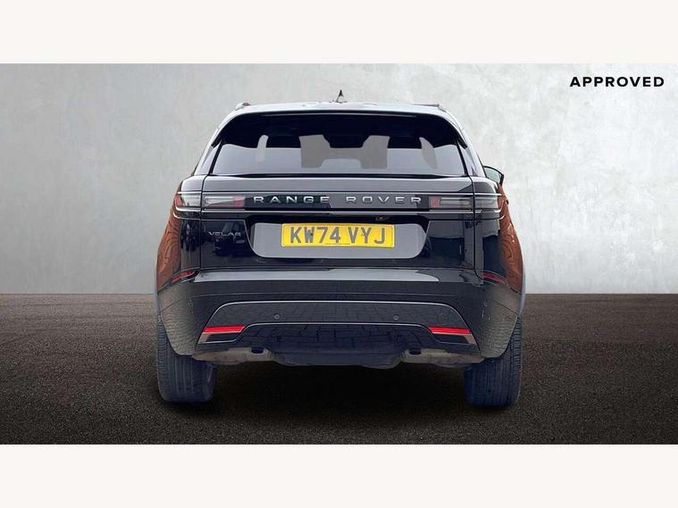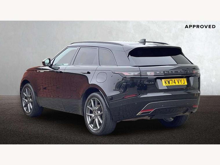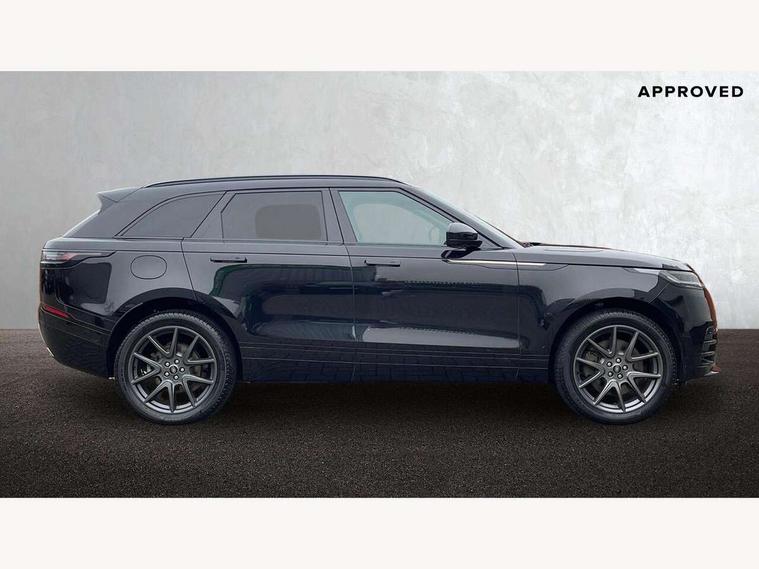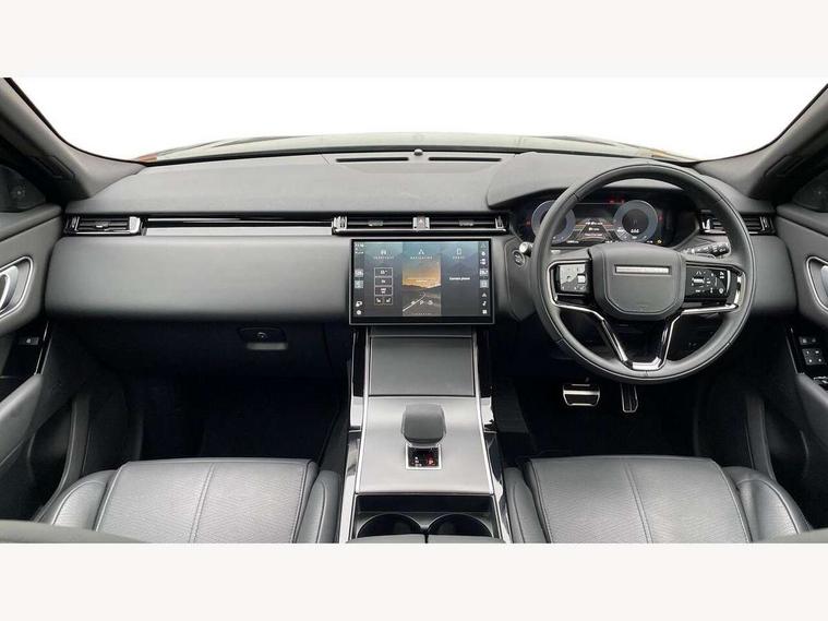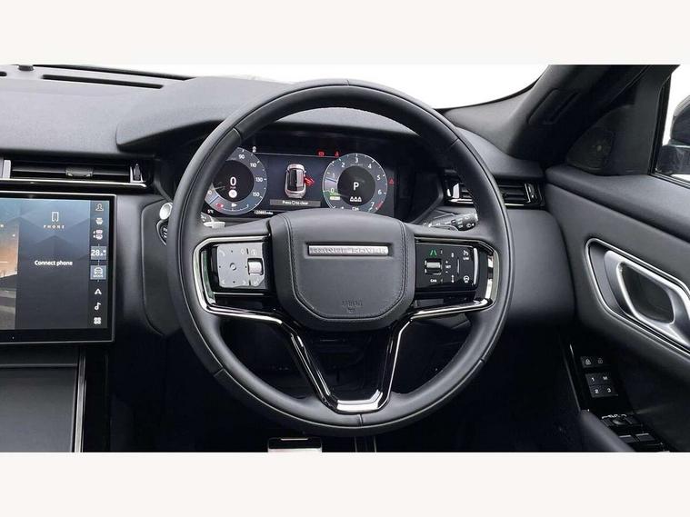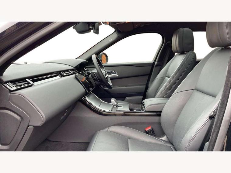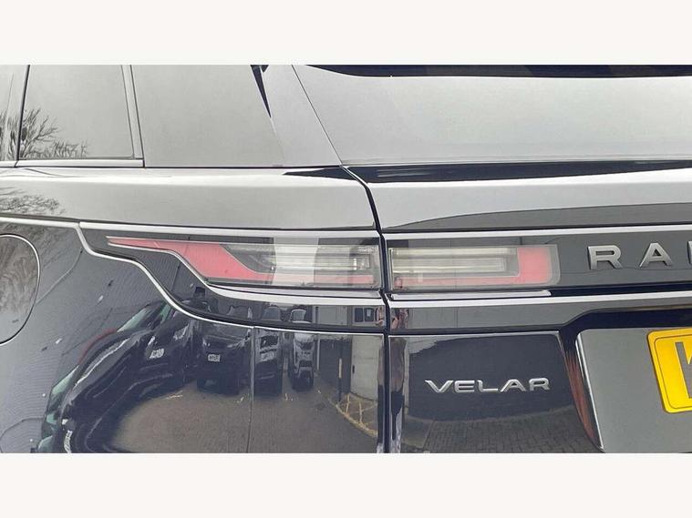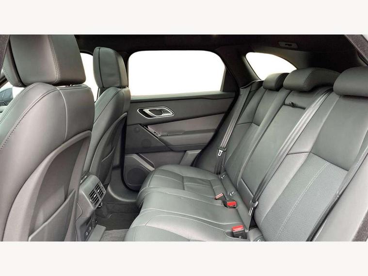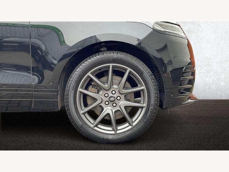 Adaptive cruise control with steering assist, Android Auto, Apple CarPlay, Blind spot assist, Bluetooth connectivity, Brake pad wear indicator warning light, Driver condition monitor, eCall emergency call system, Front and rear parking aid, InControl remote, Land Rover InControl apps, Lane keep assist, Pivi pro with connected navigation, Rear collision monitor, Rear traffic monitor, Service indicator, Speed proportional electronic power assisted steering (EPAS), Traffic sign recognition with adaptive speed limiter, Trip computer, Voice control system, Wireless device charging, 7kw on board charger, 8 speed automatic transmission, AC/DC charging, Adaptive dynamics, All terrain progress control, Coil suspension system, Home charging cable, Open differential with torque vectoring by braking, Public charging cable, Single speed transfer box, DAB radio, Steering wheel mounted controls, 3rd brake light, Acoustic laminated windscreen, Auto dimming interior rear view mirror, Automatic headlamp levelling, Automatic headlights, Body coloured bumpers, Boot protection plate, Electric windows with one touch open/close and anti trap, Flush deployable exterior door handles, Follow me home headlights, Heated rear window with timer, Heated washer jets, Heated windscreen, Metal front tread plates, Metal load space scuff plates, Pixel LED headlights with signature DRL, Power fold, auto-dimming, heated door mirrors with memory and approach lights, Rain sensor windscreen wipers, Rear animated directional indicators, Rear fog lights, Rear side wing doors, Rear wash/wipe, Tailgate/boot lid spoiler, Trailer stability assist, Velar badge, 3 seat bench in 2nd row, Ambient lighting, Bright metal pedals, Carpet mats, Driver/passenger sunvisors with illuminated vanity mirrors, Ebony morzine headlining, Electrically adjustable steering column, Extended leather upgrade, Heated steering wheel, Isofix system on outer rear seats, Loadspace cover, Overhead lighting console, Overhead stowage for sunglasses, Passive front headrests, Rear air vents, Rear centre headrest, Single front passenger seat, Twin front cupholders, Twin sliding front centre armrest, Online pack with data plan - Velar, Power socket pack 2 - Velar, 380mm front brakes and 325mm rear brakes, 3x3 point rear seatbelts, Anti-lock braking system (ABS), Cornering brake control, Curtain airbags, Customer configurable autolock, Door side intrusion beams, Driver airbag, DSC - Dynamic Stability Control, Electronic brake force distribution, Electronic parking brake, Electronic traction control, Emergency braking, Front and rear seatbelt reminder, Hill descent control, Hill launch assist, Low traction launch, Passenger airbag, Power operated child locks, Rear airbags, Roll stability control, Side airbags, Tyre pressure monitoring system (TPMS), Unpainted brake calipers, Global lock and unlock switch on driver door, Immobiliser, Intrusion sensor, Keyless entry, Lock only switch on front passenger door, Locking wheel nuts, Perimetric alarm, Remote central locking, All season tyres,
