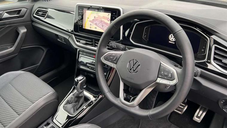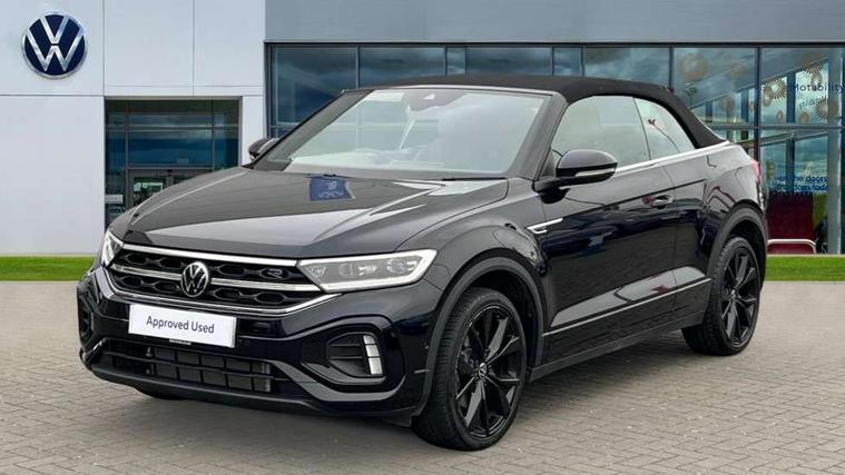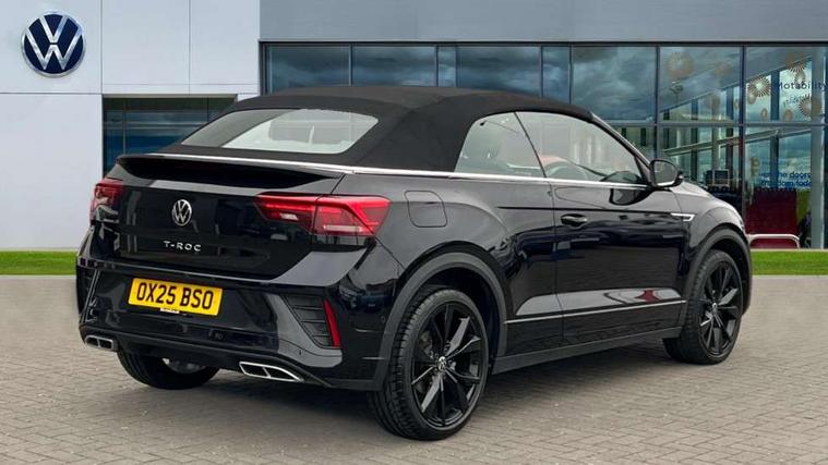 Adaptive cruise control and speed limiter, Advanced driver attention and drowsiness monitor, Brake pad wear indicator, Car information display, Digital Cockpit Pro with 10.25" Display, Driver tips and journey analysis, Dynamic road sign display, Emergency call service, Modified key software - reduce switch off time for key status change to Long no motion, Multifunction computer with visual gear change recommendation for fuel consumption, Multifunction front facing camera, Online services, Park assist including front and rear parking sensors, Speedo and rev counter, electronic odometer, trip, service interval display and exterior temperature gauge, Start/stop system with brake energy recovery, Tailgate/trunk lid release from outside, Warning sound and light for front seatbelts unfastened, Wireless App-Connect for apple Carplay and android Auto, Digital radio reception (DAB), Diversity antenna for FM reception, Mobile phone interface with inductive charging feature, Music playback - MP3, WMA and AAC files, SMS functionality - read, compose and send SMS messages using touch-screen display, Title and cover art display, USB-C Interface and USB charging socket, We Connect and We Connect Plus functionality, Ambient lighting with logo projection, Auto dimming interior rear view mirror, Automatic hazard lights activation under emergency braking, Automatic headlight control with LED separate daytime running lights with coming/leaving home function, Black roof, Body colour door handles, Body colour rear boot spoiler, Chrome effect left and right trapezoid exhaust tailpipe fascia surround, Chrome trim on upper and lower radiator grille, Dark red rear combination lamps in LED technology, Dusk sensor, Exterior mirrors aspherical on driver side, convex on front passenger side, Heat insulating glass windscreen, LED 3rd brake light, LED rear number plate lights, Power operated canvas convertible top, Power windows with comfort operation and circuit breaker, R-Line design body coloured bumpers, Rain sensor, Rear boot, Rear exhaust tailpipe, Rear fog light on one side and reversing lights on both sides, Remote electrically foldable door mirrors, puddle lights and reverse activated passenger door mirror, Volkswagen roundel, Windscreen wiper with intermittent wipe light, Without exterior ambient lighting, 12V socket in centre console storage area, 2 LED front reading lights, 2 seat bench in 2nd row, 50:50 Split folding rear seat backrests with fixed rear seat bench, Air care climatronic air conditoning system with active combination filter and 2-zone temperature control, Black door lower parts with chrome trim, Chrome plated surround to light, mirror and window switch, Door and side trim panel with leatherette insert, Easy entry backrest release, Front and rear carpet mats with black stitching, Front centre armrest, Front cupholders x 2, Front door pockets, Front seat back storage pockets, Front sports comfort seats with manual height adjustment, Heated leather wrapped multi function sports steering wheel with tiptronic, Height/reach adjust steering wheel, Inserts of front seats and outer rear seats in ArtVelours titan black, Instrument lighting, white adjustable panel illumination, Interior light delay, Interior light in footwell, Interior lighting with switch off delay and contact switches on all doors, Interior white ambient lighting and surround lighting, Isofix child seat preparation, Lockable glove compartment with light, Luggage compartment lighting, Power adjustable lumbar support in front, Rear head restraints, Single front passenger seat, Stainless steel pedals, Sun visors with illuminated vanity mirrors, Unique R Line door sill protectors, Driver assistance pack without proactive passenger protection - T-Roc Cabriolet DSG, 2 x 3-point seatbelts/outer rear seats with ECE label, Driver and front passenger airbag with front passenger airbag deactivation, Driver and front passenger safety-optimised head restraints, Drivers seatbelt reminder, Electronic parking brake, Electronic Stability Control (ESC) including ABS, ASR and EDL, Front and rear disc brakes, Front assist with autonomous emergency braking, Pedestrian monitoring, Predictive pedestrian protection, Rigid safety cell with front and rear crumple zones, Side airbag/thorax airbag system, for front passengers, Three point height adjust front seatbelts + pretensioners, Two tone horn, Tyre pressure loss indicator, Volkswagen roadside assistance, Anti-theft alarm system with interior protection and central locking system with SAFELOCK, radio remote control and 2 remote control folding keys, Electronic engine immobiliser, Trims for alloy wheels,