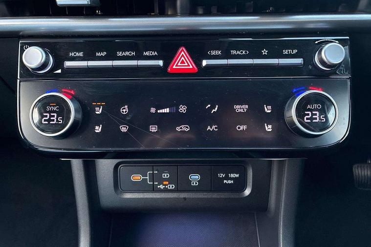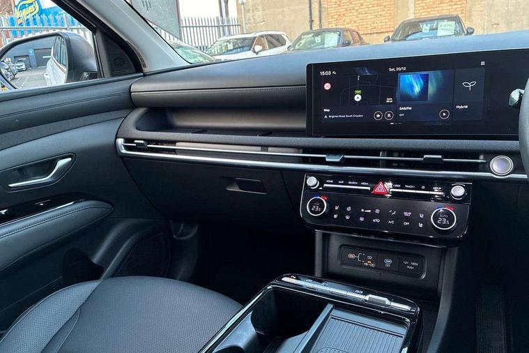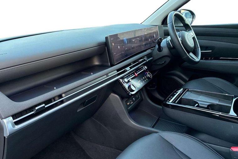 12.3" LCD display with driver's supervision instrument cluster, 12.3" widescreen navigation with bluelink and mapcare, Blind spot view monitor, Bluetooth system, Cruise control - smart adaptive speed control with stop and go function, Digital clock, Drive mode selector, Driver attention warning, E-call, Emergency stop signalling system, Forward Collision Avoidance Assist (FCA) - Car, Pedestrian and Cycle, Forward Collision Avoidance Assist Junction Turning (FCAJX), Front and rear parking sensors, Front, rear and side parking distance warning, Highway Driving Assist (HDA), Hyundai road side assistance, Intelligent speed limit assist, Lane follow assist, Lane keep assist, Over the air updates(OTA), Parking collision avoidance assist (PCA), PAS, Rear camera and guidance parking system, Rev counter, Smart power tailgate, Surround view monitor, Tailgate open warning light, Trip computer, Trip odometer, Voice recognition, Water temperature gauge, Windscreen washer fluid sensor and warning indicator, Wireless Apple CarPlay/Android Auto, Wireless phone charging pad, 2 front and 2 rear USB-C ports, DAB Digital radio, Krell premium audio system with 8 speakers and subwoofer, Steering wheel mounted audio/phone controls, Adjustable intermittent front windscreen wipers with aero wiper blade, Auto dimming rear view mirror, Automatic defog system, Automatic headlights with dusk sensor, Automatic windscreen wipers with rain sensor, Black wheel arches, Body colour bumpers, Body colour door mirrors with integrated indicators, Body colour exterior door handles, Electric tilt/slide panoramic sunroof, Electrically adjustable, heated and power folding door mirrors, Follow me home headlights, Front and rear electric windows with anti-trap mechanism and one touch control, Front fog lights, LED 3rd brake light, LED daytime running lights, LED rear lights, Matrix LED headlights, Positioning Lights - LED, Privacy glass - Rear windows and tailgate, Rear side wing doors, Rear wash/wipe with intermittent wipe setting, Roof rails, Tinted glass with windscreen shade band, Trailer stability assist, 12V power outlets in front console and luggage compartment, 3 seat bench in 2nd row, 40/20/40 split folding rear seat, 64 colours interior ambient lighting, Adjustable head restraints (Up and down), Cupholders in rear armrest, Door courtesy lights, Driver and passenger sunvisors with illuminated LED vanity mirrors, Driver's seat electric adjustments, Driver's seat memory, Front and rear door pockets, Front armrest with storage box, Front centre console and door bottle holders, Front passenger's seat electric adjustments, Heated front seats, Heated rear seats, Heated steering wheel, Height/reach adjustable steering column, Illuminated/air conditioned glove compartment, ISOFIX child seat anchorage points attached on outer rear seats, Leather upholstery, Leather wrapped steering wheel and gear knob, Luggage compartment lighting, Luggage cover, Luggage hooks, Luggage net, Map and reading lights, Rear seat remote folding function, Rear side window sunblind, Reclining rear seats, Retractable load cover, Single front passenger seat, Sunglasses holder, Three zone climate control, Touch sensitive climate controls with temperature dials, TUCSON branded metal door scuff plate, Underfloor boot compartment, Ventilated front seats, Trailer wiring package - Tucson, 3x3 point rear seatbelts, Active bonnet, Airbag - Front, front side, curtain and centre front airbags, Anti-lock brake system (ABS), Brake assist function, Childproof rear door locks, Curtain airbag roll over sensor, Downhill brake control, Electric parking brake, Electronic stability control, Front and rear seatbelt reminder, Front passenger airbag deactivation switch, Front seatbelt pretensioners, Hill start assist control (HAC), Multi-Collision braking, Outer rear seatbelt height adjustment, Seatbelt height adjustment for front seats, Traction control, Tyre pressure monitoring system with individual tyre pressure display - TPMS, Vehicle stability management, Deadlocks, Immobiliser, Locking wheel nuts, Remote control central locking, Smart key with keyless entry and engine start/stop button, Speed sensitive auto door locking, Thatcham category 1 alarm, 19" Alloy wheels, Tyre repair kit,