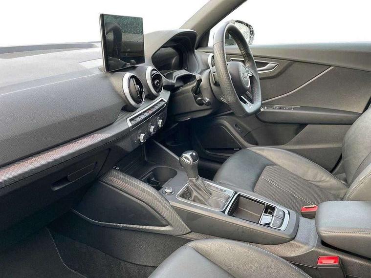 3D map display, Audi connect navigation and infotainment includes innovative services, Audi connect remote and control connects your vehicle to your smartphone, Audi drive select: S tronic - power steering assistance + engine + gearshift (modes: comfort, auto, dynamic, efficiency, individual), Audi smartphone interface - Apple carplay/Android Auto, USB connect, 2xSDXC card readers, voice control for navi, telephone, music and 3rd party apps, Audi virtual cockpit, Automatic start/stop system with recuperation, Bluetooth interface includes bluetooth audio streaming, Cruise control, Distraction and Fatigue warning, E-call, Jukebox hard drive memory for music (10GB), Lane departure warning, MMI navigation plus with 8.8" touchscreen, Natural voice recognition, Power operated tailgate, Progressive steering, Rear parking sensors, Sport suspension, 6 passive loudspeakers, DAB Digital radio, USB type C port, Audi beam, Auto dimming rear view mirror, Black window trims, Bumper in full body colour paint finish, Electrically adjustable, folding, auto dimming and heated door mirrors with integrated LED side indicators, Front windscreen with grey tinted sunband, LED daytime running lights, LED headlights with dipped beam, high beam, position lights, indicators, LED rear lights, LED third brake light, Privacy glass - dark tinted rear and rear side windows from B-pillar backwards, Rear side wing doors, Rear wiper, Variable front intermittent wipers, Wheel arch trims in manhattan grey, 12V socket in front, 3 seat bench in 2nd row, 3 spoke flat bottomed multi-function leather sport steering wheel with gear shift paddles, 4-way electric lumbar support for front seats including manual seat height adjustment for both front seats, 60/40 split folding rear seat bench, Black carpets, Black cloth headlining, Front and rear head restraints, Front centre armrest, Front sport seats, Front/rear floor mats, Height/reach adjust steering wheel, Illuminated door sill trims with S logo, ISOFIX child seat mounting in front passenger and rear outer seats, Manual air conditioning, Single front passenger seat, Stainless steel pedals, Black styling pack - Q2, 3x3 point rear seatbelts, 6 airbags - Front, curtain and front side airbags, Electromechanical parking brake, Electronic stabilisation control including ABS, ASR and EDL, Front passenger airbag deactivation, Hill hold assist, Pre-sense front with pedestrian recognition, Seatbelt monitoring, Tyre pressure warning light with visual and acoustic warning, Warning triangle and first aid kit, Anti theft alarm, Anti theft wheel bolts, Electronically operated child locks, Remote central door locking, Aluminium interior element, Black dashboard, Gloss black centre console, Matt brushed aluminium trim inlays, Tool kit,