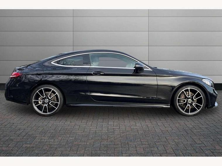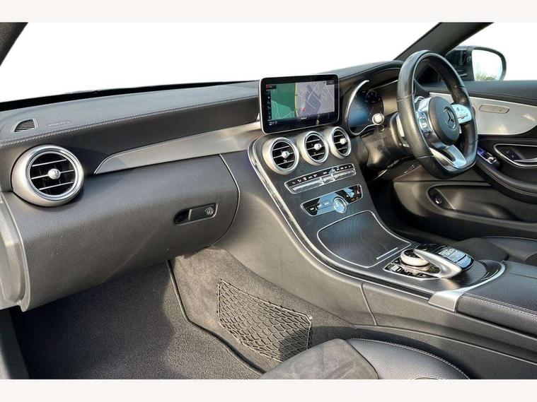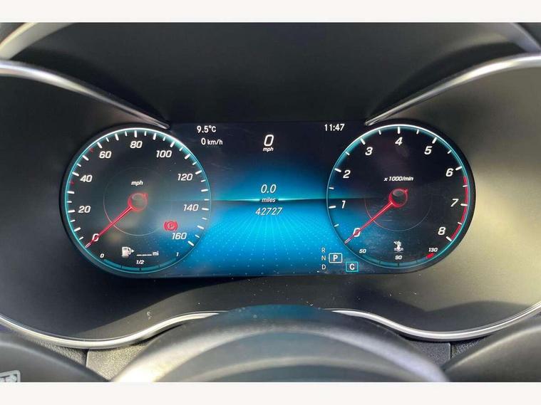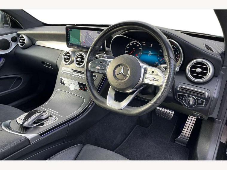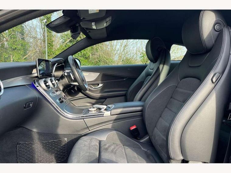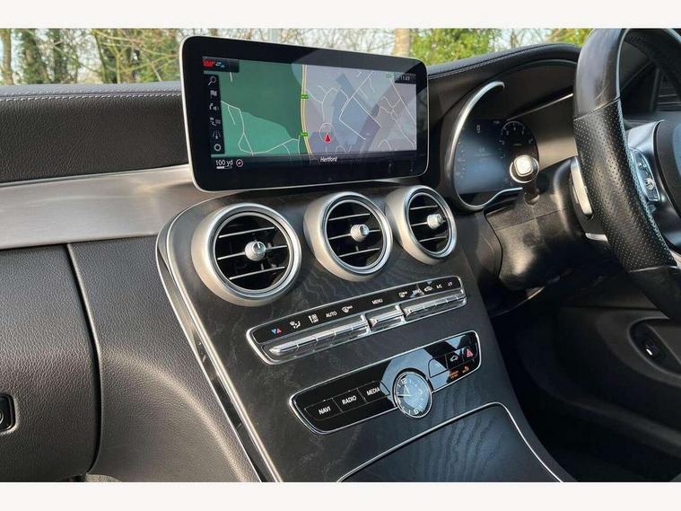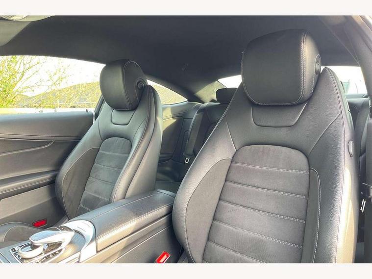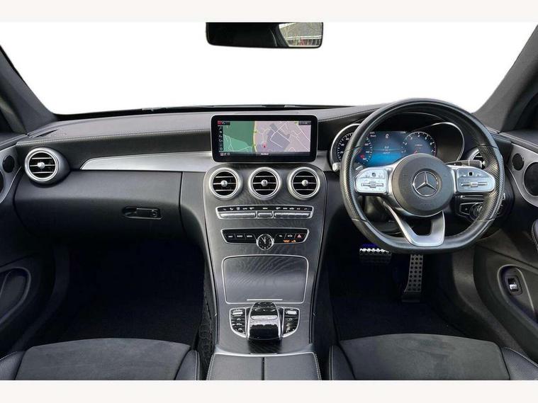 12.3" Active TFT crystal driver's instrument display, Active park assist with parktronic system, Attention assist, Bluetooth interface for hands free telephone, Collision prevention assist plus, Comand Online HDD Nav with media interface, radio/CD/DVD/MP3, 10.25 screen, linguatronic voice control, DYNAMIC SELECT with a choice of driving modes (ECO, Comfort, Sport, Sport+ and Individual), ECO start/stop function, Mercedes me connect including emergency call system, accident recovery, breakdown and maintenance management, Multi function trip computer, Outside temperature gauge, Pre-wiring for SD navigation system, Remote boot release, Reversing camera, Service indicator (ASSYST), Smartphone integration with Apple CarPlay and Android auto, Speed sensitive steering, Sports direct steer speed sensitive steering, Status display for rear seat belts in instrument cluster, Wireless charging, 66l fuel tank with increased capacity, 9G Tronic plus 9 speed automatic, Petrol Particulate Filter, Sport exhaust system, Audio 20 with integrated media interface and bluetooth handsfree function, DAB digital radio tuner, Mid-range sound system, SD card slot, Steering wheel audio controls, Two USB ports and one SD Card slot in centre console, Adaptive brake lights, AMG front, rear apron and side skirts, Body coloured bumpers, Body coloured door mirrors, Chrome grille surround, Chrome pins diamond radiator grille with integrated stars, Door sill plates with "Mercedes-Benz" lettering, Electric windows with one touch opening/closing and obstruction sensors, Exterior mirrors heated and electronically adjustable, Full LED tail lamps, Green tinted glass, LED daytime running lights, LED Indicators, LED third brake light, Multi beam LED headlights, Privacy glass (rear side windows and rear screen), Radio aerial integrated into rear window, Rain sensor windscreen wipers, Side windows surround in polished aluminium, Visible twin pipe exhaust trim integrated into rear bumper, 2 cupholders in front centre console, 2 rear head restraints, 3 spoke flat bottom multi-function leather AMG steering wheel, 40:20:40 split folding rear seats, Artico man-made leather upper dashboard and beltlines with contrast stitching, Auto Mercedes-Benz child seat recognition sensor, Black floor mats with AMG lettering, Electrical height and back adjustment front seat, Front centre armrest with storage compartment, Front LED reading lights, Heated front seats, Illuminated glove compartment stowage, Interior lighting - 64 colour Ambient lighting, Sports pedals with stainless steel surfaces and rubber studs, Sports seats with integrated headrests, Steering wheel gearshift paddles, Sunvisors with illuminated vanity mirrors, THERMATIC 2 zone automatic climate control, Interior lighting package - C Class, Mirror package - C Class, Seat comfort pack - C Class, Stowage space pack - C Class, 2 rear seatbelts, 3 point automatic seatbelts, Active bonnet, Adaptive brake system with hold function, hill start assist and brake drying function, Anti-lock braking system (ABS), Automatic seatbelt pretensioner for driver and front passenger, Black seat belts, Brake calipers with Mercedes-Benz lettering + perforated brake discs, Dual stage airbags - driver and front passenger, front sidebags, driver kneebag, pelvis bag and windowbags for driver, front and rear passengers, Electronic parking brake, Electronic Stability Programme (ESP), Front seatbelt pretensioners, ISOFIX child seat attachment points with top tether in rear, Tyre pressure monitoring system, Warning triangle and first aid kit, Anti-theft alarm system/interior protection with tow-away protection and interior monitoring systems, Central locking with interior switch, automatic locking and crash sensor with emergency opening function, Chrome surround in electric key, Immobiliser, Black ash wood with aluminium door trims and analogue clock, TIREFIT with tyre inflation compressor,