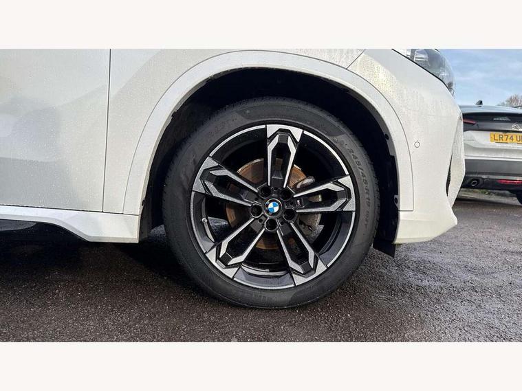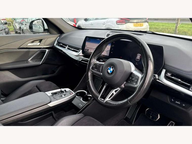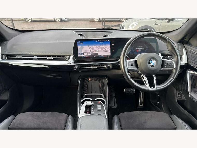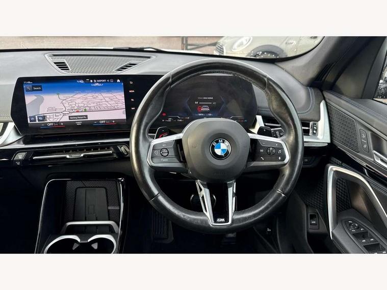 2 x 12 V (in luggage compartment and front centre console), 2 x USB Type C ports for charging and data transmission (front centre console) and 2 x USB Type C ports for charging (rear centre console), Active Guard + lane departure warning, speed limiting, front collision warning, Left turn warning with brake function and evasion assist, Attentiveness assist, Bluetooth / Wi-Fi interface with hands free system, BMW Intelligent Personal Assistant (natural voice control by voice command "Hey BMW"), BMW Live Cockpit Plus with 10.25" instrument cluster and 10.7" display, BMW Online services, BMW Teleservices, Brake pad wear indicator, Cruise control with brake assist, Drive off assistant, Electrically opening/closing tailgate with opening/closing with remote control and contactless opening and closing, Language version English, Luxury instrument panel, My Modes, Parking Assistant with Reversing Assistant, active PDC, Lateral Parking Aid, Rear View Camera and Park Distance Control, Personal Profile - automatic lock when driving away selectable, Servotronic PAS, Speed limiter, Tyre puncture warning system, Widescreen display, M Adaptive suspension, Performance Control, Steptronic transmission with double clutch and gear shift paddles, Stop/start function, DAB Digital radio, Tuner with diversity reception and RDS, AM radio and FM radio, Badge on engine compartment lid and tailgate, Body colour door mirrors, Body coloured bumpers, Contoured rear spoiler in vehicle colour with side aeroblades in black high-gloss, Daytime running lights, Dynamic brake lights, Electric adjustable heated door mirrors, Electric windows - front and rear, with open/close fingertip control, anti-trap facility and comfort closing, Folding door handles integrated flush with surface, Front and rear bumper panel with M specific design, in body colour with inserts in black high gloss, Front bumper panel with air inlet in matt black, Front entry sills aluminium inserts with M inscription, Heated rear window, High gloss shadow line roof rails, Invisible exhaust tailpipe, Key with M identification, LED 3rd brake light integrated in rear spoiler, LED number plate light, M specific radiator grille in satinated aluminium, Mirror caps painted in contrasting colour dark grey, Model inscription on right tailgate, Radiator grille struts in aluminium matt, Rain sensor including auto headlights activation, Rear bumper panel with two L-shaped trims In pearl chrome, Rear side wing doors, Rear wiper, Roof trim strips painted in body colour, Side sill covers with M specific design in body colour, Trailer stabilisation logic, Windscreen washer nozzle for rear view camera, Windscreen wipers with front and rear heated washer nozzles, 2 cup holders in front, 3 rear headrests, 3 seat bench in 2nd row, 3 upper retaining strap clips integrated into rear panels of seat backrests, 40:20:40 split folding rear bench seat, Ambient interior lighting, Anthracite headlining, Anthracite Velour front and rear floormats, Bottle trays in all doors, Child seat ISOFIX attachment for two outer rear seats and front passenger seat with anchorage points, Clothes hook rear, Driver and front passenger heated seats, Dual zone automatic air conditioning, Front and rear door pockets, Front centre console storage compartment, Front door exit lights, Front sports seats, Front/rear adjustable head restraints, Glove compartment, M Sport nappa leather 3-spoke steering wheel, Manual steering column height and depth adjustment, Map pockets, Middle centre console storage compartment, Passenger seat with manual adjustment of seat fore/aft position, backrest tilt, seat depth adjustment and seat and backrest side bolsters raised, Rear armrest in door trim panel, Single front passenger seat, Sliding rear seats - Mechanical fore and aft adjustment 130mm, Sport leather multifunction steering wheel with thumbrests and operation of instrument display, audio, telephone and driver assistance, Storage compartment with folding cover under centre console armrest cushion, Connected Package Professional - X1, Premier pack - X1, Technology pack - X1, ABS/EBD, Automatic hold function, Automatic Stability Control (ASC), Black belt painted in contrasting colour dark grey, BMW emergency call, Braking readiness, Cornering brake control (CBC), Crash Sensor - activates hazard/interior lighting + unlocks doors, Driver/Front Passenger airbags, Driver/front passenger side airbags, Dynamic stability control + (DSC+), Electromechanical parking brake, Energy recovery system, Front and rear brake discs, Front and rear head airbags, Front passenger airbag deactivation, Integrated brake system, PC iBrake PostCrash approach control warning with light braking function, Rear door child safety locks, Three point seat belt with belt buckle pre loading and belt force limiter, Three point seat belts in all belts, Tyre pressure monitor, Warning triangle and first aid kit, Alarm system with interruption of battery voltage, acoustic alarm, activation of hazard warning lights, Closing system with central locking including 2 vehicle keys with integrated emergency key, Immobiliser, Locking wheel bolts,