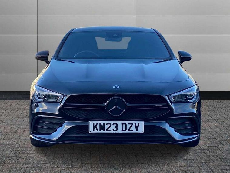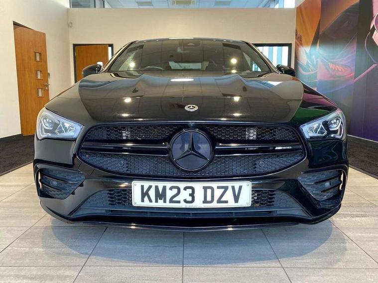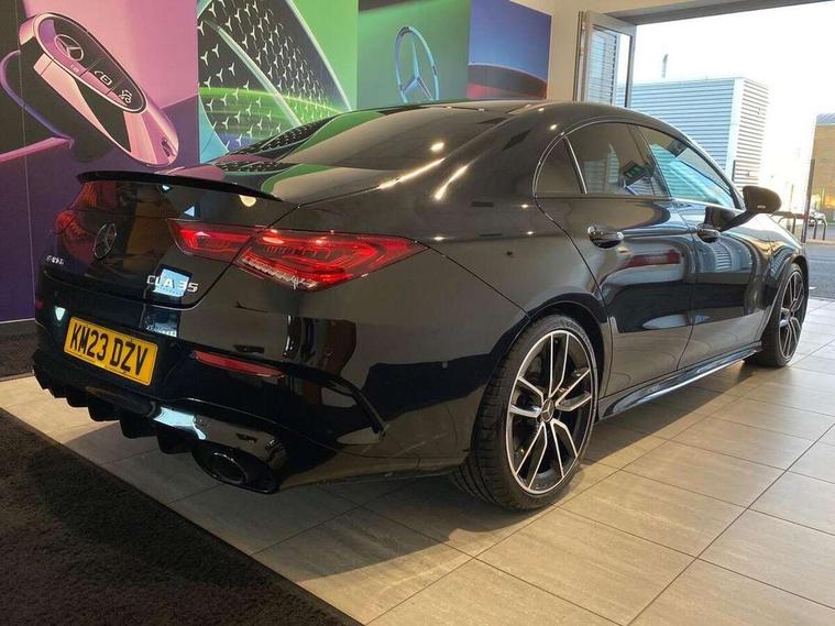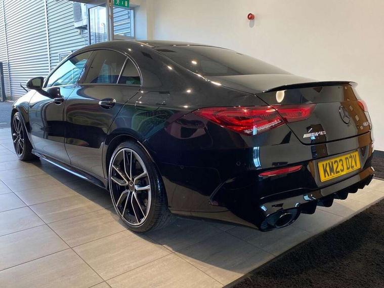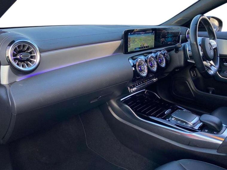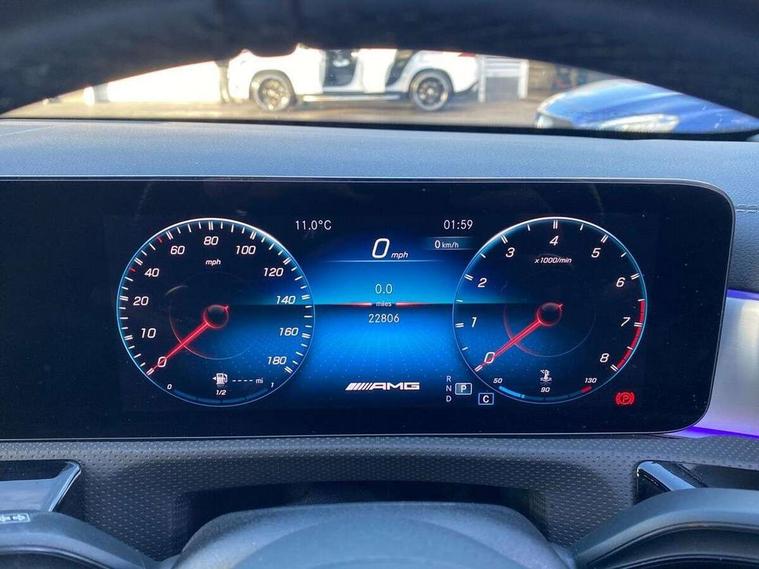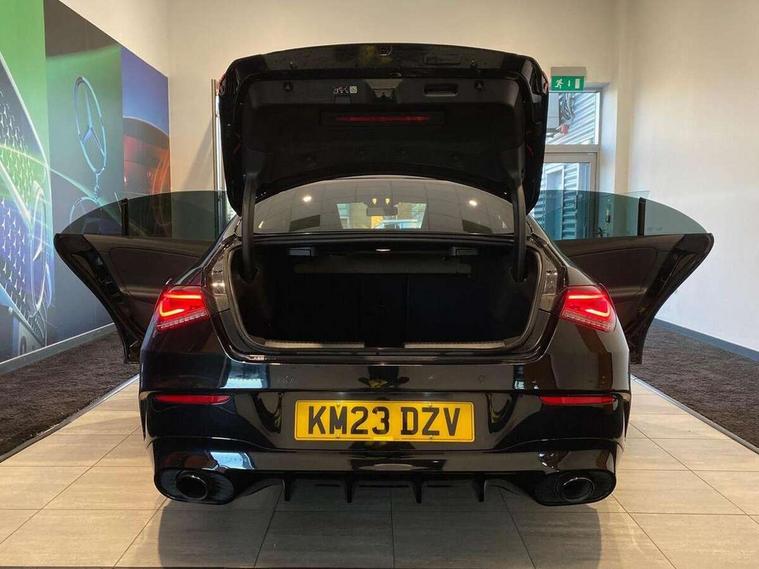 10.25 inch Instrument display with digital cockpit, 10.25 inch touchscreen central media display, Active lane keeping assist, Attention assist - Monitors steering behaviour and long journey fatigue, Bluetooth connection, Car wash mode, Cruise control with limiter, Direct steer system with speed sensitive power steering, DYNAMIC SELECT with driving programs (Slippery, Comfort, Sport, Sport+ and Individual), ECO start/stop function, Fluid level warning indicator for fuel, oil, coolant and washer fluid, Hard-disk navigation, Hey Mercedes Voice activation, Lamp failure indicator, Mercedes me connect including emergency call system, accident recovery, breakdown management and maintenance, Mercedes me remote services, Outside temperature gauge, Owners manual and service booklet in English, Pre-installation of private car share, Preinstallation for Mercedes Benz link, Radio aerial integrated into front and rear windshields, Service indicator (ASSYST), Smartphone integration with Apple CarPlay and Android auto, Speed limit assist, Trip computer in multifunction display with current consumption indicator, AMG suspension, Rear axle multi-link, DAB digital radio tuner, MBUX multimedia system, Mid-range sound system, USB (type C) ports (2) in stowage compartment and 1 in front of centre console, Adaptive brake lights, AMG body styling with AMG front apron and rear apron and visible exhaust tailpipe in chrome trim elements, AMG bodystyling side skirts, AMG Front apron with flics as air deflector elements on the outer air intakes, AMG radiator grille with twin blade lamella and AMG Lettering, AMG Rear apron with specific diffuser look with four vertical fins and two round chrome plated tailpipe trim elements with a diameter of 90 mm, AMG Sports exhaust system with two round tailpipes attached in rear apron, Automatically controlled exhaust flap, Beltline strips in High gloss Black, Body colour bumpers, Body colour door handles, Chrome weather strip, Electric windows, Electrically adjustable and heated door mirrors with integrated LED indicators, Front splitter and trim elements on the louvres in the outer air inlets in silver chrome, Front wings with TURBO 4MATIC lettering, Headlamp assist automatic headlamp activation, Heated glass rear windscreen + timer control, High level LED third brake light, Interior mirror with black reading lamps and frameless, LED high performance headlamps with integrated LED daytime running lights, LED tail lamp, Privacy glass with dark tinting on rear side windows and rear window, Rain sensing windscreen wipers with two sensitivity settings, Rear boot, Rear fog lamp, Rear side wing doors, Variable front intermittent wipers, Window line trim strip in high gloss black, 3 seat bench in 2nd row, 40:20:40 split folding rear seats with backrest, Air conditioning - Two zone thermotronic luxury automatic climate control with display, Air vents with surround in silver chrome, AMG Performance steering wheel in nappa leather, Automatic child seat recognition sensor, Black roof lining, Brushed stainless steel sports pedals with rubber studs, Floor mats with stitched AMG lettering, Front centre armrest with stowage, Heated front seats, Illuminated front door sills with changeable cover, Illuminated glove compartment stowage, Interior lighting - 64 colour Ambient lighting, Luggage net on driver/front passenger seat backrest, Manually adjustable front seats, Manually height and reach adjustable steering column, Rear armrest with two integral cup holders for drinks, Rear head restraints, Silver coloured aluminium gear shift paddles on steering wheel, Single front passenger seat, Sport seats with fixed head restraints, Stowage compartment in centre console with retractable cover, Sunvisors with illuminated vanity mirrors, Touchpad on center console, Twin front cupholders, Two outer rear seat isofix and top tether child seat fixing points, AMG Night package - CLA 35/45, Keyless go comfort pack - CLA, Light and sight pack - CLA, Mirror pack - CLA, Parking package - CLA, Seat comfort pack - CLA, Active bonnet pedestrain safety measure which detects an impact and raises bonnet by 65mm, Active brake assist includes forward collision warning system with autonomous braking, Adaptive brake assist with hold function and hill start assist, Anti lock braking system (ABS) with brake assist, Black seat belts, Bonnet with power domes, Brake pad wear warning indicator, Childproof locks manually operated for rear doors and electrically operated for rear power windows, Crash responsive emergency lighting, Driver and front passenger head and sidebags, Driver and front passenger windowbags, Drivers knee airbag, Dual stage driver and front passenger airbags, Electric parking brake, Electronic stability programme with acceleration skid control, ESP curve dynamic assist, Front and rear seatbelt reminder, Front brake calipers with AMG lettering, Front passenger seat occupancy sensor, Perforated front brake discs, Three point rear seat belts, Tyre pressure monitoring system, Warning triangle and first aid kit, Guard 360 degree guard vehicle protection system with immobiliser and interior protection, Remote central locking and crash sensor with emergency opening function, Light aluminium with longitudinal grain interior trim, 19" AMG multi-spoke high gloss black painted light alloy wheels with high sheen finish, Summer tyres, Tirefit tyre sealant kit, Wheel arches wider for AMG wheels,