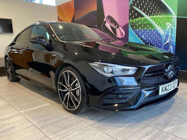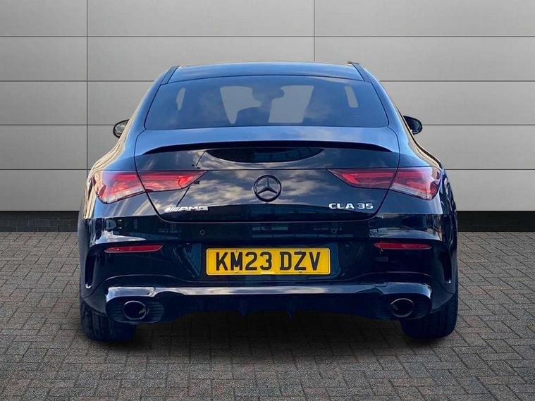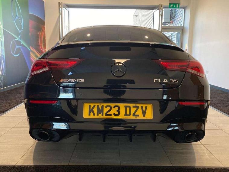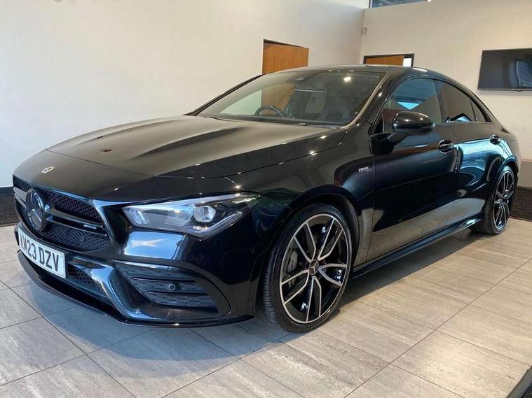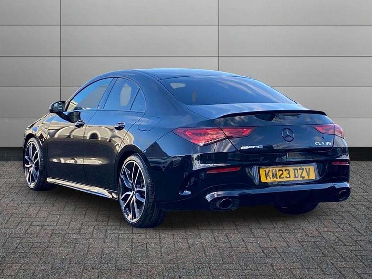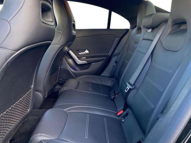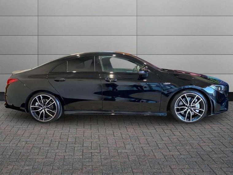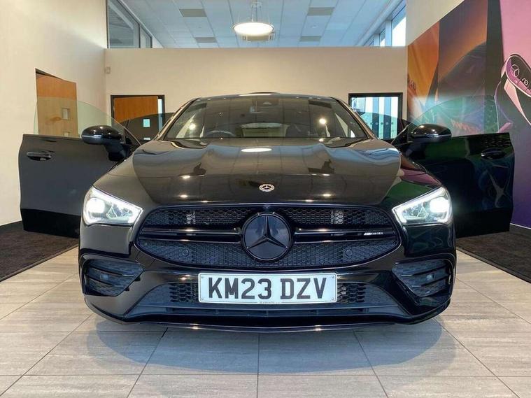 10.25 inch Instrument display with digital cockpit, 10.25 inch touchscreen central media display, Active lane keeping assist, Attention assist - Monitors steering behaviour and long journey fatigue, Bluetooth connection, Car wash mode, Cruise control with limiter, Direct steer system with speed sensitive power steering, DYNAMIC SELECT with driving programs (Slippery, Comfort, Sport, Sport+ and Individual), ECO start/stop function, Fluid level warning indicator for fuel, oil, coolant and washer fluid, Hard-disk navigation, Hey Mercedes Voice activation, Lamp failure indicator, Mercedes me connect including emergency call system, accident recovery, breakdown management and maintenance, Mercedes me remote services, Outside temperature gauge, Owners manual and service booklet in English, Pre-installation of private car share, Preinstallation for Mercedes Benz link, Radio aerial integrated into front and rear windshields, Service indicator (ASSYST), Smartphone integration with Apple CarPlay and Android auto, Speed limit assist, Trip computer in multifunction display with current consumption indicator, AMG suspension, Rear axle multi-link, DAB digital radio tuner, MBUX multimedia system, Mid-range sound system, USB (type C) ports (2) in stowage compartment and 1 in front of centre console, Adaptive brake lights, AMG body styling with AMG front apron and rear apron and visible exhaust tailpipe in chrome trim elements, AMG bodystyling side skirts, AMG Front apron with flics as air deflector elements on the outer air intakes, AMG radiator grille with twin blade lamella and AMG Lettering, AMG Rear apron with specific diffuser look with four vertical fins and two round chrome plated tailpipe trim elements with a diameter of 90 mm, AMG Sports exhaust system with two round tailpipes attached in rear apron, Automatically controlled exhaust flap, Beltline strips in High gloss Black, Body colour bumpers, Body colour door handles, Chrome weather strip, Electric windows, Electrically adjustable and heated door mirrors with integrated LED indicators, Front splitter and trim elements on the louvres in the outer air inlets in silver chrome, Front wings with TURBO 4MATIC lettering, Headlamp assist automatic headlamp activation, Heated glass rear windscreen + timer control, High level LED third brake light, Interior mirror with black reading lamps and frameless, LED high performance headlamps with integrated LED daytime running lights, LED tail lamp, Privacy glass with dark tinting on rear side windows and rear window, Rain sensing windscreen wipers with two sensitivity settings, Rear boot, Rear fog lamp, Rear side wing doors, Variable front intermittent wipers, Window line trim strip in high gloss black, 3 seat bench in 2nd row, 40:20:40 split folding rear seats with backrest, Air conditioning - Two zone thermotronic luxury automatic climate control with display, Air vents with surround in silver chrome, AMG Performance steering wheel in nappa leather, Automatic child seat recognition sensor, Black roof lining, Brushed stainless steel sports pedals with rubber studs, Floor mats with stitched AMG lettering, Front centre armrest with stowage, Heated front seats, Illuminated front door sills with changeable cover, Illuminated glove compartment stowage, Interior lighting - 64 colour Ambient lighting, Luggage net on driver/front passenger seat backrest, Manually adjustable front seats, Manually height and reach adjustable steering column, Rear armrest with two integral cup holders for drinks, Rear head restraints, Silver coloured aluminium gear shift paddles on steering wheel, Single front passenger seat, Sport seats with fixed head restraints, Stowage compartment in centre console with retractable cover, Sunvisors with illuminated vanity mirrors, Touchpad on center console, Twin front cupholders, Two outer rear seat isofix and top tether child seat fixing points, AMG Night package - CLA 35/45, Keyless go comfort pack - CLA, Light and sight pack - CLA, Mirror pack - CLA, Parking package - CLA, Seat comfort pack - CLA, Active bonnet pedestrain safety measure which detects an impact and raises bonnet by 65mm, Active brake assist includes forward collision warning system with autonomous braking, Adaptive brake assist with hold function and hill start assist, Anti lock braking system (ABS) with brake assist, Black seat belts, Bonnet with power domes, Brake pad wear warning indicator, Childproof locks manually operated for rear doors and electrically operated for rear power windows, Crash responsive emergency lighting, Driver and front passenger head and sidebags, Driver and front passenger windowbags, Drivers knee airbag, Dual stage driver and front passenger airbags, Electric parking brake, Electronic stability programme with acceleration skid control, ESP curve dynamic assist, Front and rear seatbelt reminder, Front brake calipers with AMG lettering, Front passenger seat occupancy sensor, Perforated front brake discs, Three point rear seat belts, Tyre pressure monitoring system, Warning triangle and first aid kit, Guard 360 degree guard vehicle protection system with immobiliser and interior protection, Remote central locking and crash sensor with emergency opening function, Light aluminium with longitudinal grain interior trim, 19" AMG multi-spoke high gloss black painted light alloy wheels with high sheen finish, Summer tyres, Tirefit tyre sealant kit, Wheel arches wider for AMG wheels,