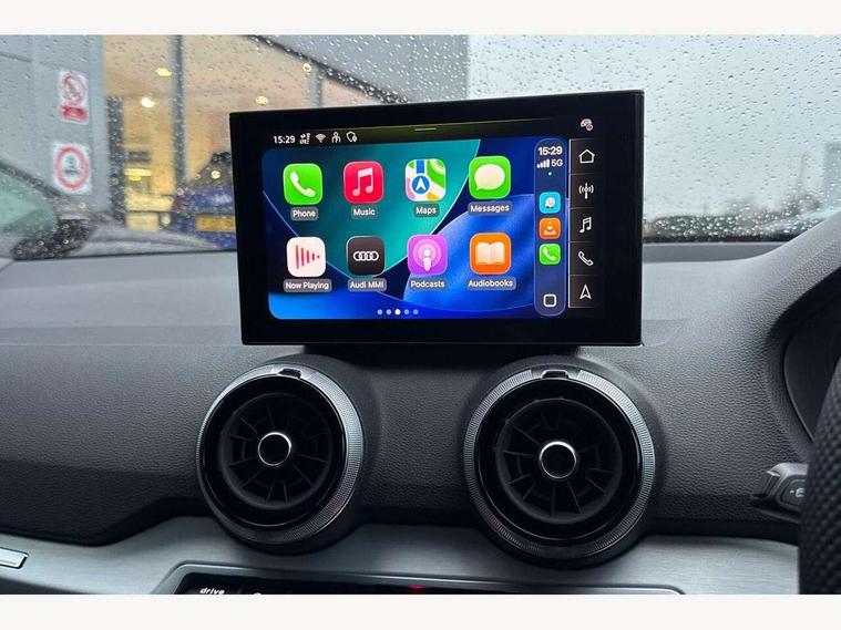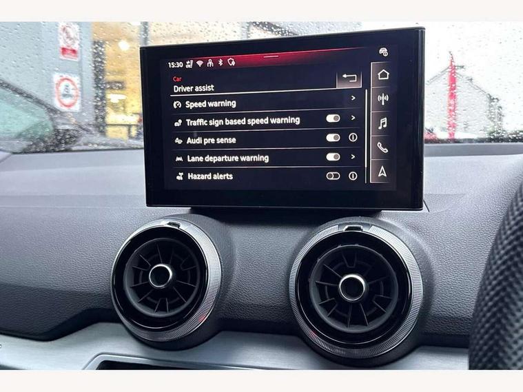 3D map display, Audi connect navigation and infotainment includes innovative services, Audi connect remote and control connects your vehicle to your smartphone, Audi drive select: S tronic - power steering assistance + engine + gearshift (modes: comfort, auto, dynamic, efficiency, individual), Audi smartphone interface - Apple carplay/Android Auto, USB connect, 2xSDXC card readers, voice control for navi, telephone, music and 3rd party apps, Audi virtual cockpit, Automatic start/stop system with recuperation, Bluetooth interface includes bluetooth audio streaming, Camera based traffic sign recognition, Cruise control, Distraction and Fatigue warning, E-call, Jukebox hard drive memory for music (10GB), Lane departure warning, MMI navigation plus with 8.8" touchscreen, Natural voice recognition, Power operated tailgate, Progressive steering, Rear parking sensors, Sport suspension, 6 passive loudspeakers, DAB Digital radio, USB type C port, Audi beam, Auto dimming rear view mirror, Black window trims, Bumper in full body colour paint finish, Electrically adjustable, folding, auto dimming and heated door mirrors with integrated LED side indicators, Front windscreen with grey tinted sunband, LED daytime running lights, LED headlights with dipped beam, high beam, position lights, indicators, LED rear lights, LED third brake light, Privacy glass - dark tinted rear and rear side windows from B-pillar backwards, Rear side wing doors, Rear wiper, Variable front intermittent wipers, Wheel arch trims in manhattan grey, 12v socket in front, 3 seat bench in 2nd row, 3 spoke flat bottomed multi-function leather sport steering wheel with gear shift paddles, 4-way electric lumbar support for front seats including manual seat height adjustment for both front seats, 60/40 split folding rear seat bench, Black carpets, Black cloth headlining, Front and rear head restraints, Front centre armrest, Front sport seats, Front/rear floor mats, Height/reach adjust steering wheel, Illuminated door sill trims with S logo, ISOFIX child seat mounting in front passenger and rear outer seats, Manual air conditioning, Single front passenger seat, Stainless steel pedals, Black styling pack - Q2, 3x3 point rear seatbelts, 6 airbags - Front, curtain and front side airbags, Electromechanical parking brake, Electronic stabilisation control including ABS, ASR and EDL, Front passenger airbag deactivation, Hill hold assist, Pre-sense front with pedestrian recognition, Seatbelt monitoring, Tyre pressure warning light with visual and acoustic warning, Warning triangle and first aid kit, Anti theft alarm, Anti theft wheel bolts, Electronically operated child locks, Remote central door locking, Aluminium interior element, Black dashboard, Gloss black centre console, Matt brushed aluminium trim inlays, Tool kit,
