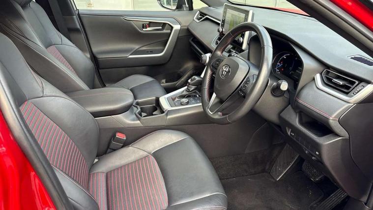 7" Coloured TFT multi informational display, Analog tachometer, Apple car play and Android auto, Blind spot monitoring with rear cross traffic alert, Bluetooth system, Cyclist Detection, Day and night time pedestrian detection, Digital speedometer, Drive mode selector, Driver attention alert system, eCall emergency call system, ECO-driving indicator, Electric power steering, EV audible alert, Front parking sensors, Hybrid system indicator, Intelligent adaptive cruise control, Lane departure alert with steering control, Lane trace assist, Lights on warning, Memory on adjustable speed limiter, My T Connected services, Power boot opening and closing, Push button start, Rear parking camera, Rear parking sensors, Remote boot door release in cabin, Remote boot door release in key, Road sign assist - RSA, Smartphone integration, Touch 2 Go navigation system, Traffic sign recognition, Trip computer, Voice control system, Wireless Mobile Phone Charger, 6.6 kw fast charger, 7.5m cable with home charging plug, Vehicle Stability Control (VSC), 2x USB sockets in front armrest, 2x USB sockets in rear, 6 speakers, 9" Multimedia display, Auxiliary socket for external MP3 player, DAB audio, Toyota touch 2 multimedia system, USB in front centre console, Anti-jam protection on power windows, Auto high beam, Auto up and down function on all power windows, Automatic headlamp levelling, Automatic headlights, Automatic wipers, Automatically retractable door mirrors, Bi-tone black roof, Black door mirrors, Black door moulding, Black front bumper, Black front grille, Black front under-run, Black rear bumper, Black rear spoiler, Black rear under-run, Black roof rails, Black Shark-fin antenna, Body colour door handles, Chrome window surround, Door mirror puddle lights, Dual exhaust pipes, Electric adjustable door mirrors, Emergency brake-light signal (EBS), Follow me home headlights, Framed electrochromatic rear view mirror, Front fog lights, Heated door mirrors, Honeycomb upper front grille, LED daytime running lights, LED dual beam projector headlights, LED front light guide, LED High mounted stop lamp, LED rear lights, Power front windows, Power rear windows, Privacy glass, Rear windscreen defogger, Rear wiper, Trailer sway control, Turning signal integrated indicators in door mirrors, 1.5L front and rear bottle holder, 12V socket in boot, 12V socket in front, 220v power socket in boot, 2x Rear coat hooks, 3 rear headrests, 60/40 split fold rear seat back with toyota easy flat system, Adjustable speed limiter switch on steering wheel, Array microphone, Black roof lining, Blue ambient lighting on front cupholders and open tray on passenger dashboard, Boot light, Clean air filter, Driver and front passenger personal light, Driver and front passenger Whiplash Injury Lessening seats, Driver and passenger seatback pockets, Driver and passenger sunvisors with illuminated vanity mirrors, Dual sided deck board in boot, Dynamic sports seats, Floor mats, Folding rear centre armrest, Front centre armrest, Front cupholders, Front footwell lights, Front headrests, Front/rear roof mounted assist grips, Heated driver and front passenger seats, Heated rear seats, Illuminated entry system, Isofix child seat preparation, Leather gearshift, Lockable glovebox, Manual telescopic and tilt 3-spoke nappa leather steering wheel, Manually reclining and sliding front passenger seat, Multimedia switches on steering wheel, Pollen filter, Power height-adjustable sliding reclining and lumbar support for driver seat, Rear console box, Rear door armrests with cupholder, Rear passenger air vents, Rear view display in display audio screen with dynamic guide lines, Reclining rear seats, Remote dual zone automatic air conditioning, Retractable tonneau cover, Satin chrome interior door handles, Silver gear shift surround on centre console, Sunglasses holder, Synthetic leather upholstery, Telephone and voice recognition switches on steering wheel, Under floor storage in luggage area, 3x3 point rear seatbelts, ABS/EBD, Acoustic vehicle alerting system, Adjustable front driver and passenger seat belt extender, Brake assist function, Brake hold function, Child proof door locks, Collision mitigation braking system, Driver/Front Passenger airbags, Driver/front passenger side airbags, Drivers knee airbag, Electronic parking brake, Electronic Stability Programme (ESP), Front and rear curtain airbags, Front and rear seatbelt reminder, Front passenger airbag detector, Hill start assist, Passenger airbag cut-off device, Pedestrian detection, Pre collision system, Seatbelt pretensioners with load limiters, Toyota safety sense, Traction control, Tyre pressure warning, Glass-breaking alarm sensors, Immobiliser, Intrusion alarm, Light - on and Key in reminder, Motion sensor alarm, Remote central locking, Smart entry + Smart start, Speed sensitive auto door locking, Tilt detection sensors, Black centre air vent surround, Black centre console, Soft-touch black upper dashboard with silver insert, Soft-touch texture on lower dashboard, 19" 5 spoke black machined face alloy wheels, Tyre repair kit,