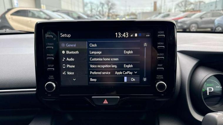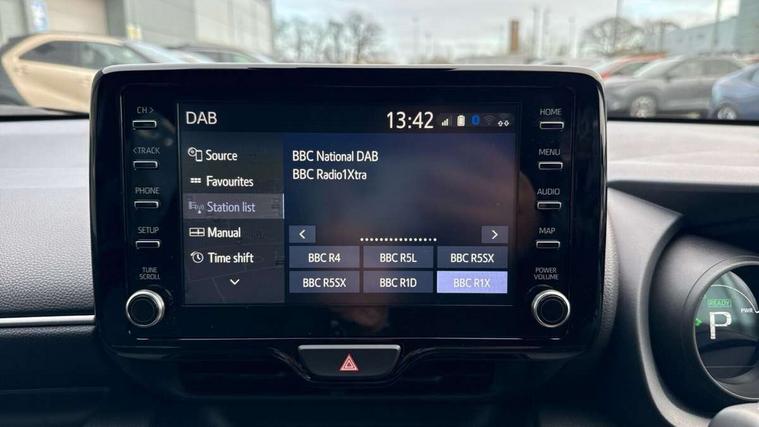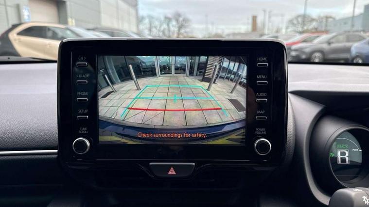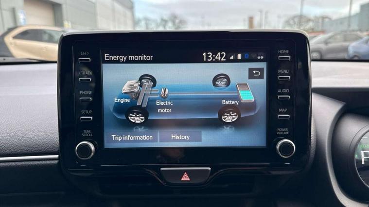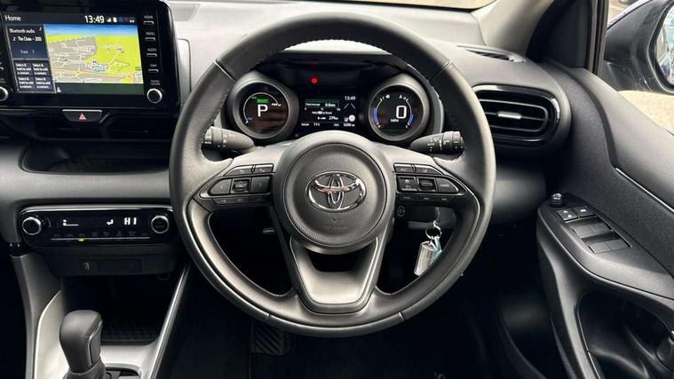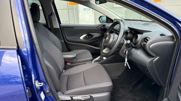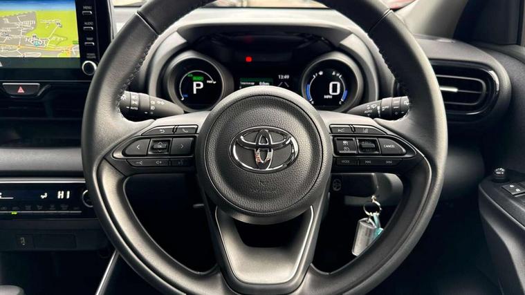 Adaptive cruise control, Adjustable speed limit with speed warning, Bluetooth connectivity, Colour binocular inspired displays with digital speedometer, E-call, Electric power steering, Hybrid energy display, Multi information display switches on steering wheel, Reversing camera, Smartphone integration with Apple CarPlay and Android auto, Tailgate, Voice recognition, Vehicle Stability Control (VSC), 4 speakers, 8" Multimedia display touch screen, USB connection, Acoustic windscreen glass, Auto windscreen wipers, Automatic headlights, Body coloured door mirrors, Electric adjustable heated door mirrors, Follow me home headlights, Front auto power windows with anti jam protection, Full LED rear lights, LED daytime running lights, LED front fog lights, LED front light guide, LED Headlights, LED High mounted stop lamp, LED Indicators, LED rear light guide, Manual headlight levelling, Painted chequered front grille, Rain sensor, Rear auto power windows with anti jam protection, Rear privacy glass, Rear side wing doors, Rear spoiler, Rear wiper, Shark fin antenna, Turning signal integrated indicators in door mirrors, Variable front intermittent wipers, 3 adjustable rear headrests, 3 spoke leather steering wheel, 60/40 split folding rear seat, Active headrests, Adjustable boot height, Auto air conditioning, Coat hooks in rear grab handles, Cup holders (2 front & door), Data Communication Module (DCM) connected services, Fabric upholstery, Front armrest, Glovebox, Grey roof lining, Height adjustable driver's seat, Isofix seat fixing, Leather gearshift, Pollen filter, Shopping bag hooks, Single front passenger seat, Tilt/telescopic steering column, 3 point seatbelts on all rear seats, ABS+EBD+Brake assist, Electronic parking brake, Emergency brake light system (EBS), Front passenger airbag on/off switch, Front seatbelt reminder, Hill start assist control (HAC), Rear child proof door locks, Rear seat belt reminder, Supplemental Restraint System (SRS) 8 airbags: Driver & passenger's airbags, dual side curtain airbags, side impact airbags, front centre airbag, Toyota Safety Sense 2, Precollison + Night time Pedestrian & Cyclist Detection, Lane Trace Assist, Auto High Beam, Intelligent ACC & Road Sign Assist, Tyre pressure warning system, 2x Master key, Alarm/immobiliser, Remote powered central double locking doors, Soft touch instrument panel, Space saver spare wheel,