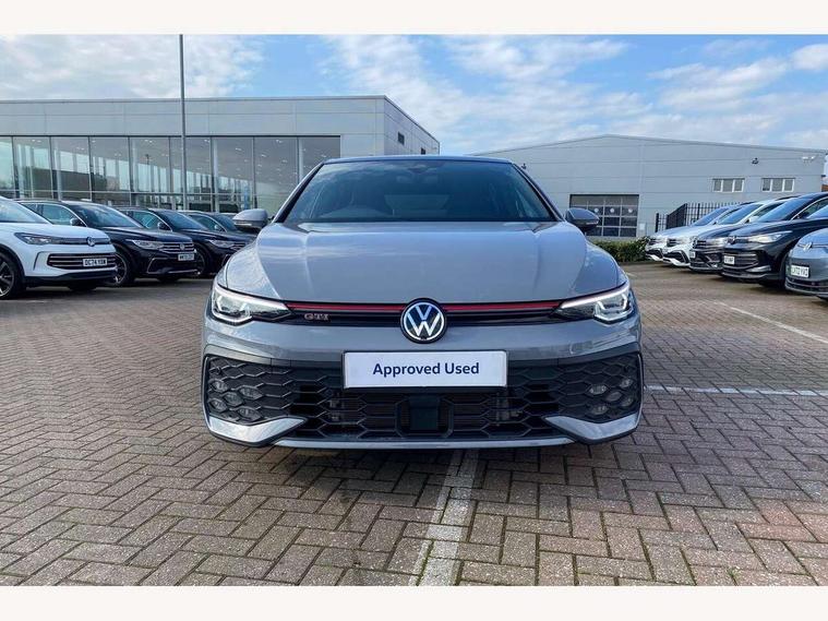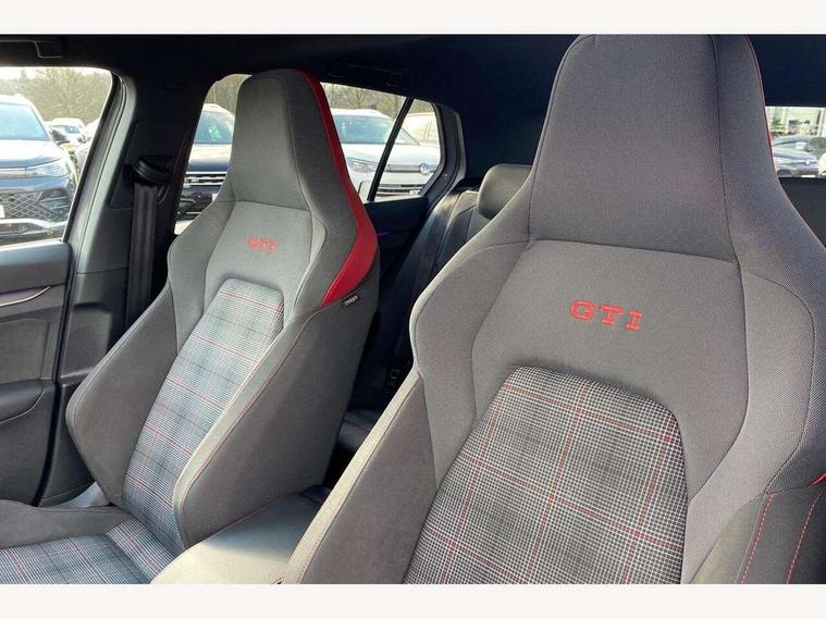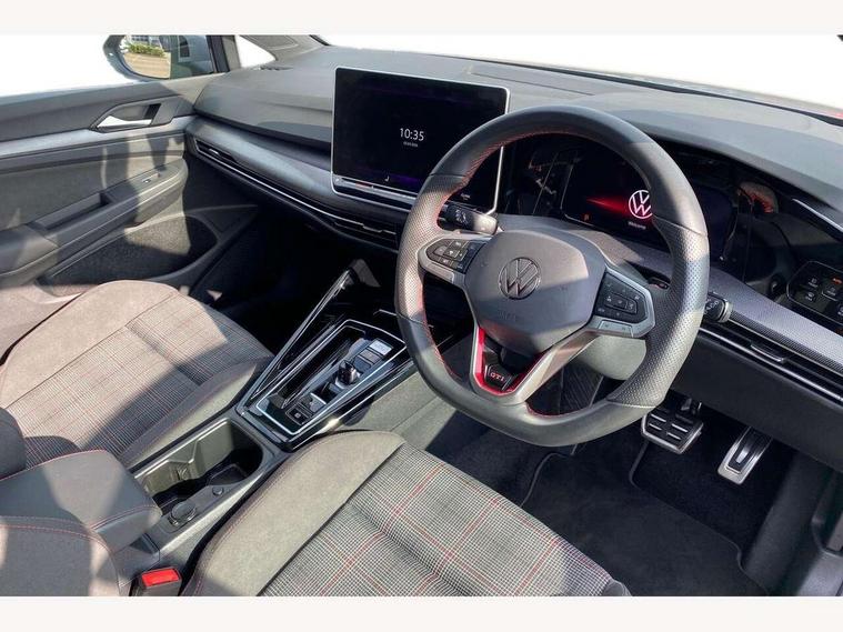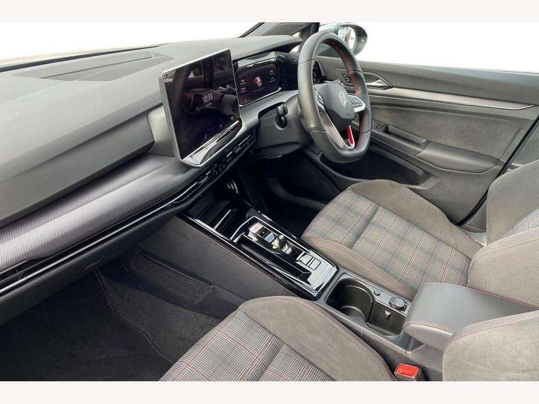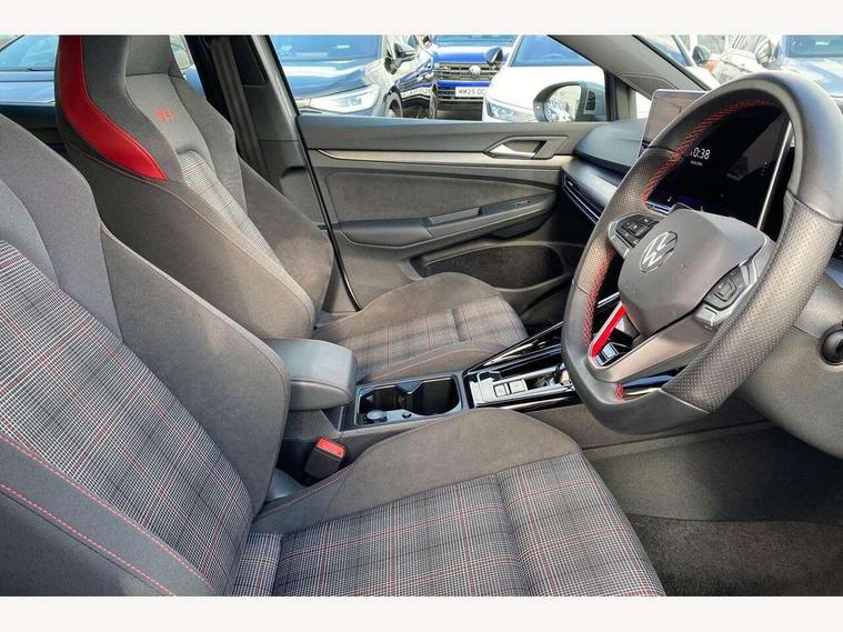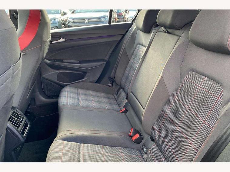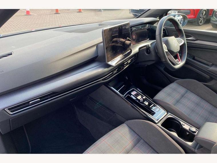 Activated carbon canister, Adaptive cruise control (ACC), Advanced driver attention and drowsiness monitor, Dynamic road sign display, E-Sim card for online connectivity, eCall emergency call system, Multi-color Digital cockpit pro, selection of different info profile possible, Multifunction front facing camera for distance control, Navigation system, Oncoming vehicle braking when turning including swerve support, Side assist blind spot lane change system, rear traffic alert and exit warning system, Speed limiter, Speedo, rev counter, electronic odometer, trip, service interval display, exterior temperature and fuel gauge, Traffic jam assist, Voice enhancer and voice control, Warning signal and warning light for front and rear seatbelts not fastened, We connect plus preparation, We connect preparation, Wireless app connect, Front differential lock, Petrol Particulate Filter, Start-stop system with battery regeneration (recuperation - energy recovery during braking), 2 USB C ports in front, 2 USB charging sockets on the centre console in the rear charging capacity upto 45W, Digital radio reception (DAB), Diversity antenna for FM reception, Gaming platform via car app, Infotainment system with 12.9" display, Mobile phone interface with inductive charging feature, 3rd brake light, Auto dimming rear view mirror, Automatic headlamp activation with Coming home and Leaving home feature, Body colour door handles, Body coloured bumpers, air intake in honeycomb structure, Exterior mirrors convex on the left and aspherical on the right, Front and rear electric windows, Front fog lamps and cornering light, Heat insulating windshield made of laminated glass, LED separate daytime running light, Nameplate 'GTI' set, Rain sensor, Rear exhaust tailpipe, Rear fog light on one side and reversing lights on both sides, Rear side wing doors, Rear windscreen washer and wiper with interval delay, Remote electrically foldable door mirrors, puddle lights and reverse activated passenger's door mirror, Welcome light with surround lighting, 12V socket in front centre console, 12V socket in luggage compartment, 3 rear head restraints, 3 seat bench in 2nd row, 30 colour ambient lighting, illuminated center console storage compartment in front, Air care climatronic 3 Zone automatic climate control with rear air conditioning control panel, Aluminium gearshift handle, Brushed stainless steel pedals, Chrome plated radiator grille inserts, air vent surrounds and light switch surrounds, Entry lights, Front + rear black carpet mats, Front centre armrest, ISOFIX anchors for child seats on outer rear bench seats and on front passanger seat compatible for i-Size, Luggage compartment lighting, Rear cupholder and loadthough, Single front passenger seat, Soul black instrument panel, Soul black roof lining, Split folding backrest with centre armrest and unsplit rear seat bench, Sun visors with illuminated vanity mirrors, Driver assistance pack - Golf Estate/Hatchback Auto, Technology park and comfort pro package - Golf Hatchback, 3 point height adj front seatbelts + pretensioners, 3 rear three point seatbelts, ABS, Autonomous emergency braking front assist with pedestrian and cyclist monitoring, Child locks on rear doors, Driver and front passenger airbag with front passenger airbag deactivation, Electronic parking brake with auto hold, ESC (Electronic Stability Control), Extended pedestrian protection measures, Hill start assist, Rear disc brakes, Two tone horn, Tyre pressure loss indicator, Volkswagen roadside assistance, Anti theft wheel bolts, Preparation for alcohol interlock, Decorative inserts carbon grey for dashboard and front door trim panels, Sporty vehicle dynamics, Tool kit for tyre mobility set, Tyre mobility kit Includes 12V compressor and tyre sealant,