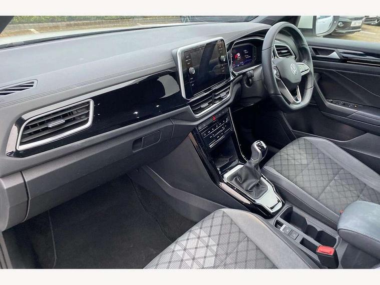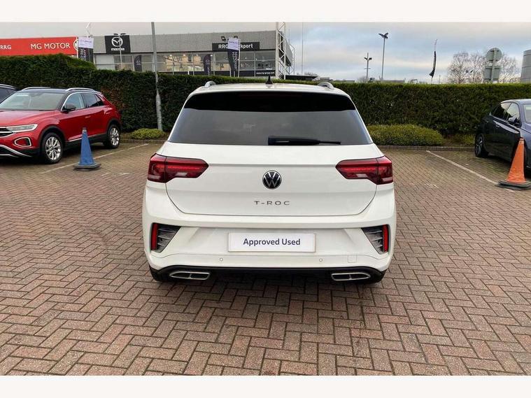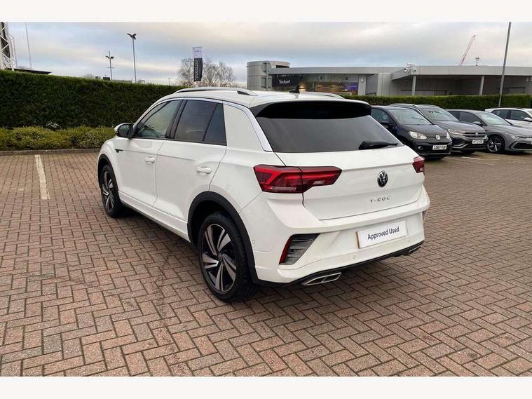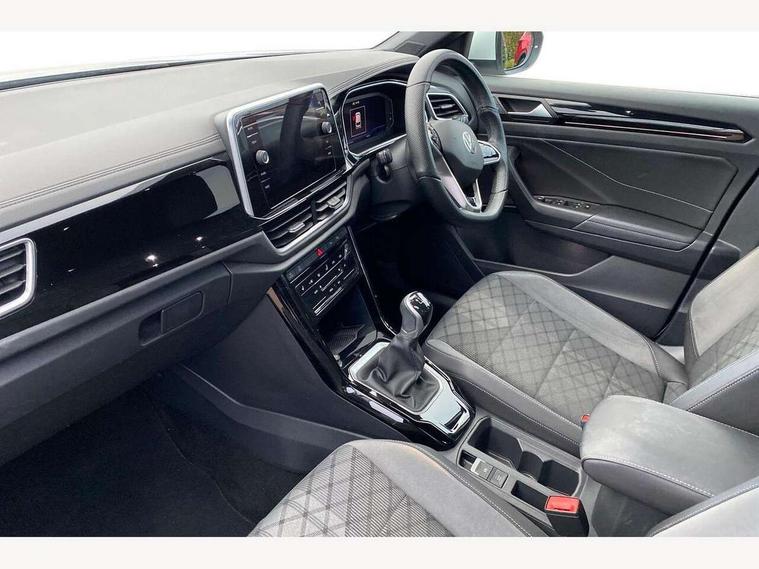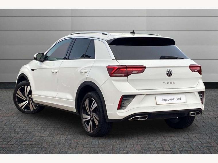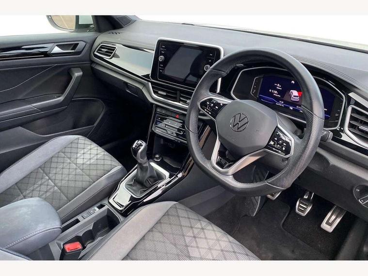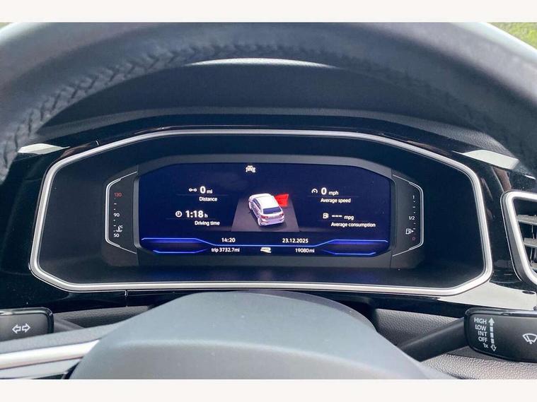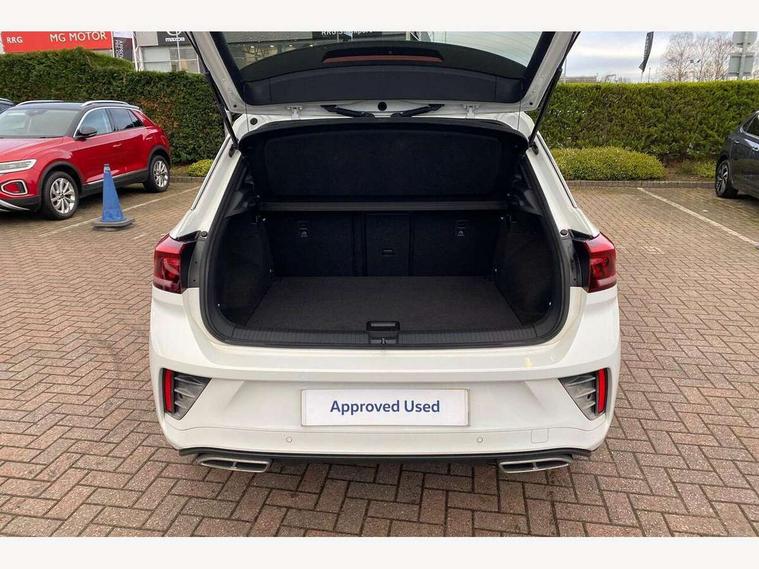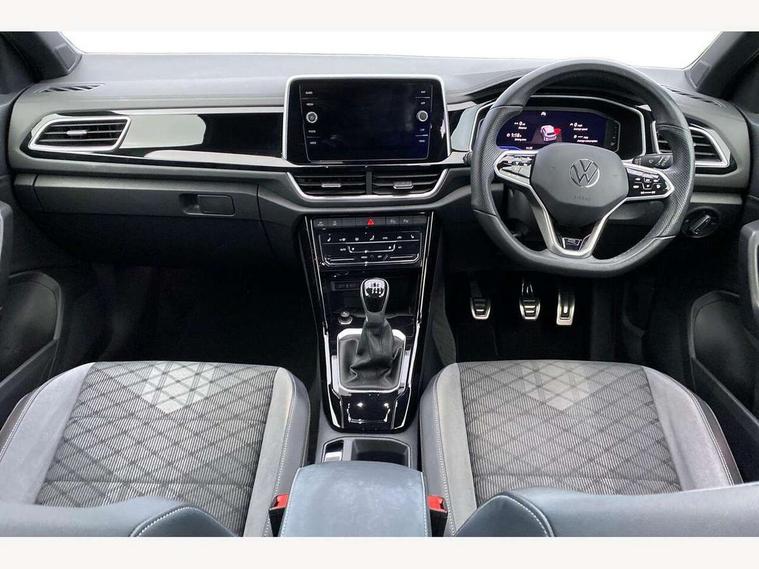 10.25" Digital cockpit pro, Bluetooth mobile phone interface, Driver alert system with fatigue detection, Driver tips and journey analysis, Emergency call service, Lane keeping system Lane Assist, Modified key software - reduce switch off time for key status change to Long no motion, Online services, Park assist including front and rear parking sensors, Service interval indicator, Tailgate/trunk lid release from outside, Think blue trainer driver tips and journey analysis, Warning sound and light for front seatbelts unfastened, Wireless app connect, Battery regeneration during braking, Start/stop function with battery regeneration, Diversity antenna for FM reception, Front and rear 6 speakers, Music playback - MP3, WMA and AAC files, Premium USB cable in choice of either Apple or Android smartphone compatibility, SD card slot, Simultaneous pairing of 2 compatible mobile devices, Title and cover art display, We Connect and We Connect Plus functionality, 3rd brake light, Auto dimming interior rear view mirror, Automatic hazard lights activation under emergency braking, Automatic headlight control with LED separate daytime running lights with coming/leaving home function, Extended roof spoiler, Exterior mirrors aspherical on driver side, convex on front passenger side, External USB type C socket and charging sockets, Front windscreen wiper with intermittent wipe and 4 position delay, Heated rear window, LED Plus headlamps, LED rear combination lamps, LED rear number plate lights, LED tail lamp rear comination lamps, Power windows with comfort operation and circuit breaker, R-Line design body coloured bumpers, Rain sensor, Rear exhaust tailpipe, Rear fog light on one side and reversing lights on both sides, Rear side wing doors, Rear wash/wipe with intermittent wipe setting, Remote electrically foldable door mirrors, puddle lights and reverse activated passenger's door mirror, 12V power socket in centre console, 3 rear head restraints, 3 seat bench in 2nd row, 4 load lashing points in luggage compartment, Air care climatronic air conditoning system with active combination filter and 2-zone temperature control, Black roof lining, Chrome plated radiator grille inserts, air vent surrounds and light switch surrounds, Door and side trim panel with leatherette insert, Drawer under drivers seat, Front + rear carpet mats, Front centre armrest, Front cupholders x 2, Front footwell illumination, Front reading light, Front scuff plates with R logo, Instrument lighting, white adjustable panel illumination, Interior ambient lighting and surround lighting, Interior light delay, Isofix child seat preparation, Leather gearshift handle, Load-through provision with cup holder when folded down ('Unsplit rear seat bench, split folding backrest, with centre armrest), Luggage compartment lighting, Single front passenger seat, Stainless steel pedals, Storage compartment in left and right luggage area, Storage compartment in rear doors, Storage compartments in driver and front passenger doors, Sunvisors with illuminated vanity mirrors, Variable boot floor, height adjustable and removable, Driver assistance pack without proactive passenger protection - T-Roc, 3 point height adj front seatbelts + pretensioners, 3 point seatbelts in outer rear with ECE label, ABS, Child locks on rear doors, Driver and front passenger airbag with front passenger airbag deactivation, Driver and front passenger safety-optimised head restraints, Drivers seatbelt reminder, Electronic parking brake, Electronic Stability Control (ESC) inc EDL (Electronic Differential Lock) and ASR (Traction Control), Front and rear passengers curtain airbag system including front side airbags, Front assist with city emergency braking and pedestrian monitoring, Front seat side impact airbags, Hill start assist, Predictive pedestrian protection, Rear disc brakes, Single tone horn, Tyre pressure loss indicator, Volkswagen roadside assistance, Alarm with interior protection, Anti-theft alarm system with interior monitoring, backup horn, and towing protection, Remote central locking with SAFELOCK, radio remote control with 2 remote control folding keys, Trims for alloy wheels,