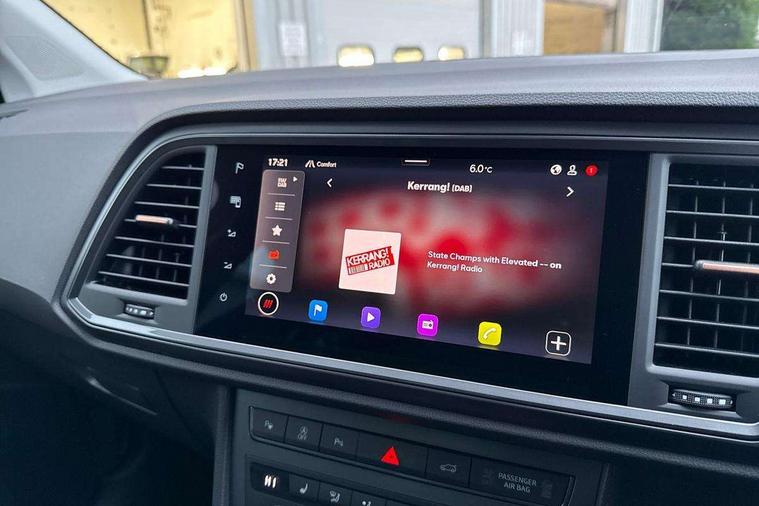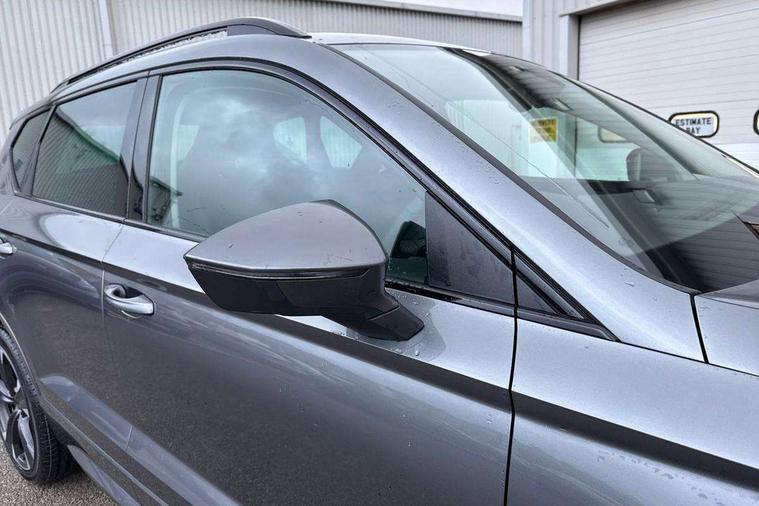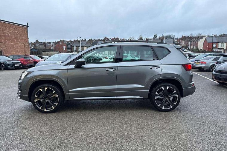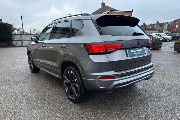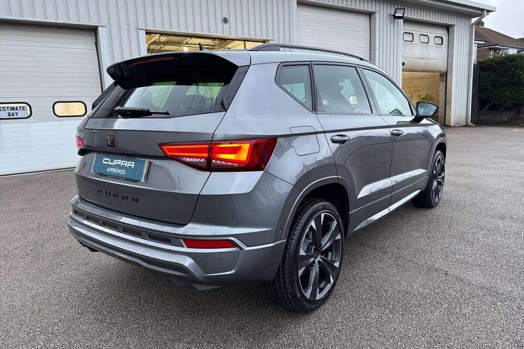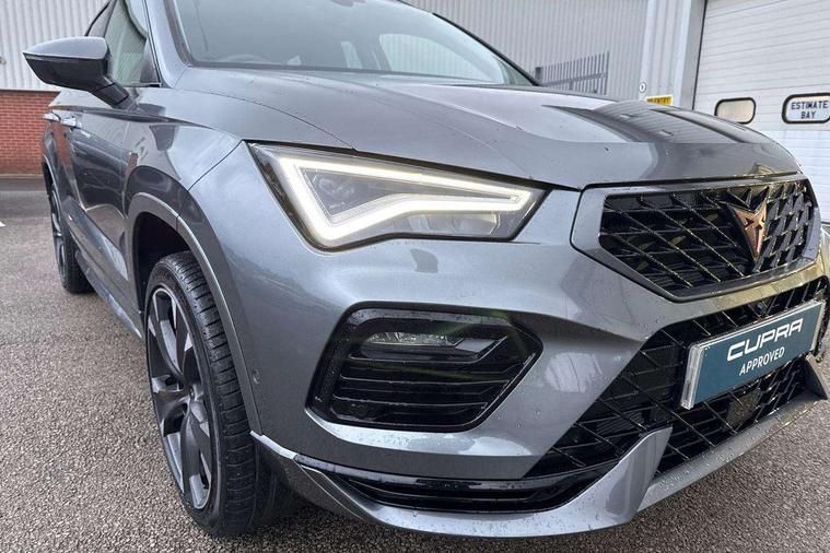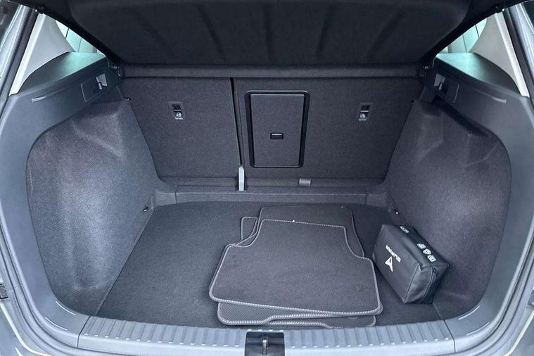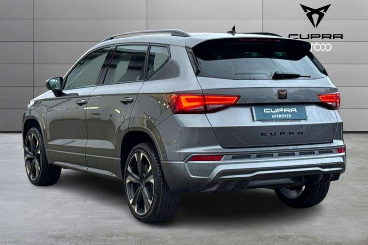 Cruise control system with speed limiter, Digital cockpit, Driving profile selection and conventional shock absorber, E-call, Electric tailgate with virtual pedal, Outside temperature gauge, Progressive power assisted steering, Rear view camera, Self parking functionality (includes front and rear parking sensors), Trip computer, wired and wireless full link smartphone integration, Wireless phone charger, Front and rear shock absorption, chassis with increased ride height, Steering wheel mounted audio/phone controls, Body colour bumpers with dark aluminium diffusor, Body coloured wheel arch surrounds, Dark tinted rear windows, Daytime running lights, Door mirrors with welcome CUPRA light silhouette, Dynamic headlight range control with self adjusting whilst driving, Electric adjustable/heated/folding door mirrors, Front and rear electric windows, Front grille frame in chrome, Full LED headlamps with lens and LED front fog lamps with cornering function, Gloss black door mirrors, Gloss black roof rails, Gloss black side mouldings, Gloss black side window trim, Illuminated aluminium front door sill, LED rear tail lights with dynamic indicators, Rear fog lights, Rear side wing doors, Rear spoiler, Rear wash/wipe, Specific CUPRA design front bumper, Standard rear exhaust tailpipes, Third brake light, 12V socket in front, 3 seat bench in 2nd row, 60/40 split folding rear seat, Aluminium pedals, Cupra steering wheel emblem, Dual zone climate control, Electric driver seat with memory function, Front and rear head restraints, Front centre armrest, Front seat back storage pockets, Grey roof lining, Heated front seats, Heated steering wheel, Height adjustable driver and passenger seat with lumbar adjustment, ISOFIX points in outer rear seats with top tether anchorage points, Leather sport bucket seats, Leather steering wheel and gear knob, Multicoloured ambient lighting with LED interior illumination, Pedal cluster, Rear armrest and easy back seat release mechanism from boot, Single front passenger seat, Sports steering wheel, Steering wheel mounted gearshift paddles, Storage compartment in roof console for sunglass, Storage compartment under driver's seat, Convenience pack - Ateca, Interior lighting pack - Ateca, Navigation system plus pack with DAB - Ateca, Safety and driving pack - Ateca, 3x3 point rear seatbelts, ABS, Traction control system (TCS), Electronic stability control (ESC) and Electronic differential lock system (XDS), Airbags - Driver and front passenger airbag with deactivation, front side, two curtain and driver's knee airbags, Black brake callipers with CUPRA logo, Electric parking brake with auto hold function, Front and rear seatbelt reminder, Front assist with autonomous emergency braking, Hill hold control, Manual rear child locks, Single tone horn, Tiredness recognition system, Tyre pressure monitoring system, Alarm, Keyless entry, Locking wheel bolts, 19" Sport machined alloy wheels 36/3 in black/silver,