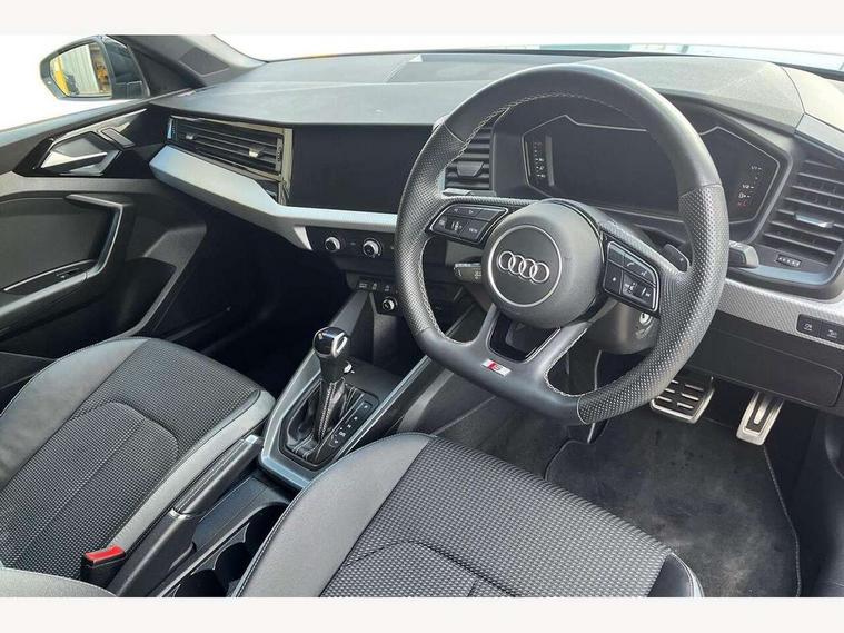 10.25" Digital instrument cluster display classis style instrument dials + speed, odometer, time, outside temperature, telephone menu + fuel level warning, Audi drive select - power steering assistance + engine + gear shift 3 preset modes (auto, dynamic, efficiency and an Individual mode), Audi smartphone interface with connect compatible smartphone via USB directly MMI display + Nav, music, third party apps controlled via MMI controller, Automatic start/stop system, Bluetooth interface, Cruise control, Driver's information system, Electromechanical power steering, Emergency e-call, Emergency services call system, Lane departure warning system, Service interval indicator, Speed limiter, Voice control system, Washer fluid level indicator, Sports suspension, 1 x SDXC card reader, 2 x USB type C connection points, DAB Digital radio, MMI radio plus with 8.8" colour MMI display screen and MMI touch, Auto dimming rear view mirror, Black door mirrors, Black side skirts, Body coloured bumpers, Door sill trims with aluminium inlays and logo, Electric front and rear windows, Electrically adjustable, heated, folding door mirrors with integrated LED side indicator, Front side air inlets in grained matt black and C frame in titanium black, Front wing badges, Heat insulating glass windscreen and side windows, Heated rear windscreen, High level LED brake light, LED headlights with LED rear lights + dynamic rear indicators + headlight adjustment and high beam, turning light + LED daytime running lights, Radiator protective grille frame in matt aluminium silver, Rain and light sensors, Rear diffuser strip in matt titanium black, Rear fog lights, Rear side wing doors, Rear wing door, Rear wiper, Side front spoiler lips in grained matt black, 12V socket in centre console with two cup holders, 3 rear seats with headrests, 3 seat bench in 2nd row, 3 spoke flat bottomed multi-function plus leather steering wheel with S badging, grips in preforated leather, contrast stitching and paddle shift, 40:60 Split folding rear seat or folded fully, Black cloth headlining, Driver and passenger seat with manual height adjust with forward and backwards adjustment, Front and rear black floor mats with contrast stitching in fine silver, Front head restraints, Front passenger seat, Height and reach adjustable steering wheel, ISOFIX child seat mounting for front passenger and outer rear seats including top tether attachment point of outer rear seats, Leather gear knob with aluminium trim, Luggage compartment light with front and rear reading lights, Manually adjustable lumbar support in front seats, Stainless steel pedals, Black styling pack - A1 Sportback Black Edition, LED interior lighting pack - A1, Luggage compartment pack - A1, 3x3 point rear seatbelts, Brake assist function, Driver and front passenger airbag with front side and head airbags, Electronic Stability Control including ABS, EBD, ASR and EDL, Front passenger airbag deactivation switch, Hill hold assist, Manual rear child locks, Seatbelt height adjustment for front seats, Seatbelt monitoring, Tyre pressure warning light, Warning triangle and first aid kit, Anti theft alarm, Anti theft wheel bolts and loose wheel warning, Audi pre-sense front with pedestrain and cyclist recognition, Immobiliser, Remote central locking with 2 foldaway keys, Aluminium trim for control switches, air vents and digital instrument cluster, Silver grey inlays polygon structure in diamond paint finish, Structured grey accent areas including air vents, door handle recesses and centre console in quartz paint finish, 18" 7 spoke rotor design alloy wheels in gloss anthracite black, diamond cut finish,