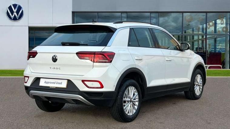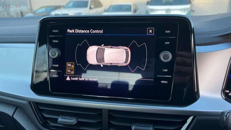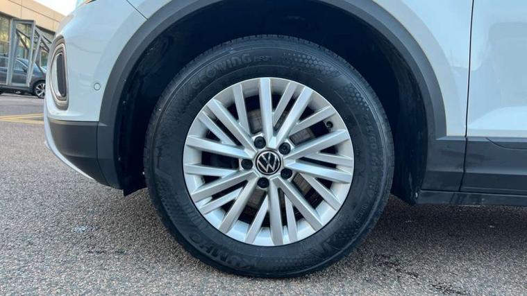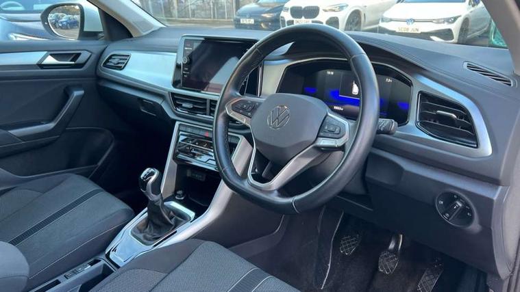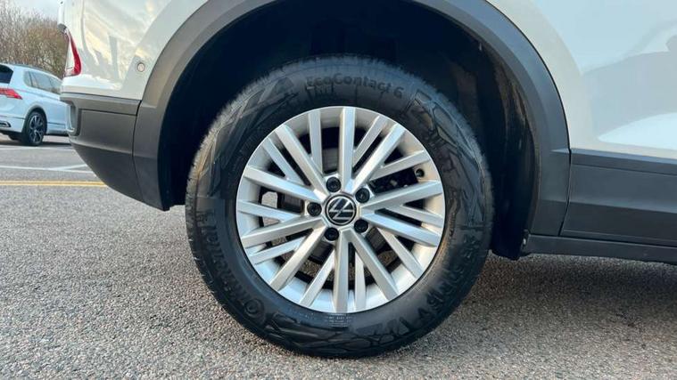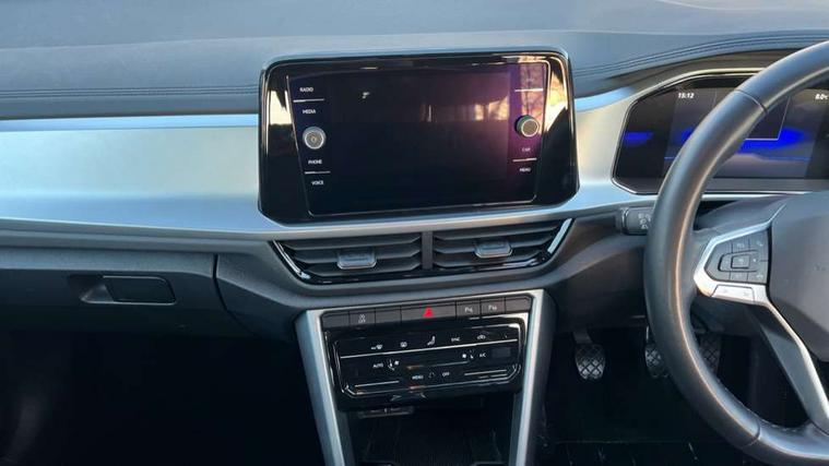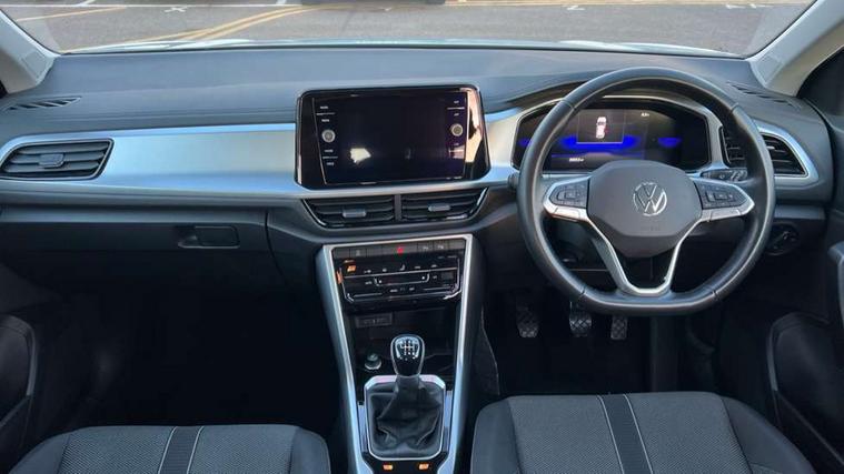 Bluetooth mobile phone interface, Driver alert system with fatigue detection, Driver tips and journey analysis, Emergency call service, Lane keeping system Lane Assist, Modified key software - reduce switch off time for key status change to Long no motion, Online services, Park assist including front and rear parking sensors, Power assisted speed sensitive steering, Service interval indicator, Tailgate/trunk lid release from outside, Think blue trainer driver tips and journey analysis, Warning sound and light for front seatbelts unfastened, Wireless app connect, Battery regeneration during braking, Front shock absorption, Rear shock absorption chassis with increased ride height, Start/stop function with battery regeneration, DAB Digital radio, Diversity antenna for FM reception, Front and rear 6 speakers, Music playback - MP3, WMA and AAC files, Premium USB cable in choice of either Apple or Android smartphone compatibility, SD card slot, Simultaneous pairing of 2 compatible mobile devices, Title and cover art display, We Connect and We Connect Plus functionality, 3rd brake light, Auto dimming interior rear view mirror, Automatic hazard lights activation under emergency braking, Automatic headlight control with LED separate daytime running lights with coming/leaving home function, Black roof rails, Body coloured bumpers and radiator grille with chrome trim and front fog lamps with chrome bezel, Body coloured exterior mirror housings and door handles, Extended roof spoiler, Exterior mirrors aspherical on driver side, convex on front passenger side, External USB type C socket and charging sockets, Front windscreen wiper with intermittent wipe and 4 position delay, Heated rear window, LED Headlights, LED rear combination lamps, LED rear number plate lights, LED tail lamp rear comination lamps, Power windows with comfort operation and circuit breaker, Rain sensor, Rear exhaust tailpipe, Rear fog light on one side and reversing lights on both sides, Rear side wing doors, Rear wash/wipe with intermittent wipe setting, Remote electrically foldable door mirrors, puddle lights and reverse activated passenger's door mirror, 12V power socket in centre console, 3 rear head restraints, 3 seat bench in 2nd row, 4 load lashing points in luggage compartment, Air care climatronic air conditoning system with active combination filter and 2-zone temperature control, Ambient lighting with mirror logo projection, Cloth upholstery, Door and side trim panel in cloth, Drawer under drivers seat, Driver/front passenger seat height adjustment, Front centre armrest, Front comfort sports seats, Front cupholders x 2, Front reading light, Instrument lighting, white adjustable panel illumination, Interior light delay, Isofix child seat preparation, Leather gearshift handle, Load-through provision with cup holder when folded down ('Unsplit rear seat bench, split folding backrest, with centre armrest), Luggage compartment lighting, Lumbar support for driver's and front passengers seat, Non-folding front passenger seat backrest, Single front passenger seat, Storage compartment in left and right luggage area, Storage compartment in rear doors, Storage compartments in driver and front passenger doors, Sunvisors with illuminated vanity mirrors, Variable boot floor, height adjustable and removable, Driver assistance pack without proactive passenger protection - T-Roc, 3 point height adj front seatbelts + pretensioners, 3 point seatbelts in outer rear with ECE label, ABS, Child locks on rear doors, Driver and front passenger airbag with front passenger airbag deactivation, Driver and front passenger safety-optimised head restraints, Drivers seatbelt reminder, Electronic parking brake, Electronic Stability Control (ESC) inc EDL (Electronic Differential Lock) and ASR (Traction Control), Front and rear passengers curtain airbag system including front side airbags, Front assist with city emergency braking and pedestrian monitoring, Front disc brakes, Front seat side impact airbags, Hill start assist, Predictive pedestrian protection, Rear disc brakes, Single tone horn, Tyre pressure loss indicator, Volkswagen roadside assistance, Alarm with interior protection, Anti-theft alarm system with interior monitoring, backup horn, and towing protection, Remote central locking with SAFELOCK, radio remote control with 2 remote control folding keys, Pewter matt decorative inserts for intrument panel, centre console and door panels at the front, Trims for alloy wheels,
