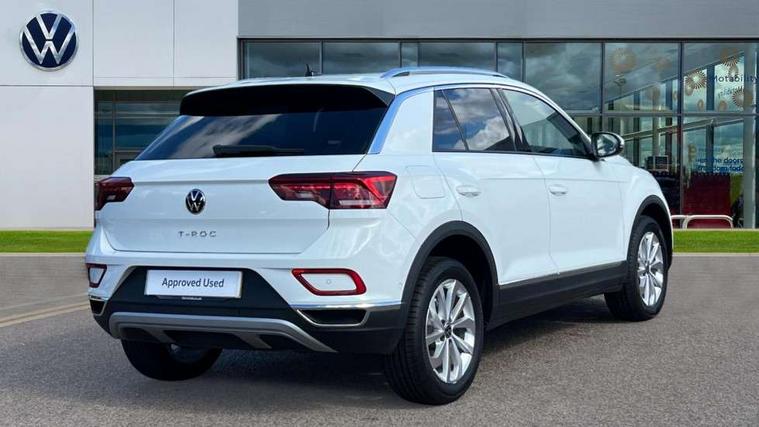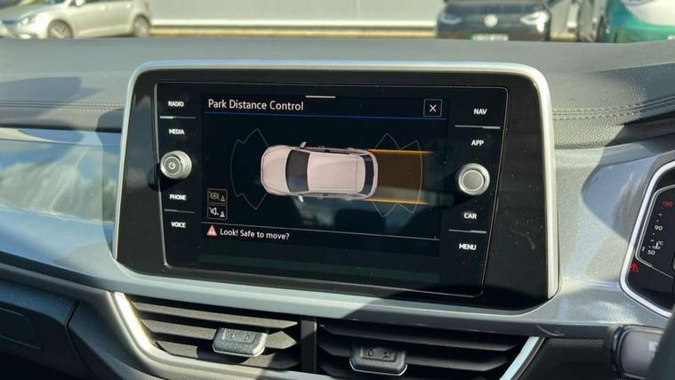 10.25" Digital cockpit pro, Advanced driver attention and drowsiness monitor, Emergency call service, Lane keeping system Lane Assist, Mobile phone interface, Modified key software - reduce switch off time for key status change to Long no motion, Online services, Park assist including front and rear parking sensors, Power assisted speed sensitive steering, Service interval indicator, Tailgate/trunk lid release from outside, Think blue trainer driver tips and journey analysis, Warning sound and light for front seatbelts unfastened, Wireless app connect, Battery regeneration during braking, Start/stop function with battery regeneration, DAB Digital radio, Diversity antenna for FM reception, Front and rear 6 speakers, Music playback - MP3, WMA and AAC files, Premium USB cable in choice of either Apple or Android smartphone compatibility, SD card slot, Simultaneous pairing of 2 compatible mobile devices, Title and cover art display, We Connect and We Connect Plus functionality, Auto dimming interior rear view mirror, Automatic hazard lights activation under emergency braking, Automatic headlight control with LED separate daytime running lights with coming/leaving home function, Body colour sports bumpers with silver metallic underbody fascia, Body coloured exterior mirror housings and door handles, Dynamic headlight range control with self adjusting whilst driving, Electrically adjustable and heated door mirrors, Extended roof spoiler, Exterior mirrors aspherical on driver side, convex on front passenger side, External USB type C socket and charging sockets, Front windscreen wiper with intermittent wipe and 4 position delay, Heated rear window, LED 3rd brake light, LED rear combination lamps, LED rear number plate lights, Light mode for poor weather, rain, fog or snow, Power windows with comfort operation and circuit breaker, Privacy glass for rear side windows and rear window, Rain sensor, Rear exhaust tailpipe, Rear fog light on one side and reversing lights on both sides, Rear side wing doors, Rear wash/wipe with intermittent wipe setting, Remote electrically foldable door mirrors, puddle lights and reverse activated passenger's door mirror, 12V power socket in centre console, 3 rear head restraints, 3 seat bench in 2nd row, 4 load lashing points in luggage compartment, Air care climatronic air conditoning system with active combination filter and 2-zone temperature control, Chrome plated radiator grille inserts, air vent surrounds and light switch surrounds, Door and side trim panel with leatherette insert, Drawer under drivers seat, Front + rear carpet mats, Front centre armrest, Front comfort sports seats, Front cupholders x 2, Front footwell illumination, Front seat back storage pockets, Glove compartment door with light, Instrument lighting, white adjustable panel illumination, Interior ambient lighting and surround lighting, Interior light delay, Isofix child seat preparation, Leather gearshift handle, LED interior light with switch off delay/dimmer and 2 front/rear LED reading lights, Load-through provision with cup holder when folded down ('Unsplit rear seat bench, split folding backrest, with centre armrest), Luggage compartment lighting, Non-folding front passenger seat backrest, Single front passenger seat, Storage compartment in left and right luggage area, Storage compartment in rear doors, Storage compartments in driver and front passenger doors, Sunvisors with illuminated vanity mirrors, Variable boot floor, height adjustable and removable, Driver assistance pack without proactive passenger protection - T-Roc, 3 point height adj front seatbelts + pretensioners, 3 point seatbelts in outer rear with ECE label, ABS, Child locks on rear doors, City emergency braking and pedestrian monitoring, Driver and front passenger airbag with front passenger airbag deactivation, Driver and front passenger safety-optimised head restraints, Drivers seatbelt reminder, Electronic parking brake, Electronic Stability Control (ESC) inc EDL (Electronic Differential Lock) and ASR (Traction Control), Front and rear passengers curtain airbag system including front side airbags, Predictive pedestrian protection, Rear disc brakes, Two tone horn, Tyre pressure loss indicator, Volkswagen roadside assistance, Deep iron grey decorative inserts in dashboard, centre console and front door trim panels, Trims for alloy wheels,