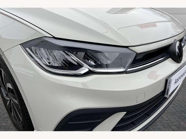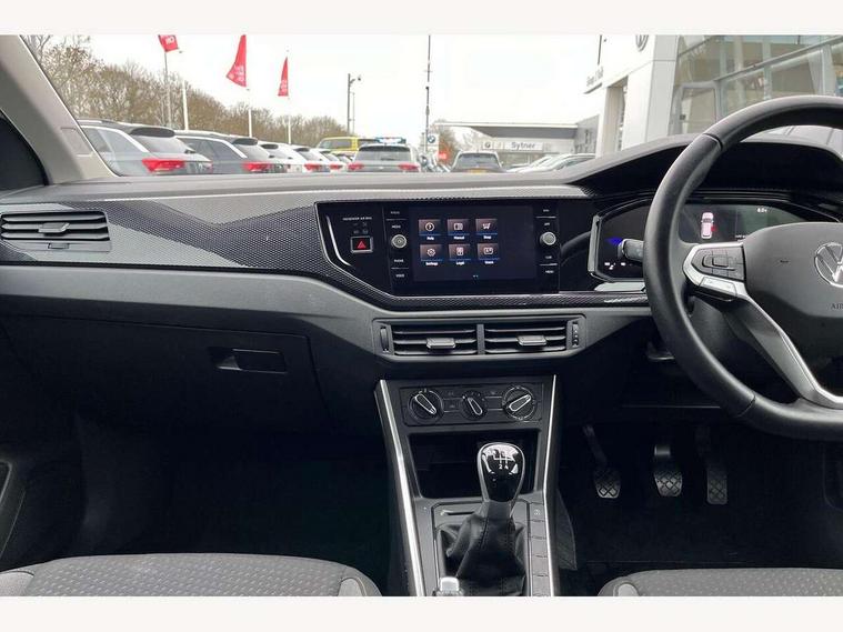 Advanced driver attention and drowsiness monitor, Bluetooth mobile phone interface, Cruise control + speed limiter, Dynamic road sign display, Emergency call service, Lane keeping system Lane Assist, Multifunction camera, Power assisted speed sensitive steering, Preparation for navigation system with media and internet package, Preparation for We connect and We connect plus, Speedo and rev counter, electronic odometer, trip, service interval display and exterior temperature gauge, Standard rear axle, Trip computer, Warning signal and warning light for front and rear seatbelts not fastened, Washer fluid level indicator, Wireless app connect, Front wheel drive, Rear shock absorpion, Start-stop system with battery regeneration (recuperation - energy recovery during braking), DAB Digital radio, Diversity antenna for FM reception, Front and rear 6 speakers, Automatic dimming interior rear view mirror, Automatic headlight control with LED separate daytime running lights with coming/leaving home function, Body colour bumpers with chrome inserts, Body colour door handles, Body colour door mirrors, Electric front windows, Engine badge deletion, Headlight range adjustment, Heat insulating and laminated safety glass windshield, Heat insulating darkened glass in side and rear windows, LED Headlights, LED rear combination lamps, Power folding adjustable/heated exterior mirrors and front passenger exterior mirror lowering function, Rain sensor, Rear electric windows, Rear fog light, Rear side wing doors, Rear windscreen washer and wiper with interval delay, Third brake light, 12V power socket in centre console, 2 front and 2 rear reading lights with switch off delay and dimmer, 2 USB-C ports in the front, 2 USB-C charging sockets on the center console in the rear, 3 rear head restraints, 60/40 split folding rear seat and rear seat bench not split, Ceramique roof lining, Chrome plated radiator grille inserts, air vent surrounds and light switch surrounds, Door and side trim panel, Driver and front passenger seat height adjustment, Driver/passenger sunvisors with illuminated vanity mirrors, Front centre armrest, Front seat backrest storage pockets, Front standard seats, Handbrake lever handle in leather, Hartley/Thomas cloth upholstery, Headliner in recycled material, Isofix child seat preparation easy-fit (for two outer rear seats, and front passenger seat) compatible with I-size, Leather trimmed gear knob, Luggage compartment cover, Luggage compartment lighting, Removable luggage compartment floor, Single front passenger seat, Standard climatic zones, Standard pedal cluster, Three spoke leather wrapped multifunction steering wheel, Light and vision pack - Polo, 3 point height adj front seatbelts + pretensioners, 3x3 point rear seatbelts, ABS, Driver and front passenger airbag with front passenger airbag deactivation, Drivers and front passengers safety optimised head restraints, ESC (Electronic stability control) + EDL (Electronic Differntial lock) and ASR (Traction control), Extended and predictive pedestrian/ cyclist protection, Front assist with autonomous emergency braking (for Adaptive Cruise Control ACC up to 130 mph), Front curtain and side airbags with center airbag, Front disc brakes, Hill hold control, Manual child lock in rear doors, Rear drum brakes, Single tone horn, Tyre pressure loss indicator, Alarm with interior protection, Anti-theft alarm system with interior monitoring, backup horn, and towing protection, Anti-theft wheel bolts, Electronic engine immobiliser, Lava stone black gloss/matt decorative inserts in dash and front door panels, Low rolling resistance tyres,