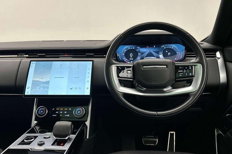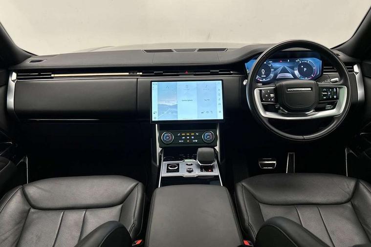 13.1" Touchscreen, 3D surround camera inc frwd traffic detection, vehicle clearance guidance, 3D view, clearsight ground view, manoevure light, 360 parking aid, wade sensing, Adaptive cruise control with steering assist, All Terrain Info Centre, All wheel steering, Android Auto, Apple car play, Blind spot assist, Bluetooth connectivity streaming, Driver condition response, Eco mode, Electric power assisted steering (EPAS), Emergency call service, Front and rear parking aid, Interactive driver display, Lane keep assist, Powered gesture tailgate/boot lid, Rear collision monitor, Rear traffic monitor, Remote, Traffic sign recognition with adaptive speed limiter, Wi-Fi Enabled with data plan, Wireless device charging with phone signal booster, 8 speed automatic transmission, Active damper technology system, Adaptive dynamics, All terrain progress control, All Wheel Drive (AWD), Automatic access height, Terrain Response 2 Auto, Twin speed transfer box, Digital Audio Broadcast radio-DAB, Pivi pro including smart settings, Connected navigation pro, nuance speech, USB socket, Acoustic laminated windscreen, Animated directional indicators, Automatic headlights, Automatic levelling headlights, Centre high mounted stop light, Electric windows with one touch open/close and anti trap, Flush deployable exterior door handles, Front and rear recovery eyes, Front fog lights, Headlamp power wash, Heated rear window, Heated washer jets, LED tail lights, Less tow hitch receiver, Power fold, auto-dimming, heated door mirrors with approach lights, Rain sensing windscreen wipers, Rear boot, Rear fog lights, Rear side wing doors, Rear wash/wipe, Side repeater indicators in mirror, Trailer stability assist, Winter wiper park position, 12V power sockets, 3 seat bench in 2nd row, Air quality sensor, Bright metal pedals, Cabin lighting, Customer configurable single point entry, Driver and passenger front seat armrests, Easy boot loading, Ebony Carpet, Front and rear cupholders, Front and rear grab handles, Front head restraints, Gearshift paddles, Heated steering wheel, Hook in load space, Loadspace light, Luggage tie down in loadspace, Multifunction steering wheel, Rear centre armrest, Rear head restraints, Rear ISOFIX, Single front passenger seat, Twin blade sunvisors with Illuminated vanity mirrors, Upper and lower glovebox, Online pack with data plan - Range Rover, 3x3 point rear seat belts, Anti-lock braking system (ABS), Brake hold function, Cornering brake control (CBC), Customer configurable autolock, DSC - Dynamic Stability Control, Electronic brake force distribution, Electronic parking brake, Electronic traction control, Emergency brake assist, Emergency braking, Front airbags with passenger seat occupant detector, Front side airbags, Hill descent control, Hill launch assist, Low traction launch, Occupant protection assist, Power operated child locks, Roll stability control, Tyre pressure monitoring system (TPMS), Immobiliser, Intrusion sensor and alarm, Keyless entry, Locking wheel nuts, Remote central locking, Noble chrome controls,