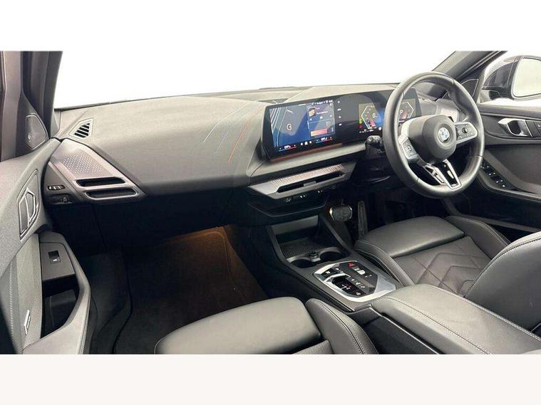 Active guard plus, Attentiveness assist, Bluetooth / WiFi interface for wireless connection of mobile terminal devices and audio streaming, BMW ConnectedDrive online services, BMW Live cockpit plus, BMW Teleservices, Check Control warning system for monitoring of lights and door/luggage compartment open warning, Cruise control with speed limiter, Eco pro mode, Electric power steering with Servotronic steering optimised at all speed ranges, Front and rear parking sensors, Front axle single joint with specific axle kinematics to minimise drive influences on steering + provide increased rigidity agile driving behaviour, Integrated owners handbook, Lane departure warning system, Oil sensor for level and grade, On board computer, Optimum shift indicator, Park assist including reversing assistant, lateral parking aid and reversing assist camera, Personal Profile, Pull away assistant, Rigidly mounted rear subframe - Multi link construction with separate spring / damper configuration and excellent driving characteristics, Speed limit Info including no-overtaking indicator, Speedometer, 49 litre fuel tank, Aluminium lightweight construction, Anti roll bar front and rear, Balancer shaft, Double VANOS twin scroll turbocharging system, Drive Performance Control, Electronic differential lock, High precision injection, M Adaptive suspension, Petrol Particulate Filter, Twin tube gas filled shock absorbers with degressive characteristic curve, VALVETRONIC engine management, DAB Digital radio, Auto dimming rear view mirror, Automatic headlight beam throw control, Automatic windscreen wipers and automatic headlight, Body colour door handles, Body colour mirror caps, Body colour roof trims, Chrome 'M' logo side designation, Chrome exhaust twin tailpipes round 90mm in left, Chrome kidney grille frame with Satin Aluminium struts, Direction indicator side lights in exterior mirrors, Electrically adjustable exterior mirror with mirror adjustment switch on drivers armrest and aspheric on driver side, convex on passenger side, Fading support, Folding side mirrors with auto dimming/folding wing mirrors with auto dimming, Follow me home headlights, Front and rear bumper system with replaceable deformation elements, Front and rear electric windows with open and close fingertip control, anti trap facility and comfort closing, Front door sill finishers in black plastic with M designation in metallic look, Green tinted heat protection glazing, High gloss shadowline window frame, Recess cover mirror frames and B/C pillar embelisher trim, High level third brake light, Integrated front windscreen with washer jets, LED daytime running lights, LED eyebrow turn indicators, LED front fog lights, LED Headlights, Lightweight engineering, Matt black air guide grilles, Matt black wheel arch trim, Nearside reverse light in rear light cluster, Preparation for high beam assistant, Rear fog lights, Rear side wing doors, Rear window wiper, Shark fin antenna, Trailer stabilisation logic, Visible VIN plate, Welcome lighting, 12V power socket in front centre console with blanking plug, 3 rear seat head restraints, 3 seat bench in 2nd row, 3 spoke sports leather steering wheel with black leather and stitching, pearl chrome decorative finish, specific M Badge, Anthracite headlining, Black boot net with lashing eyes, Cargo function on 2nd seat row, Child seat ISOFIX attachment for two outer rear seats and front passenger seat with anchorage points, Conditioned based service, Driver and front passenger backrest net on rear, Driver and front passenger seat heating, Driver side folding compartment in instrument panel, Folding rear clothes hook, Four grab handles integrated in roof lining, Front and rear door pockets with bottle holders, Front and rear side armrest integrated into door trim, Front armrest, Glove compartment, Height adjustable front head restraints, Luggage compartment for bag hooks on left and right, foldable luggage compartment liner and four lashing eyelets, Manual adjust steering wheel, Multi-function controls for steering wheel, Rear seat backrest with manual 60:40 split folding with 3 top tether clips integrated on rear of seat panels, Single front passenger seat, Storage compartment in centre console, Storage compartment in luggage compartment, Stowage of the parcel shelf in luggage compartment trim, Sun visors with vanity mirrors and insert tab, Two front centre console cupholders, Type C two USB ports in rear centre console, Velour floor mats, Connected pack professional - 1 Series, Interior lights pack - 1 Series, M Sport exterior styling aerodynamics pack - 1 Series, 2 tone horn, 3 point seatbelts on all seats, front pyrotechnic belt tensioners, stopper and belt force limiters, rear coded belt buckles, Airbags - Front driver/passenger, front and rear curtain head protection, front side, manual deactivation of front passenger airbag, Anti lock braking system (ABS) with brake assist, BMW emergency call, Brake drying, Braking readiness, Child proof locking system in rear door, Comfort modes, Cornering brake control, Crash sensor activating of airbags, Unlocking doors, hazard warning lights, interior light, safety battery terminal, Driver and front passenger seat belt security check, Dynamic stability control + (DSC+), Dynamic Traction Control - DTC, Electrically operated hand brake including automatic hold function, Front and rear disc brakes, Seatbelt warning, Side impact protection, Tyre pressure monitoring system, Warning triangle and first aid kit, Central locking switch for all doors, fuel filler cap and luggage compartment, Deadlocking function system to all doors, Drive away locking system on all doors and luggage compartment with de-activated in iDrive settings, Locking wheel bolts, Remote control with integrated key with High-gloss Black inlay and M designation and 1 button for open/ close lock, window, open luggage compartment, Start/stop button illuminated in centre console with keyless engine start and auto 