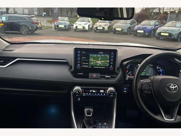 7" colour TFT display, Adaptive cruise control with lane trace assist, Adjustable speed limiter, Apple car play and Android auto, Bluetooth system, Cyclist Detection, Drive mode selector, eCall emergency call system, ECO-driving indicator, Electric power steering, EV audible alert, Hybrid system indicator, Lane departure warning system, Lights on warning, Night Time Pedestrian Detection, Pedestrial detection, Power boot opening and closing, Rear parking camera, Rear parking sensors, Remote boot door release in cabin, Tachometer, Touch 2 Go navigation system including 3D maps and voice control, Traffic sign recognition, Trip computer, Voice control system, Vehicle Stability Control (VSC), 6 speakers, 8" Multimedia display touch screen, Auxiliary socket for external MP3 player, DAB audio, Steering wheel mounted audio controls, Toyota touch media system, USB connection, Auto dimming interior mirror, Auto high beam, Automatic headlamp levelling, Automatic headlights, Automatically retractable door mirrors, Black roof rails, Body colour door handles, Body colour door mirrors, Body colour rear spoiler, Body coloured bumpers, Body coloured Shark-fin antenna, Electric adjustable door mirrors, Emergency brake-light signal (EBS), Follow me home headlights, Front fog lights, Headlight cleaners, Heated door mirrors, LED daytime running lights, LED High mounted stop lamp, LED rear lights, Meshed upper front grille, Parabola LED headlights, Power front windows, Power rear windows, Privacy glass, Rear screen wiper - intermittent, Rear windscreen defogger, Silver front under-run, Silver rear under-run, Trailer sway control, Turning signal integrated indicators in door mirrors, 3 rear headrests, 60/40 split fold rear seat back, Boot light, Clean air filter, Cloth upholstery, Driver and front passenger personal light, Driver and front passenger Whiplash Injury Lessening seats, Driver and passenger sunvisors with illuminated vanity mirrors, Dual sided deck board in boot, Dual zone automatic air conditioning, Floor mats, Folding rear centre armrest, Front and rear bottle holders, Front centre armrest, Front footwell lights, Front headrests, Front/rear roof mounted assist grips, Grey roof lining, Isofix child seat preparation, Leather gear shift with chrome surround, Manual telescopic and tilt 3-spoke leather steering wheel with Chrome insert, Manually height-adjustable sliding and reclining driver seat, Manually reclining and sliding front passenger seat, Pollen filter, Rear coat hooks, Rear door armrests, Rear passenger air vents, Reclining rear seats, Satin chrome interior door handles, Sunglasses holder, 3x3 point rear seatbelts, ABS/EBD, Adjustable front driver and passenger seat belt extender, Brake assist function, Child proof door locks, Collision mitigation braking system, Driver/Front Passenger airbags, Driver/front passenger side airbags, Drivers knee airbag, Electronic parking brake, Electronic Stability Programme (ESP), Emergency brake light system (EBS), Front and rear curtain airbags, Front and rear seatbelt reminder, Hill start assist, Passenger airbag cut-off device, Seatbelt pretensioners with load limiters, Traction control, Tyre pressure warning, Alarm/immobiliser, Glass-breaking alarm sensors, Light - on and Key in reminder, Remote central locking, Smart entry + Smart start, Speed sensitive auto door locking, Tilt detection sensors, Piano black centre console with silver insert, Soft-touch black lower dashboard, Soft-touch black upper dashboard with silver insert, Full size spare wheel,