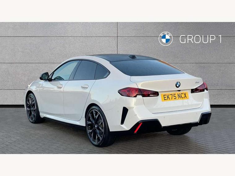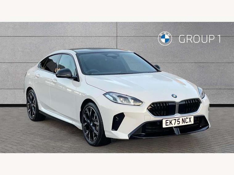 3 driving modes Normal, Eco, Sport, Active guard plus, Attentiveness assist, Auto start-stop, Bluetooth / WiFi interface for wireless connection of mobile terminal devices and audio streaming, BMW ConnectedDrive online services, BMW Intelligent Personal Assistant, BMW Live cockpit plus with widescreen display 10.25" instrument cluster and 10.7" control display, BMW Online services, BMW operating system with 7.0 mid interface, BMW Teleservices, Check Control warning system for monitoring of lights and door/luggage compartment open warning, Cruise control with braking function, Electric power steering, Front and rear parking sensors, Gearshift time display in manual mode, Integrated navigation data with map data via USB +features such as 3D landmarks and micro city models, Integrated owners handbook, Intelligent voice assistant, Lane departure warning system, Oil sensor for level and grade, On board computer - average speed+fuel consumption, service interval, clock/date, odometer/trip meter, outside temperature display and ice warning, Optimum shift indicator, Park assist including reversing assistant, lateral parking aid and reversing assist camera, Personal e-SIM, Personal Profile, Pull away assistant, Speed limit Info including no-overtaking indicator, Speed limiting function, 49 litre fuel tank, Automatic transmission with gearshift paddles, Drive Performance Control, Electronic differential lock, M Adaptive suspension, Performance Control, Petrol Particulate Filter, VALVETRONIC engine management, 2x USB Type C ports (for charging and data transfer), 4G LTE Connectivity with hard wied 4G network sim card, DAB Digital radio, Auto wipers, Automatic headlight beam throw control, Automatically dimming rear view mirror, Body colour door handles, Direction indicator side lights integrated exterior mirrors, Exterior M sport design elements, Folding side mirrors with auto dimming/folding wing mirrors with auto dimming, Follow me home headlights, Front and rear bumper panel with M specific design, in body colour with inserts in black high gloss, Heated door mirrors, High gloss shadow line exterior trim, High level third brake light, Key with M identification, LED daytime running lights, LED eyebrow turn indicators, LED front fog lights, M identification on the sides, Rain sensor with automatic headlight activation, Rear boot, Rear fog lights, Rear side wing doors, Rear window heating, Roof trim strip in vehicle colour, Shark fin antenna, Side sill covers with M specific design in body colour, Trailer stabilisation logic, Visible VIN plate, Welcome lighting, 12V power socket in centre console, 2 cupholders in front centre console, 3 rear seat head restraints, 3 seat bench in 2nd row, 3 spoke sports black walknappa leather steering with black stitching, shift paddled boost inscription, shaped thumb rests, specific M Badge, Anthracite headlining, Child seat ISOFIX attachment for two outer rear seats and front passenger seat with anchorage points, Conditioned based service, Driver and front passenger backrest net on rear, Driver and front passenger seat heating, Four grab handles integrated in roof lining, Front and rear door pockets including bottle trays, Front and rear side armrest integrated into door trim, Front head restraints, Height adjustable front head restraints, Luggage compartment lighting, Rear seat backrest with manual 60:40 split folding with 3 top tether clips integrated on rear of seat panels, Single front passenger seat, Sun visors with vanity mirrors and insert tab, Connected pack professional - 2 Series Gran Coupe, 2 tone horn, Airbag - Front driver and passenger, front and rear head, front side, curtain head protection, manual deactivation of front passenger airbag possible, Anti lock braking system (ABS) with cornering brake control, BMW emergency call, Brake drying, Braking readiness, City braking function, Crash sensor activating of airbags, Unlocking doors, hazard warning lights, interior light, safety battery terminal, Dynamic stability control + (DSC+), Dynamic Traction Control - DTC, Electrically operated hand brake, Front and rear disc brakes, PC iBrake (Post crash approach control warning with light braking function), Rear brake discs, Rear child proof door locks, Seat belt security check for driver and front passenger, Seatbelt warning, Side impact protection, Three point seat belts on all seats including front belt stopper, pyrotechnic belt tensioners and belt force limiters, Trailer stability control, Tyre pressure monitoring system, Ventilated front disc brakes, Warning triangle and first aid kit, Central locking switch for all doors, fuel filler cap and luggage compartment, Deadlocking function system to all doors, Drive away locking system on all doors and luggage compartment, Locking wheel bolts, Start/Stop button (illuminated) in centre console with keyless engine start and Auto Start-Stop deactivation button, Thatcham Cat.1 alarm and immobiliser, Two remote control key with integrated key - open/close doors/fuel flap/tailgate +1 button for unlock compartment with M design high gloss black inlay, Reduced rolling resistance tyres, Tyre repair kit,
