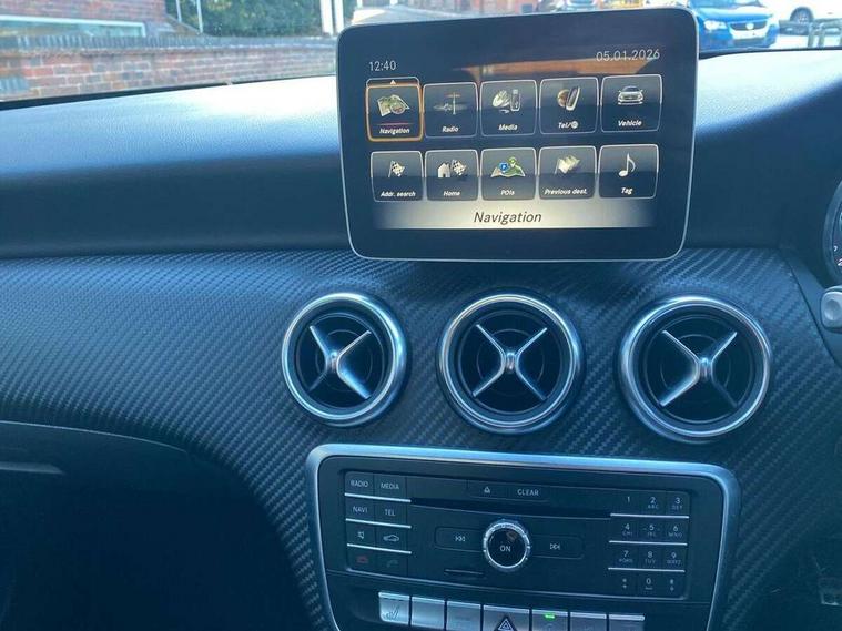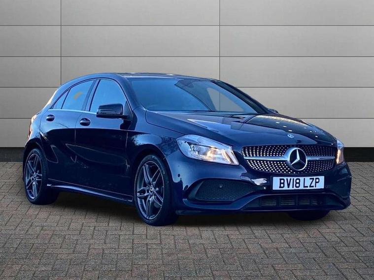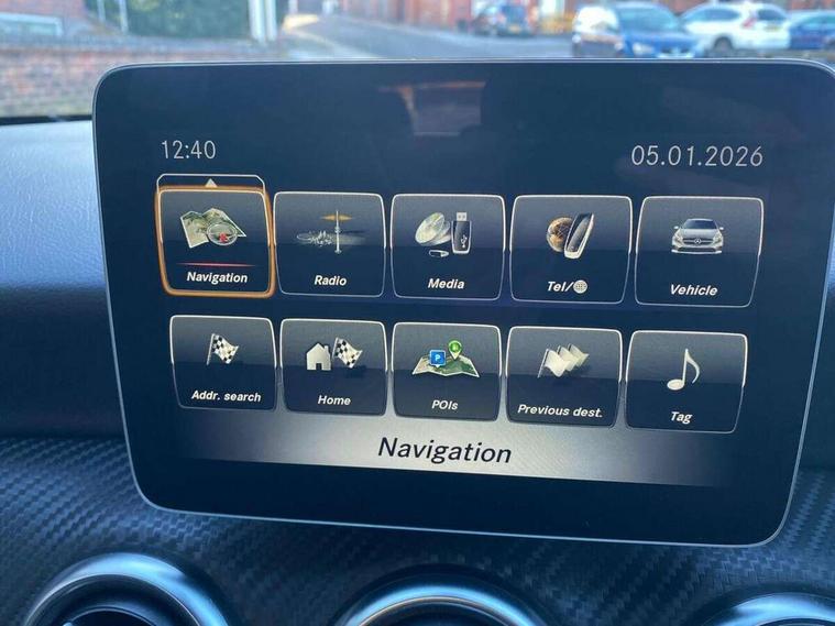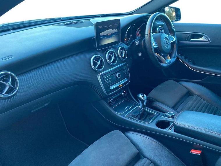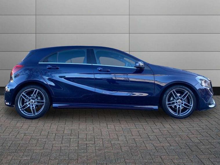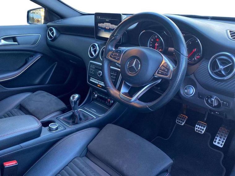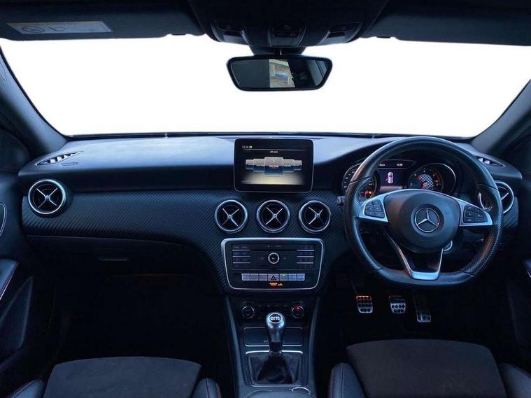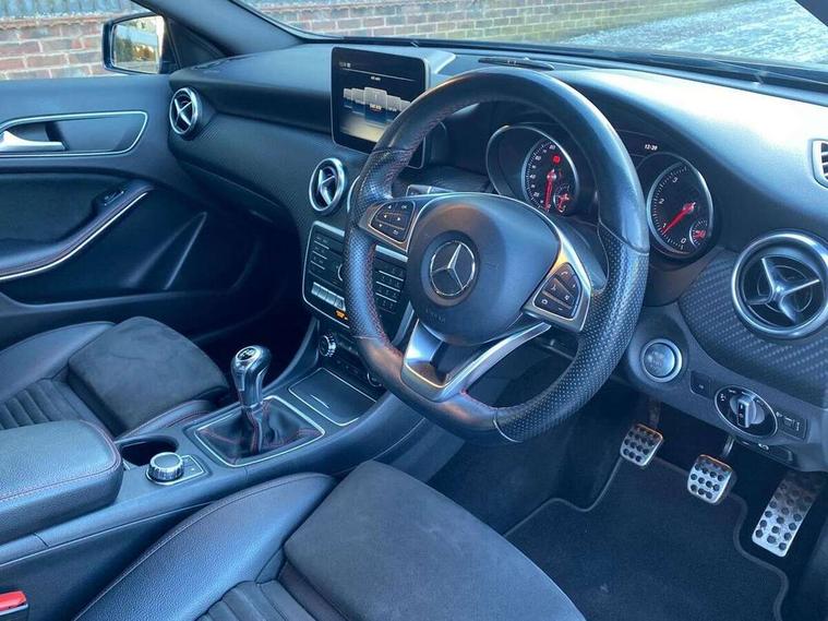 180 degree rear view camera with parking guidelines, 7" colour screen in instrument panel, 7" touchscreen media display, Attention assist, Brake pad wear indicator warning light, Car wash mode, Cruise control + speed limiter, Direct steering, Dual bluetooth interfaces, DYNAMIC SELECT with a choice of driving modes (ECO, Comfort, Sport and Individual), ECO start/stop function, Fluid level warning indicator for fuel, oil, coolant and washer fluid, Hard-disk navigation, Hey Mercedes Voice activation, Lamp failure indicator, Mercedes me connect including emergency call system, accident recovery, breakdown management and maintenance, Mercedes me remote services, Outside temperature gauge, Owners manual in English, Pre-installation for car sharing, Preinstallation for Mercedes Benz link, Service indicator (ASSYST), Speed sensitive power steering, Trip computer, Lowered comfort suspension, Rear axle torsion beam, 2 USB ports (type C) in rear stowage compartment and one in front of center console, 6 speakers, DAB Digital radio, MBUX multimedia system with DAB digital radio and touchpad including satellite navigation, Mercedes-Benz sound system - 100W, 4 Electric Front and Rear windows, Adaptive brake lights, AMG bodystyling - Front apron with splitter in chrome, rear apron with chrome trim and chrome visible trim elements in tailpipe, Black weather strip, Body colour bumpers, Body colour door handles, Body colour side skirt, Body coloured door mirrors, Chrome beltline trim, Diamond radiator grille with chrome pins and silver louvre + chrome insert, Electric adjustable and heated door mirrors with integrated LED side indicators, Exhaust system - Twin visible tailpipes in polished stainless steel, Headlamp assist automatic headlamp activation, Heated glass rear windscreen + timer control, LED high performance headlamps with integrated LED daytime running lights, LED tail lamp, LED third brake light, Privacy glass, Radio aerial, Rain sensing windscreen wipers with two sensitivity settings, Rear fog lights, Rear wiper, Window line trim strip in chrome, 3 Spoke flat bottom leather multi function steering wheel with perforated leather in grip area, 40:20:40 split folding rear seats, Artico man-made leather/Microfibre Dinamica upholstery with red contrast stitching, Auto Mercedes-Benz child seat recognition sensor, Black air vents with surround in silver chrome, Black roof lining, Brushed stainless steel sports pedals with rubber studs, Controller on centre console with chrome surround, Floor mats with stitched edging and AMG lettering, Front centre armrest with storage compartment, Front door sills with Mercedes Benz lettering, Front seat backs luggage nets, Front seat cushion length adjustment, Galvanished gear shift paddles on steering wheel, Heated front seats, Height/reach adjustable steering column, Interior mirror with reading lamps in black and frameless, ISOFIX and top tether child seat fixing points in two outer rear seats, Manual height adjustable front seats, Rear head restraints, Seat occupancy sensor for front passenger seat, Sports seats with integrated headrests, Stowage compartment in centre console with retractable cover, Sunvisors with illuminated vanity mirrors, Touchpad on center console, Twin front cupholders, Two zone thermotronic luxury automatic climate control, Light and sight pack - A Class, Seat comfort pack - A Class, 3 rear 3 point seatbelts, ABS with Brake Assist, Active bonnet, Active brake assist includes forward collision warning system with autonomous braking, Adaptive brake assist with hold function and hill start assist, Black seatbelts, Childproof locks manually operated for rear doors and electrically operated for rear power windows, Crash responsive emergency lighting, Driver and passenger head and side airbags, Drivers knee airbag, Dual stage driver/passenger airbags, Electronic parking brake, ESP curve dynamic assist, ESP with ASR, Front and rear seatbelt reminder, Front brake callipers with Mercedes Benz lettering, Tyre pressure monitoring system, Warning triangle and first aid kit, Window airbags, Alarm system/interior protection/immobiliser, Keyless Go, Remote central locking and crash sensor with emergency opening function, Urban guard vehicle protection system with immobiliser and interior protection, Dinamica microfibre trim in black, 18" AMG 5 twin spoke light alloy wheels in titanium grey with highsheen finish, Summer tyres, Tirefit sealant kit,
