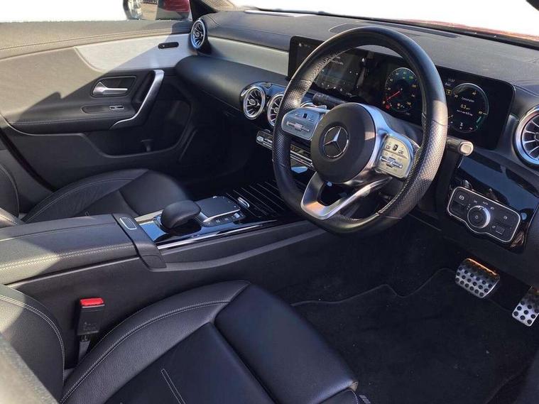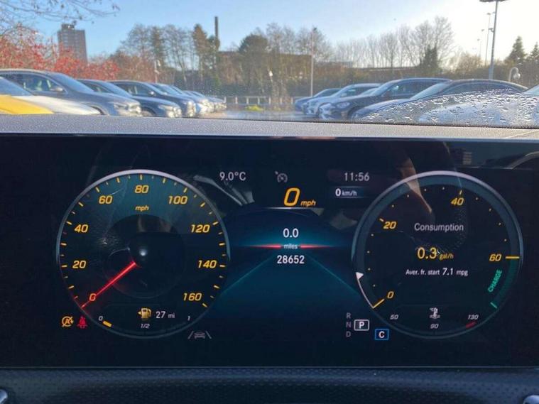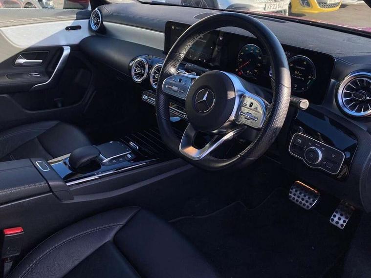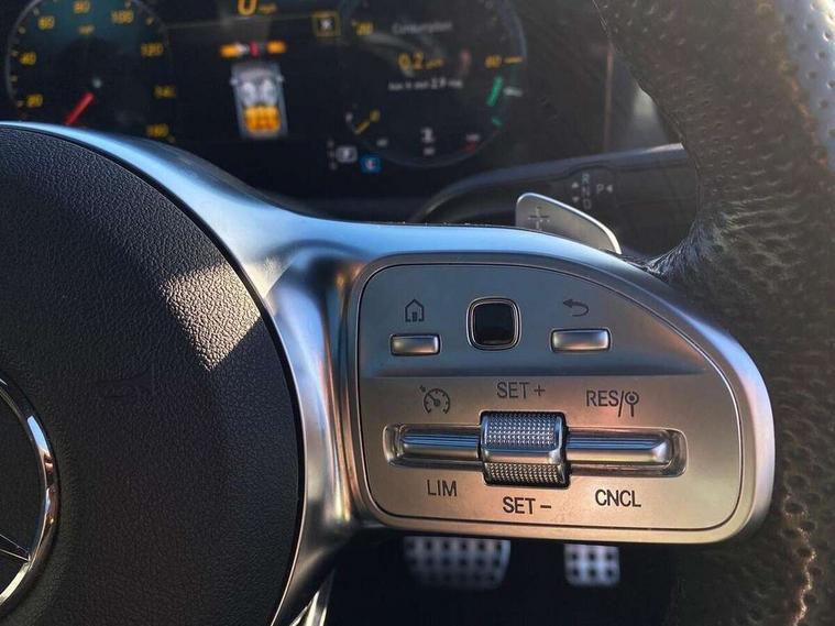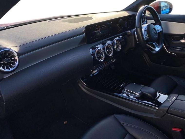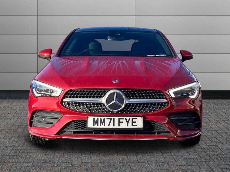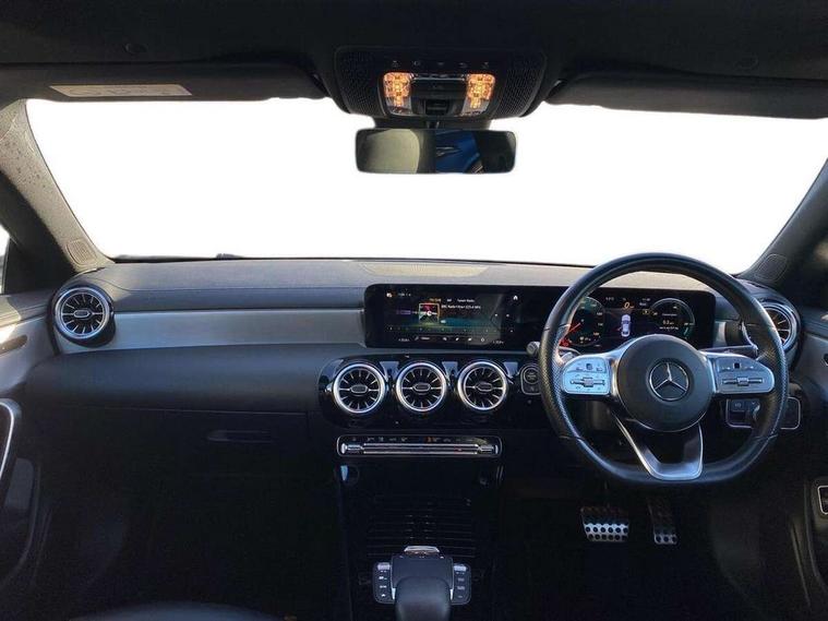 10.25 inch Instrument display with digital cockpit, 10.25 inch touchscreen central media display, Attention assist - Monitors steering behaviour and long journey fatigue, Bluetooth connection, Car wash mode, DYNAMIC SELECT with a choice of driving modes (ECO, Comfort, Sport and Individual), ECO start/stop function, Fluid level warning indicator for fuel, oil, coolant and washer fluid, Hard-disk navigation, Hey Mercedes Voice activation, Lamp failure indicator, Mercedes me connect including emergency call system, accident recovery, breakdown and maintenance management, Mercedes me remote services, Outside temperature gauge, Owners manual and service booklet in English, Pre-installation of private car share, Preinstallation for Mercedes Benz link, Radio aerial integrated into front and rear windshields, Service indicator (ASSYST), Smartphone integration with Apple CarPlay and Android auto, Traffic sign assist, Trip computer in multifunction display with current consumption indicator, 7G-DCT 7 speed automatic transmission, Lowered comfort suspension, Rear axle multi-link, DAB digital radio tuner, MBUX multimedia system with DAB digital radio and touchpad including satellite navigation, Mid-range sound system, USB (type C) ports (2) in stowage compartment and 1 in front of centre console, Adaptive brake lights, AMG body styling with AMG front apron and rear apron and visible exhaust tailpipe in chrome trim elements, AMG bodystyling side skirts, Auto headlights, Body colour bumpers, Body colour door handles, Chrome beltline strips, Chrome weather strip, Diamond radiator grille pins in chrome with silver painted louvres and chrome insert, Electric panoramic sliding sunroof, Electric windows, Electrically adjustable and heated door mirrors with integrated LED indicators, Exhaust system with 2 Visible tailpipe trim elements and rear apron with trim in chrome, Headlamp assist automatic headlamp activation, Heated glass rear windscreen + timer control, High level LED third brake light, Integrated LED daytime running lights, Interior mirror with black reading lamps and frameless, LED tail lamp, Multibeam LED headlamps with adaptive highbeam assist plus, Privacy glass with dark tinting on rear side windows and rear window, Rain sensing windscreen wipers with two sensitivity settings, Rear boot, Rear fog lamp, Rear side wing doors, Window line trim strip in chrome, 3 seat bench in 2nd row, 3 spoke flattened bottom nappa leather multifunction steering wheel with perforated leather in grip area, 40:20:40 split folding rear seat backrests, Air conditioning - Two zone thermotronic luxury automatic climate control with display, Air vents with surround in silver chrome, Automatic child seat recognition sensor, Black roof lining, Brushed stainless steel sports pedals with rubber studs, Floor mats with stitched AMG lettering, Front centre armrest with stowage, Galvanished gear shift paddles on steering wheel, Heated front seats, Illuminated front door sills with changeable cover, Illuminated glove compartment stowage, Interior lighting - 64 colour Ambient lighting, Luggage net on driver/front passenger seat backrest, Manually height and reach adjustable steering column, Rear armrest with two integral cup holders for drinks, Rear head restraints, Single front passenger seat, Sport seats with fixed head restraints, Stowage compartment in centre console with retractable cover, Sunvisors with illuminated vanity mirrors, Touchpad on center console, Twin front cupholders, Two outer rear seat isofix and top tether child seat fixing points, Keyless go pack - CLA, Light and sight pack - CLA, Mirror pack - CLA, Parking package - CLA, Seat comfort pack - CLA, Active bonnet pedestrain safety measure which detects an impact and raises bonnet by 65mm, Adaptive brake assist with hold function and hill start assist, Anti-lock braking system (ABS), Black seat belts, Bonnet with power domes, Brake pad wear warning indicator, Childproof locks manually operated for rear doors and electrically operated for rear power windows, Crash responsive emergency lighting, Driver and front passenger head and sidebags, Driver and front passenger windowbags, Drivers knee airbag, Dual stage driver and front passenger airbags, Electric parking brake, Electronic stability programme with acceleration skid control, ESP curve dynamic assist, Front and rear seatbelt reminder, Front passenger seat occupancy sensor, Three point rear seat belts, Tyre pressure monitoring system, Warning triangle and first aid kit, Remote central locking and crash sensor with emergency opening function, Urban guard vehicle protection system with immobiliser and interior protection, Light aluminium with longitudinal grain interior trim, 18" 5 twin spoke design alloy wheels painted in titanium grey with high sheen finish, Summer tyres, Tirefit tyre sealant kit,