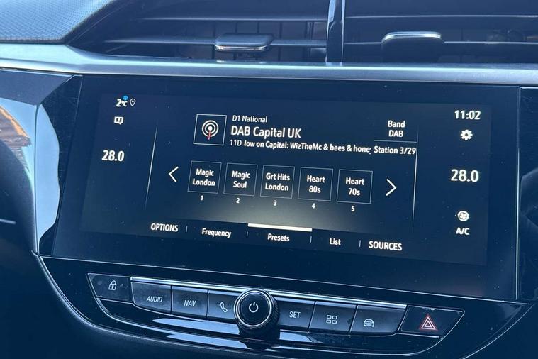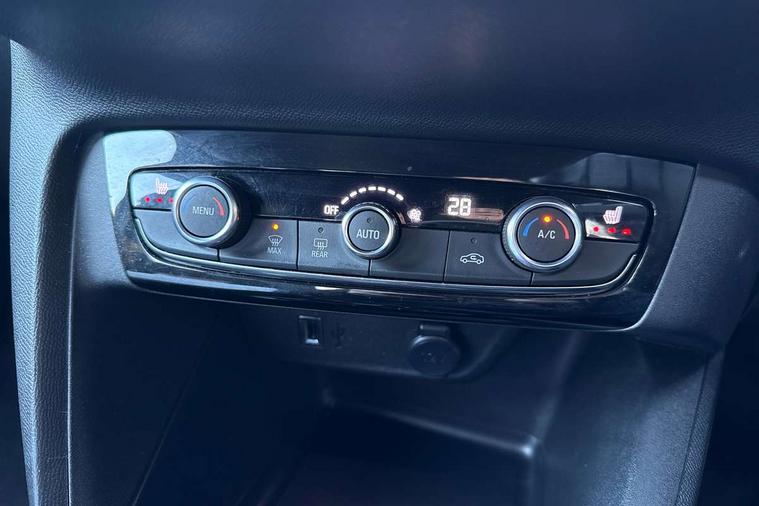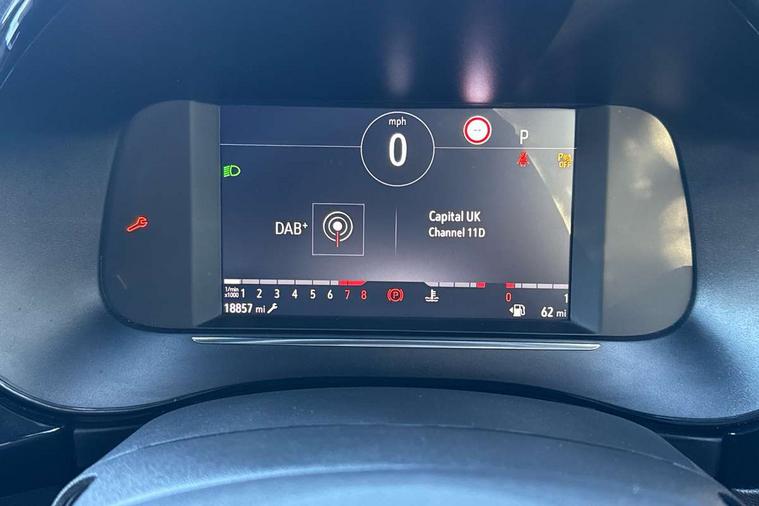 7 inch digital instrument cluster display, Adaptive cruise control with speed limiter, Apple car play/Android Auto, Auto tele unit 3S vehicle communication system, Blind spot alert, Bluetooth mobile phone portal, Central facia display with digital clock, outside air temperature and audio information, Driver drowsiness alert system, eCall emergency call system, Engine oil life indicator, Front and rear parking sensors, Front camera system, Infotainment remote controls right side of steering wheel, telephone buttons on left side, Instrumentation - Speedometer, rev counter, low fuel gauge warning light + water temperature gauge warning light, Lane departure warning with lane assist, Lane positioning assist, Lights on audible warning, Multi function trip computer - Trip odometer, vehicle range, average speed and fuel economy, instantaneous fuel economy and driving time, Multimedia Navi pro 10" colour touchscreen, Sat nav, European coverage, 2D/3D street level mapping, points-of-interest search and map updates via USB, Panoramic rear view camera, RDS with traffic programme, Service indicator, Speed sensitive power steering, Speed sign recognition, Sports switch, Start/stop system, Three driving modes (Normal, Sport, Eco), Traffic sign recognition with intelligent speed adaptation, Vauxhall connect box, Wireless charger, Electronic returnless fuel system, Petrol Particulate Filter, Under body shield for aero, AM/FM stereo radio, Bluetooth A2DP audio streaming function (Advanced audio distribuition profile), DAB Digital radio, Rear USB port, Six speakers, Steering wheel audio, phone and cruise controls, USB with iPod control, Automatic headlamp levelling, Automatic headlight control system, Black door mirror housings, Body colour door handles, Body colour front and rear bumpers, Bonnet/headlight/wiper structure, Centre rear brake lights, Chrome effect lower side window mouldings, Chrome effect tailpipe extension, Chrome logo bar, Dark tinted rear side windows + tailgate window, Electrically adjustable and heated door mirrors, Electrically folding door mirrors, Electrically operated front and rear windows with safety auto reverse and one touch up/down facility, Electrochromic automatic anti-dazzle rear view mirror, Flexible roof mounted aerial, Glazed tailgate and heated rear window with wash/wipe facility, Hazard warning lights, Headlamps for left side traffic, High beam assist, High gloss black finish B pillar, Intelli-Lux Matrix LED Headlights, LED daytime running lights, LED front fog lamps, LED tail lamp, Rain sensitive windscreen wipers, Rear fog lamp, Rear reversing lights, Rear side wing doors, Solar heat absorbing windscreen and windows, Sports front and rear body styling for upper and lower bumper design, Third brake light, Two speed windscreen wipers with variable intermittent wipe, Upper and lower bumper design, Windscreen and side window demist vents, 12V power sockets, 2 way adjustment front driver and co-driver passive headrest, 3 seat bench in 2nd row, 3 spoke flat bottomed leather effect steering wheel with satin chrome effect bezel, 4 speed fan with illuminated controls, 6 way manual adjustable co-driver seat height up/down, reach fore/aft, backrest upright/recline, 6 way manual adjustable driver seat with massage function height up/down, reach fore/aft, backrest upright/recline, 60/40 split folding rear seat, Alcantara leather upholstery, Alloy effect sport pedals, Black headliner, Cabin particulate filter - removes dust, airborne particles and pollen, Comfort front seats, Driver's seat lumbar support, Driver/passenger sunvisors with vanity mirrors + covers, Electronic climate control (ECC), Four adjustable facia vents, Front centre armrest with storage, Front cupholder, Front map reading lights, Front seatback storage pockets, Gearshift paddles, Heated front seats, Height adjustable head restraints, Illuminated glovebox with lid, Illuminated load compartment trunk, Interior courtesy light, Internal chrome door handles, Jet black door panels on door trim, Jet black side bolsters and surrounds, LED ambient lighting, Luggage compartment lighting, Polyurethane gear knob/lever, Reach and rake adjustable steering column, Right hand drive (RHD), Single dome lamp with dual front reading lamps, Single front passenger seat, Two litre open door pockets, 3 rear 3 point seatbelts, Anti-lock braking system (ABS), Cornering brake control, Deactivation switch for front passenger's airbag, Drag torque control, EBD - Electronic brakeforce distribution, Electrical child lock system in rear door latch, Electronic parking brake, Electronic Stability Programme (ESP), Emergency brake assist, Enhanced automatic emergency braking with pedestrian detection, Enhanced automatic emergency city braking, Forward collision alert, Front seatbelt unfastened audible warning and warning light, Hill hold and start system, Inertia reel lap and diagonal seatbelts for all seats, ISOFIX child seat mountings incorporating top tether anchor points located on second row rear seats, Seatbelt pretensioners, Single tone horn, Six airbags - Driver's dual stage airbag/front passenger's dual stage airbag/front seat side impact airbags/full size curtain airbags, Straight line stability control, Traction control, Tyre deflation detection system, Tyre pressure monitoring system, 2 keys one folding with integral remote, Electronically protected audio equipment, Engine deadlock and immobiliser, Freewheeling door locks, Keyless entry and start, Locking wheel nuts, Remote control central locking, Remote control central locking activation switch on driver door, Remote control security alarm system, Remote locking fuel filler flap, Steering column lock, Visible vehicle identification number, Jet black facia with galvano chrome inserts, 17" Diamond cut bi-colour alloy wheels, Tyre repair kit,