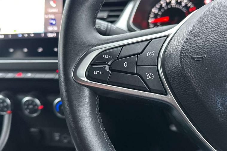 4.2" TFT Driver information display, Cruise control + speed limiter, eCall emergency call system, Eco mode, Gear change indicator, Lane departure warning system, Lane keep assist, Rear parking sensor, Traffic sign recognition with over speed prevention, Trip computer, Variable assistance power steering, EasyLink 7" touchscreen with navigation, bluetooth, DAB radio, USB ports, compatible with Apple carplay/Android auto, Automatic headlights, Black side door protection, Body colour door handles, Body coloured bumpers, Drivers one touch window with anti-pinch feature, Electric adjustable/heated/folding door mirrors, Electric rear windows, Extra tinted glass in rear windows and tailgate, Full LED headlights, Grey front and rear skid plate, LED daytime running lights, LED front fog lights, LED high level brake lights, LED rear fog light, Limited badge on front wing, Limited door sills, Privacy glass, Rear wiper, 12V Accessory socket, 3 rear headrests, 60/40 split and fixed base rear seat bench, Centre console storage tray, Front head restraints, Glovebox, Heating system with pollen filter, Height adjustable driver's seat, Height/reach adjust steering wheel, ISOFIX child seat fixing points on rear outermost seats, Limited cloth upholstery, Manual climate control, Middle console with armrest and storage, Rear air vents, Sliding rear bench, Standard bulb in front roof lights, Synthetic leather steering wheel, 3 rear seatbelts, ABS+EBA, AEBS, Distance warning alert, Driver and front passenger, side, head and curtain airbags, Driver height adjustable seat belt, Electric parking brake, Electronic stability control, Front and rear no seatbelt warning sound, Front dash warning indicator in case of heavy braking, Front driver and passenger side airbag deactivation, Hill start assist, Rear door and window child locking function for rear door, Tyre pressure warning light, Anti drill door locks and locking fuel cap, Central door locking, Deadlocking system, Hands free keycard with push button and start/stop function, RAID (Renault Anti-Intruder Device) automatic door locking, Black soft touch dashboard, 17" Diamond cut alloy wheels,