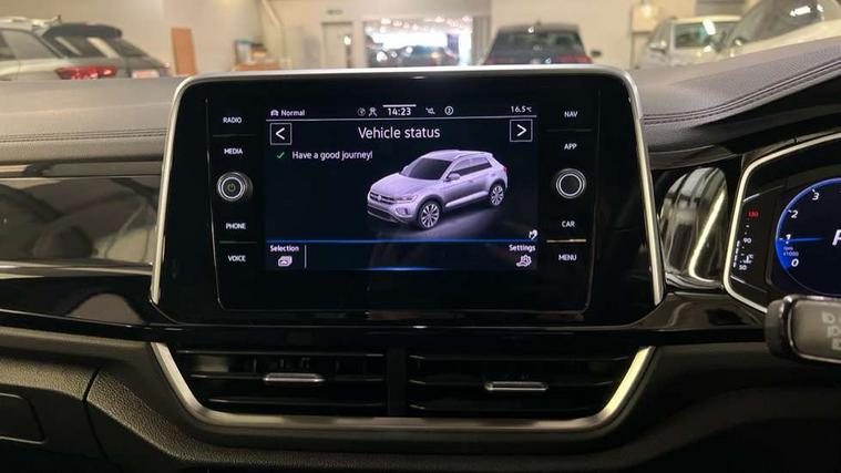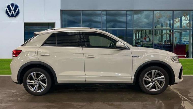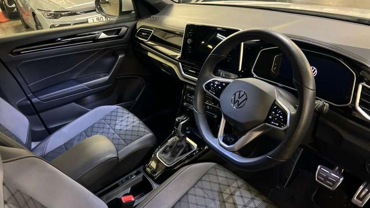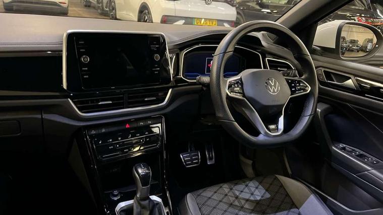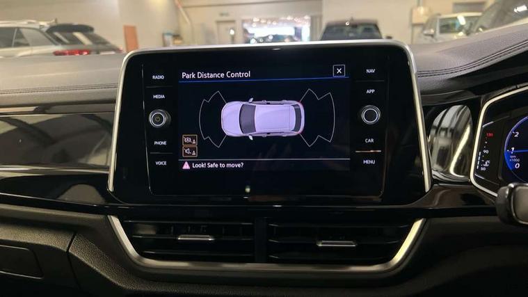 10.25" Digital cockpit pro, Bluetooth mobile phone interface, Driver alert system with fatigue detection, Driver tips and journey analysis, Emergency call service, Lane keeping system Lane Assist, Modified key software - reduce switch off time for key status change to Long no motion, Online services, Park assist including front and rear parking sensors, Service interval indicator, Tailgate/trunk lid release from outside, Think blue trainer driver tips and journey analysis, Warning sound and light for front seatbelts unfastened, Wireless app connect, Battery regeneration during braking, Start/stop function with battery regeneration, Diversity antenna for FM reception, Front and rear 6 speakers, Music playback - MP3, WMA and AAC files, Premium USB cable in choice of either Apple or Android smartphone compatibility, SD card slot, Simultaneous pairing of 2 compatible mobile devices, Title and cover art display, We Connect and We Connect Plus functionality, 3rd brake light, Auto dimming interior rear view mirror, Automatic hazard lights activation under emergency braking, Automatic headlight control with LED separate daytime running lights with coming/leaving home function, Chrome plated radiator grille inserts, air vent surrounds and light switch surrounds, Extended roof spoiler, Exterior mirrors aspherical on driver side, convex on front passenger side, External USB type C socket and charging sockets, Front windscreen wiper with intermittent wipe and 4 position delay, Heated rear window, LED Plus headlamps, LED rear combination lamps, LED rear number plate lights, LED tail lamp rear comination lamps, Power windows with comfort operation and circuit breaker, R-Line design body coloured bumpers, Rain sensor, Rear exhaust tailpipe, Rear fog light on one side and reversing lights on both sides, Rear side wing doors, Rear wash/wipe with intermittent wipe setting, Remote electrically foldable door mirrors, puddle lights and reverse activated passenger's door mirror, 12V power socket in centre console, 3 rear head restraints, 3 seat bench in 2nd row, 4 load lashing points in luggage compartment, Air care climatronic air conditoning system with active combination filter and 2-zone temperature control, Black roof lining, Door and side trim panel with leatherette insert, Drawer under drivers seat, Front + rear carpet mats, Front centre armrest, Front cupholders x 2, Front footwell illumination, Front reading light, Front scuff plates with R logo, Instrument lighting, white adjustable panel illumination, Interior ambient lighting and surround lighting, Interior light delay, Isofix child seat preparation, Leather gearshift handle, Load-through provision with cup holder when folded down ('Unsplit rear seat bench, split folding backrest, with centre armrest), Luggage compartment lighting, Single front passenger seat, Stainless steel pedals, Storage compartment in left and right luggage area, Storage compartment in rear doors, Storage compartments in driver and front passenger doors, Sunvisors with illuminated vanity mirrors, Variable boot floor, height adjustable and removable, Driver assistance pack without proactive passenger protection - T-Roc, 3 point height adj front seatbelts + pretensioners, 3 point seatbelts in outer rear with ECE label, ABS, Child locks on rear doors, Driver and front passenger airbag with front passenger airbag deactivation, Driver and front passenger safety-optimised head restraints, Drivers seatbelt reminder, Electronic parking brake, Electronic Stability Control (ESC) inc EDL (Electronic Differential Lock) and ASR (Traction Control), Front and rear passengers curtain airbag system including front side airbags, Front assist with city emergency braking and pedestrian monitoring, Front seat side impact airbags, Hill start assist, Predictive pedestrian protection, Rear disc brakes, Single tone horn, Tyre pressure loss indicator, Volkswagen roadside assistance, Alarm with interior protection, Anti-theft alarm system with interior monitoring, backup horn, and towing protection, Remote central locking with SAFELOCK, radio remote control with 2 remote control folding keys, Trims for alloy wheels,