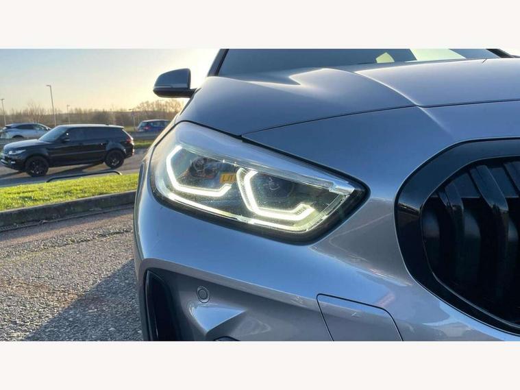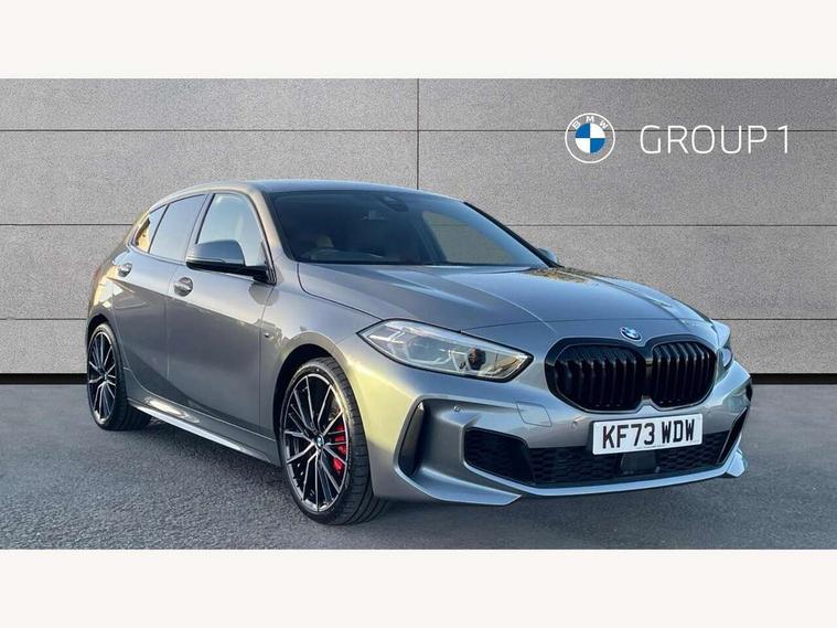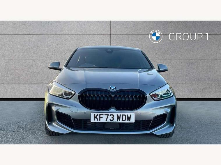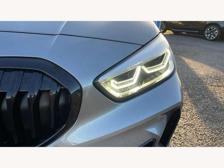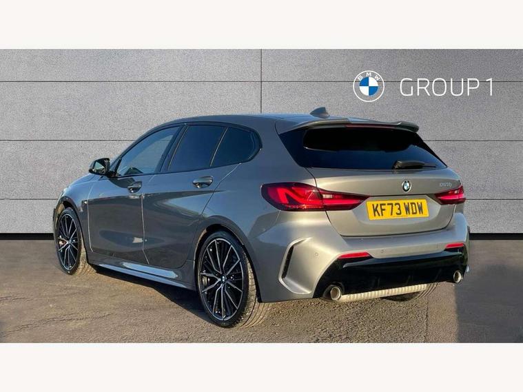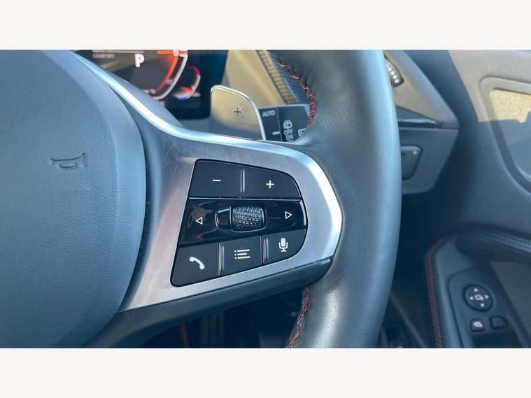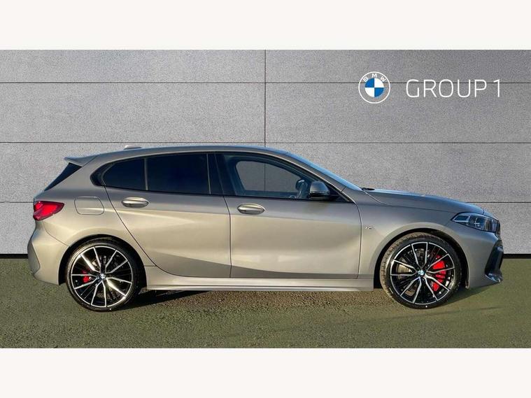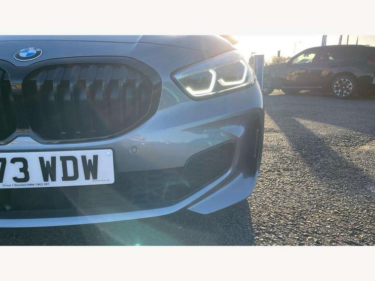 Active guard plus, Attentiveness assist, BMW ConnectedDrive online services, BMW Teleservices, Check Control warning system for monitoring of lights and door/luggage compartment open warning, Cruise control with speed limiter, Eco pro mode, Electric power steering with Servotronic steering optimised at all speed ranges, Front axle single joint with specific axle kinematics to minimise drive influences on steering + provide increased rigidity agile driving behaviour, Integrated owners handbook, Lane departure warning system, Oil sensor for level and grade, On board computer, Optimum shift indicator, Personal Profile, Pull away assistant, Rigidly mounted rear subframe - Multi link construction with separate spring / damper configuration and excellent driving characteristics, Speed limit Info including no-overtaking indicator, Aluminium lightweight construction, Anti roll bar front and rear, Balancer shaft, Double VANOS twin scroll turbocharging system, Drive Performance Control, Eight speed sport automatic transmission with gearshift paddle switches, Electronic differential lock, High precision injection, Larger fuel tank capacity (50 litres), M sport suspension with M128i xDrive specific settings, Petrol Particulate Filter, Twin tube gas filled shock absorbers with degressive characteristic curve, VALVETRONIC engine management, DAB Digital radio, Auto dimming rear view mirror, Automatic headlight beam throw control, Automatic windscreen wipers and automatic headlight, Black chrome tailpipe finishers, BMW individual high gloss shadow line with extended content, Body colour door handles, Body colour mirror caps, Body colour roof trims, Chrome 'M' logo side designation, Chrome kidney grille frame with Satin Aluminium struts, Direction indicator side lights in exterior mirrors, Electrically adjustable exterior mirror with mirror adjustment switch on drivers armrest and aspheric on driver side, convex on passenger side, Fading support, Folding side mirrors with auto dimming/folding wing mirrors with auto dimming, Follow me home headlights, Front and rear bumper system with replaceable deformation elements, Front and rear electric windows with open and close fingertip control, anti trap facility and comfort closing, Front door sill finishers in black plastic with M designation in metallic look, Green tinted heat protection glazing, High gloss shadowline window frame, Recess cover mirror frames and B/C pillar embelisher trim, High level third brake light, Integrated front windscreen with washer jets, Kidney frame and struts in high gloss black extended, LED daytime running lights, LED eyebrow turn indicators, Lightweight engineering, Matt black air guide grilles, Matt black wheel arch trim, Model designation on electric bootlid, Nearside reverse light in rear light cluster, Preparation for high beam assistant, Rear fog lights, Rear side wing doors, Rear window wiper, Shark fin antenna, Trailer stabilisation logic, Visible VIN plate, Welcome lighting, 12V power socket in front centre console with blanking plug, 3 rear seat head restraints, 3 seat bench in 2nd row, Anthracite headlining, Black boot net with lashing eyes, Cargo function on 2nd seat row, Child seat ISOFIX attachment for two outer rear seats and front passenger seat with anchorage points, Conditioned based service, Driver and front passenger backrest net on rear, Driver and front passenger seat heating, Driver side folding compartment in instrument panel, Folding rear clothes hook, Four grab handles integrated in roof lining, Front and rear door pockets with bottle holders, Front and rear side armrest integrated into door trim, Front armrest, Front sports seats, Glove compartment, Height adjustable front head restraints, Luggage compartment for bag hooks on left and right, foldable luggage compartment liner and four lashing eyelets, Manual adjust steering wheel, Multi-function controls for steering wheel, Single front passenger seat, Storage compartment in centre console, Storage compartment in luggage compartment, Stowage of the parcel shelf in luggage compartment trim, Sun visors with vanity mirrors and insert tab, Three spoke M sport design multi function leather steering wheel in unique red stitching, Two front centre console cupholders, Two zone automatic air conditioning, Type C two USB ports in rear centre console, Additional interior lighting pack - 1 Series, BMW live cockpit professional pack- 1 Series, Connected pack professional - 1 Series, Interior lights pack - 1 Series, M Sport exterior styling aerodynamics pack - 1 Series, 2 tone horn, 3 point seatbelts on all seats, front pyrotechnic belt tensioners, stopper and belt force limiters, rear coded belt buckles, Airbags - Front driver/passenger, front and rear curtain head protection, front side, manual deactivation of front passenger airbag, Anti lock braking system (ABS) with brake assist, BMW emergency call, Brake drying, Braking readiness, Child proof locking system in rear door, City braking function, Comfort modes, Cornering brake control, Crash sensor activating of airbags, Unlocking doors, hazard warning lights, interior light, safety battery terminal, Driver and front passenger seat belt security check, Dynamic stability control + (DSC+), Dynamic Traction Control - DTC, Electrically operated hand brake including automatic hold function, Front and rear disc brakes, M Sport brakes with red calipers, M Sport seatbelts, Seatbelt warning, Side impact protection, Tyre pressure monitoring system, Warning triangle and first aid kit, Central locking switch for all doors, fuel filler cap and luggage compartment, Deadlocking function system to all doors, Drive away locking system on all doors and luggage compartment with de-activated in iDrive settings, Locking wheel bolts, Remote control with integrated key with High-gloss Black inlay and M designation and 1 button for open/ close lock, window, open luggage compartment, Start/stop button illuminated in centre console with k