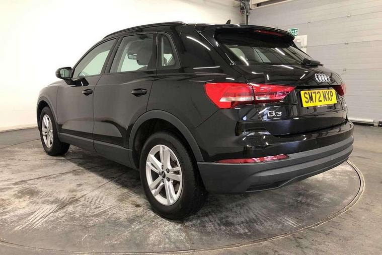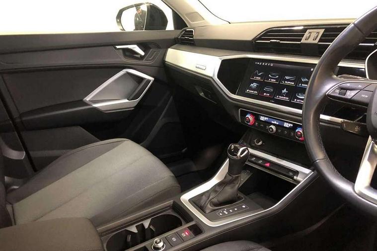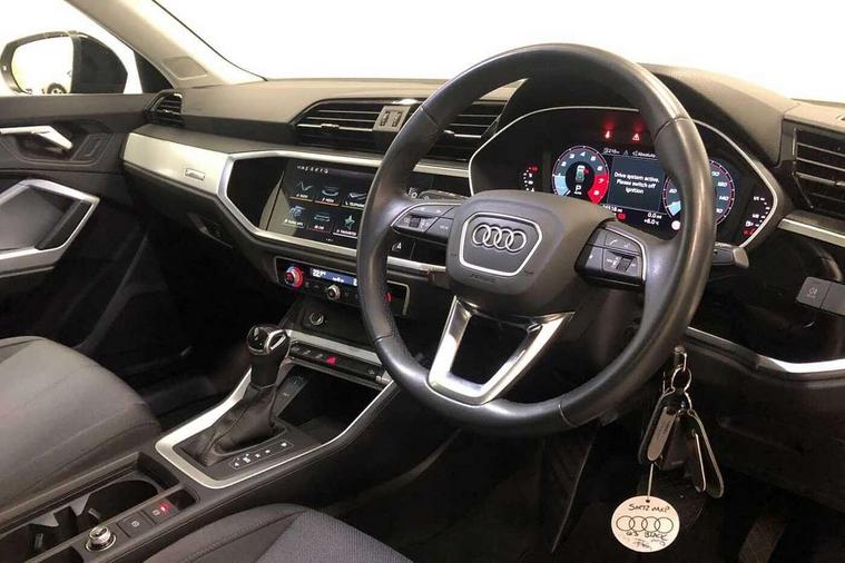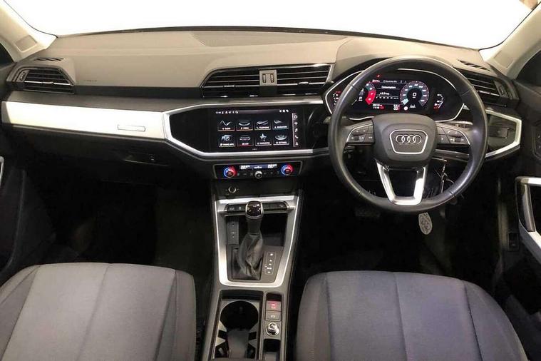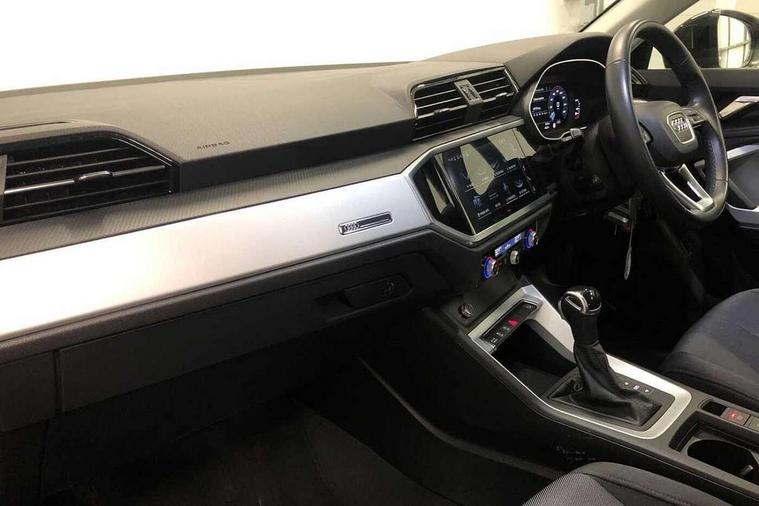 Amazon alexa Integration, Audi drive select, Audi lane departure warning, Audi Virtual Cockpit - 10.25" display, Bluetooth interface, Camera based traffic sign recognition, Legal emergency call, MMI Navigation Plus with high resolution 10.1 inch touchscreen colour display, Power operated tailgate, Progressive steering, Service interval indicator, Smartphone interface includes wireless Apple carplay/Android Auto, Start stop system with recuperation, Voice control system with natural language interaction, Standard suspension, 2 USB-C ports with charge and data functions, 6 passive loudspeakers, DAB digital radio module, Acoustic windscreen, Auto dimming frameless rear view mirror, Black roof rails, Body colour door mirrors, Diffuser in grained anthracite, Electrically folding, adjustable and heated door mirrors with integrated LED side indicators and kerb view function for passenger side, Exterior bumper with wheel arch trims and side sill trims in grained black matt, Front and rear electric windows, Grained radiator protective grille, Halogen rear lights, LED headlights with LED daytime running lights, Rain and light sensors, Rear side wing doors, Rear wiper, Third brake light, Variable front intermittent wipers, 12V socket in rear centre console, 3 seat bench in 2nd row, 3 spoke multi-function leather steering wheel, 40:20:40 folding with manual adjustment for 60:40 forwards/backwards position and backrest angle, Dual zone electronic climate control, Front and rear floor mats, Front and rear headrests, Front and rear roof module including reading lights, Front centre armrest, Glove compartment lighting, Height and reach adjustable steering wheel, ISOFIX child seat mounting for front passenger with airbag deactivation and outer rear seat including top tether attachment point for outer rear seats, Luggage compartment light, Lunar silver cloth headlining, Manual front seats with height adjustment, Single front passenger seat, Stainless steel luggage compartment sill finisher, Non smoking pack - Q3, 3x3 point rear seatbelts, 6 airbags - Driver, front passenger, curtain and side windows, Audi pre-sense front with pedestrain and cyclist recognition, Electrically operated child locks on rear doors, Electromechanical parking brake, Electronic stabilisation control including ABS, ASR and EDL, Front seatbelt reminder, Hill descent control, Hill hold assist, Pre sense basic, Seatbelt monitoring, Tyre pressure warning, Warning triangle and first aid kit, Anti theft alarm, Anti theft wheel bolts, Immobiliser, Remote central locking, Detail dashboard around MMI touch colour display in glass look, black with surround in aluminium look, Micrometallic silver inlay, 17" 5 twin spoke design alloy wheels,