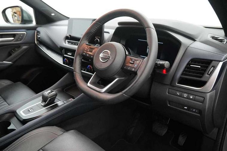 Blind spot warning, Drive modes (sport, normal, eco), Electric speed sensitive power steering, Emergency and breakdown call, Front and rear parking sensors, Full Digital 12.3" TFT Digital Combimeter, Hands free power tailgate, Idle stop/start system, Intelligent Cruise control (ICC), Intelligent driver alert system, Intelligent forward collision warning, Intelligent lane intervention, Lane departure prevention, Lane departure warning system, Moving object detection, Push button starter, Rear cross traffic alert, Traffic sign recognition with legal speed adjustment, Trip computer, 10 Bose speakers - 2 tweeters, 6 high and medium frequency door speakers and 2 in subwoofer, AM/FM audio system with DAB, Bluetooth audio streaming, Bose acoustimass bass box, Digital amplifier, Front USB connections (Type-A and Type-C), Rear USB charging only ports (Type-A and Type-C), Auto dimming rear view mirror, Auto rear wiper when reversing, Body colour mirror caps, Body coloured door handles, Bodyside mouldings, Chrome side window finisher, Door mirror memory, Electric auto folding door mirrors, Electrically adjustable and heated door mirrors with LED turn indicator, Fixed panoramic glass roof with electric sunshade, Follow me home headlights, Intelligent auto headlights, LED daytime running lights, LED signature rear lights, One touch front and rear electric windows with remote opening and closing, Privacy glass, Rear roof spoiler, Rear styling plate, Reverse tilting door mirrors, Roof rails, Shark fin antenna, Splash free rain sensing wipers, Super UV and infrared cut glass, Three blink turn signal, 12v power socket in dashboard and luggage, 2x Rear coat hooks, 3 rear headrests, 4 grab handles, 6 Luggage hooks - 4 on floor, 2 on side, 60/40 split folding rear seat, 8 way electric adjustable driver seat with massage and memory function, 8 way electric adjustable passenger seat with massage and memory function, Ambient lighting around centre console, Ambient lighting in front doors, Centre console storage tray, Chrome interior door handles, Dark headlining, Driver and front passenger sunvisors with illuminated vanity mirrors, Driver seat back pocket, Dual zone automatic climate control with pollen filter, Electric 4-way lumbar support for drivers seat, Electric adjustable 4 way lumbar support for passenger seat, Front centre console and armrest, Front cupholder, Front door with bottle holders, Glovebox with light, Hard trunk cover, Height adjustable front headrests, Leather steering wheel, Luggage board system, Luggage space lighting, Multifunction steering wheel, Passenger seat back pocket, Quilted premium leather upholstery, Rear armrest with 2 cupholders, Rear door bottle holders, Soft PVC kneepad, Steering wheel gearshift paddles, Steering wheel switches, Tilt/telescopic adjustable steering wheel, Two rear isofix child seat anchorage points with top tether, Welcome light and doors with console tray ambient lighting, Connectivity Pack - Qashqai, Heat pack - Qashqai, Tech Pack (ProPILOT + HUD), 3x3 point rear seatbelt pretensioners + load limiters, ABS, ESP, EBD and brake assist, Active brake limited slip, Auto hold function, Child locks on rear doors, Curtain and front side, far side airbags, Driver and passenger airbags, Driver, passenger and 2nd row rear seat belt reminder, Electronic parking brake, Front seatbelt pretensioners + load limiters, Height adjustable front seatbelts, Hill start assist, Intelligent blind spot intervention, Intelligent front emergency braking with pedestrian, cyclist recognition and junction assist, Intelligent rear automatic braking, Tyre pressure monitoring system, Vehicle dynamic control, Advance intelligent key with driver memory storage (seats, mirrors, audio), Engine immobiliser, Remote central door locking with deadlocking, Thatcham Cat.1 alarm, 20" Alloy wheels,