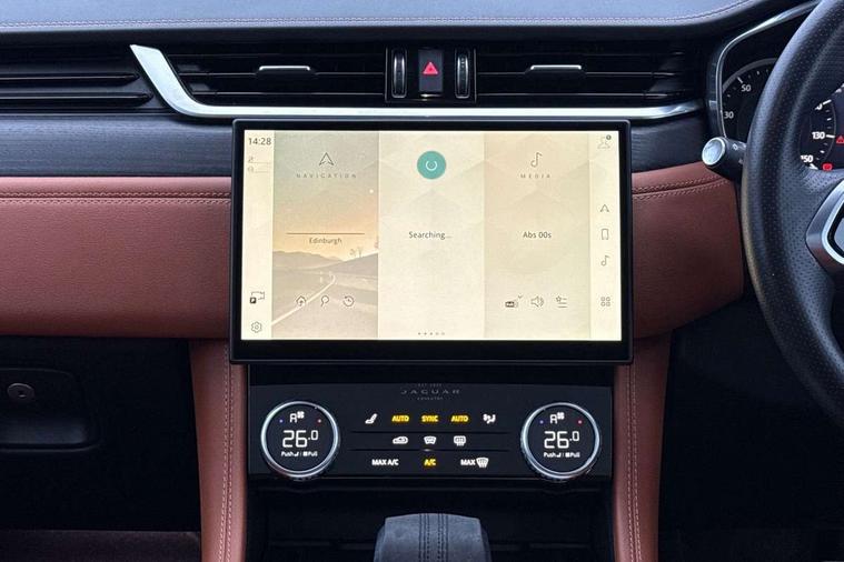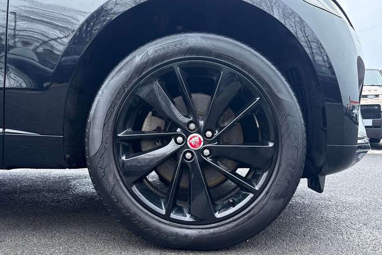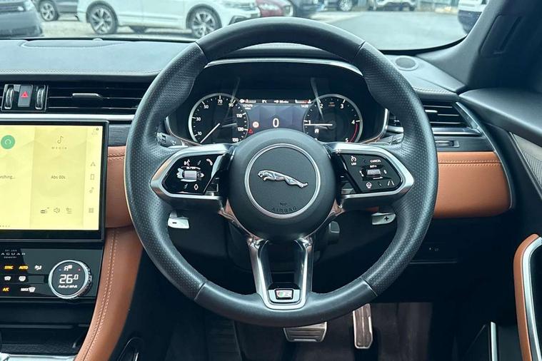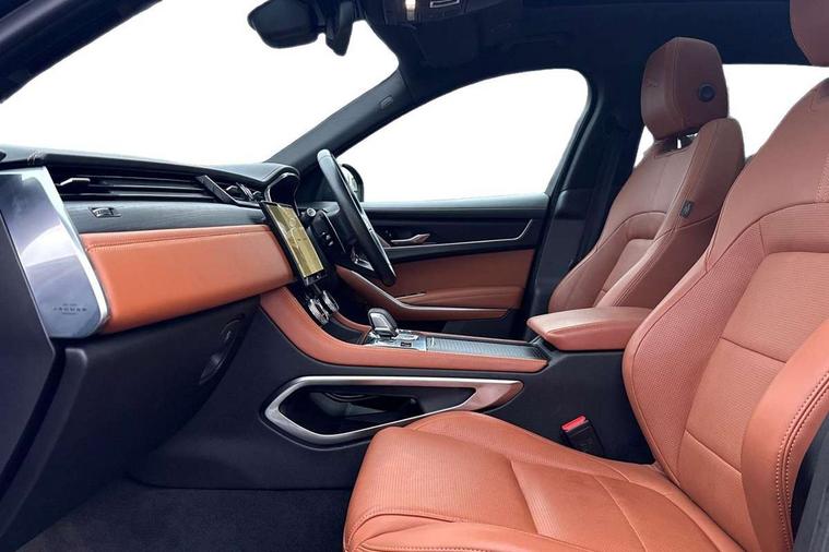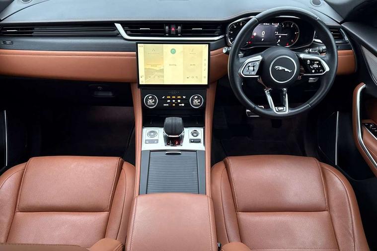 11.4" touchscreen, Android Auto, Apple car play, Bluetooth connectivity, Driver alert system, Driver condition monitor, eCall emergency call system, Eco driving style assistant, Electric power assisted steering, InControl remote, Jaguar Toggle shift selector, Lane departure warning system, Lane keep assist, Outside temperature gauge, Personalisation profile management, Pivi pro connected navigation system with app interface and media storage, Pro services and wifi hotspot, Push button starter, Service interval indicator, Speed proportional steering, Start up sequence with movement in dials and lighting, Traffic sign recognition with adaptive speed limiter, Trip computer, Voice control system, 8 speed automatic transmission, All terrain progress control, All Wheel Drive (AWD), Open differential with torque vectoring by braking, AM/FM radio, Bluetooth streaming, DAB Radio (Digital Audio Broadcasting), Dynamic volume control, InControl apps, InControl protect, iPod integration, 3 flash lane change indicators, Animated directional indicators, Approach Illumination, Auto dimming rear view mirror, Automatic headlights, Electric windows with one touch open/close and anti trap, F-Pace and R Dynamic badge, Gloss black door mirrors, Gloss black roof rails, Green tinted glass, Heated front windscreen + heated washer jets, Heated rear window with timer, Jaguar script and leaper, LED High level third brake light, LED tail lights, Non acoustic front windscreen, Privacy glass, R Dynamic badge on side door, Rain sensor windscreen wipers, Rear fog lights, Rear metal tread plates, Rear side wing doors, Rear wiper, Trailer stability assist, Variable front intermittent wipers, 12V power point front, 3 rear headrests, 3 seat bench in 2nd row, Air distribution speed, Bright metal foot pedals, Centre armrest console, Centre console with side storage, Deletion loadspace storage rails, Door sill tread plates, Fold flat front seats, Front centre armrest with storage compartment, Front door storage space, Glovebox finisher with jaguar script, Heated steering wheel, Hooks in loadspace, Illuminated glovebox, Interior front door handles with separate locking switches, ISOFIX on outer rear seats, Jaguar sense, Luggage tie downs in loadspace, Mist sensing, Multifunction steering wheel, Overhead lighting console, Overhead stowage for sunglasses, Passive front head restraints, Premium cabin lighting, Premium carpet mats, R-Dynamic branded leather steering wheel, Rear air vents, Rear armrest with twin cupholders, Rear centre headrest, Rear door storage space, Reversible boot floor, Satin chrome gearshift paddles, Shopping bag hook, Single front passenger seat, Sunvisors with illuminated vanity mirrors, Twin front cupholders with cover, Black Exterior pack - F Pace R-Dynamic/Sport, Exterior pack - F Pace R-Dynamic, Online Pack with data plan - F-Pace, 355mm front brakes and 325mm rear brakes, 3x3 point rear seatbelts, ABS, All surface progress control (ASPC), Brake pad warning light, DSC - Dynamic Stability Control, Electric parking brake (EPB), Emergency brake assist, Front airbags with passenger seat occupant detector, Front and rear seatbelt reminder, Front side airbags, Full length side window curtain airbag, Hill launch assist, Power operated child locks, Torque vectoring brake, Traction control, Tyre pressure monitoring system, Immobiliser, Keyless Start, Locking wheel nuts, Perimeter alarm, Remote central locking, Valet mode,