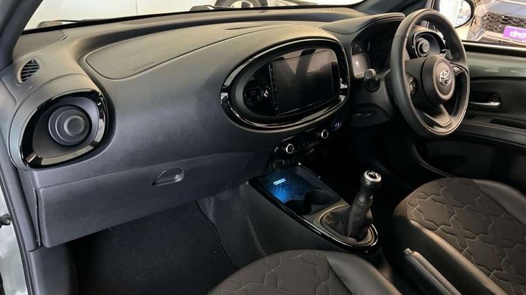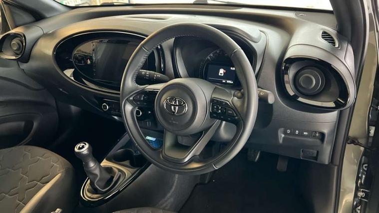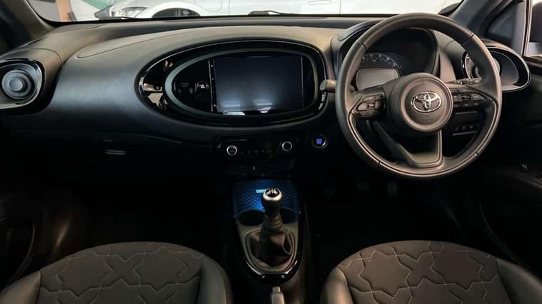 4.2" TFT colour screen, Adjustable speed limiter, Analogue speedometer, Bluetooth connectivity, Digital tachograph, Driver attention alert system, eCall emergency call system, Electric power steering, Front and rear parking sensors with auto brake, Intersection turn assist, Key reminder warning, Noise reduction kit, Pre collision system with emergency steering assist, Remote boot door release on key, Reversing camera with static guide lines, Smart entry and push button start, Speed limit display, Start and stop, Wireless charger, Wireless Smartphone Integration includes Apple CarPlay and Android auto, Vehicle Stability Control (VSC), 4 speakers, 9" HD multimedia display touch screen with Toyota smart connect, DAB digital audio broadcast, USB connector, Auto headlights, Auto wipers, Automatic headlights cut-off, Automatic high beam On/Off switch, Bicycle towing hook, Black fog light surrounds, Black side protection mouldings, Black wheel arch mouldings, Body colour door handles, Body coloured front bumper, Boot door scuff plate, Eclipse black rear bumper, Electric heated door mirrors, Follow me home headlights, Front and rear underruns in silver, Front fog lights, Front power windows, Gloss black door mirrors, Gloss black upper front grille, Headlight cut-off reminder, LED daytime running lights guide, LED front light guide, LED High mounted stop lamp, LED projector headlights, Manual day/night rear view mirror, Manual headlight levelling, Pagoda roof, Power adjustable door mirrors, Power back door, Privacy glass, Rain sensor, Rear combination lights LED bulb type, Rear side wing doors, Rear windscreen defogger, Rear windscreen wiper, Remote hazard lights system, Short antenna, Variable intermittent windscreen wipers, 12v power outlet - front, 2 seat bench in 2nd row, 3 spoke leather steering wheel, 50/50 split folding rear seat, Adhesive roof headlining, Adjustable speed limiter switch on steering wheel, Audio and telephone switches on steering wheel, Auto air conditioning, Black roof lining, Body colour satin anodised insert on steering wheel, Boot light, Centre room light, Chrome interior door handles, Chrome surround on air conditioning buttons, Clean air filter, Console box storage, Floor mats, Front and rear cup holders, Front head rest deco art, Front head restraints, Height adjustable driver seat, Intelligent adaptive cruise control switch on steering wheel, ISOFIX child restraint system on rear seats, Lane departure alert switch on steering wheel, Leather gearshift knob, Light blue ambient lighting in centre console, Manual tilt steering wheel, Manually reclining and sliding driver seat, Manually reclining and sliding front passenger seat, Multimedia switches on steering wheel, Partial synthetic leather upholstery, Pollen filter, Rear door pockets, Rear head restraints, Satin silver insert on gear shift knob, Single compartment glovebox with lights, Single front passenger seat, Soft tonneau cover, Sun visors with mirror on driver and passenger side, Voice recognition switch on steering wheel, Toyota safety sense pack - Aygo X, Anti lock braking system + Electronic brake force distribution, Child safety door lock, Emergency brake light signal (EBS), Hill start assist control (HAC), Passenger airbag on/off switch, Seat belt reminder for front and rear seats, Supplement restraints system (SRS) - 6 airbags, Traction control, Tyre pressure warning system, Immobiliser, Remote power door locks, Black wheel centre caps, Tyre repair kit,