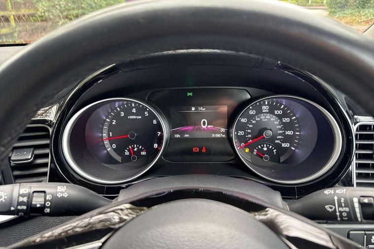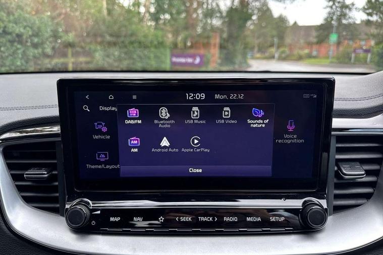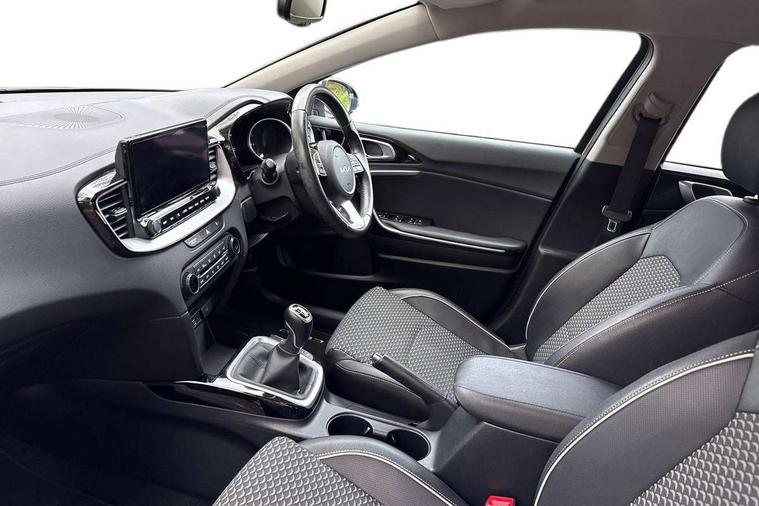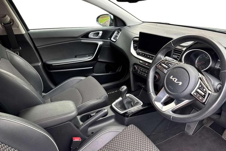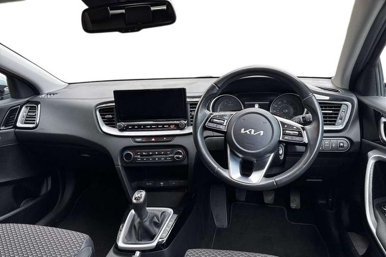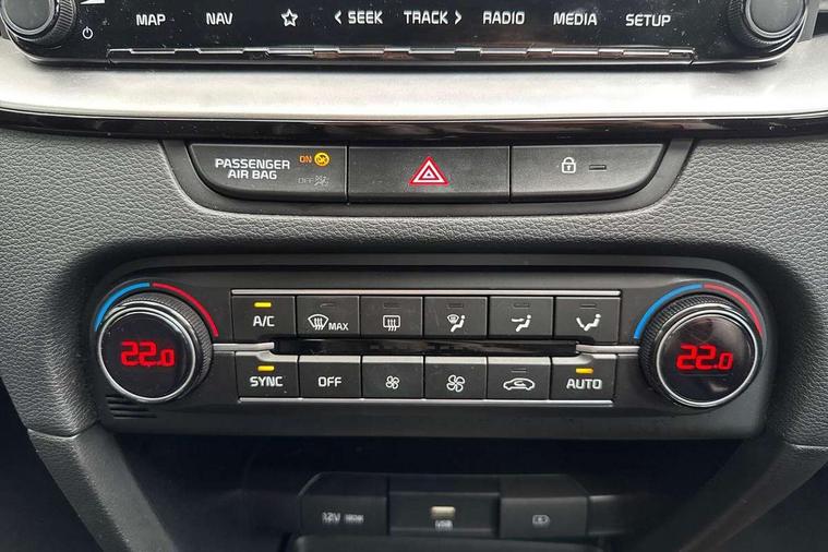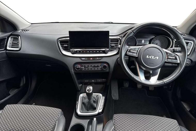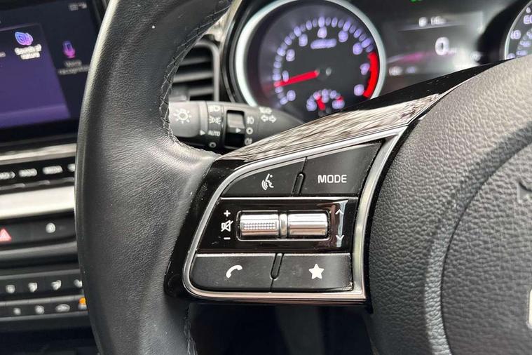 10.25" touchscreen satellite navigation including telematics, 4.2" supervision colour cluster display, Apple car play/Android Auto with voice control, Bluetooth with Voice Recognition & Music Streaming, Cruise control + speed limiter, Driver attention warning, Emergency stop signalling system, Forward Collision-Avoidance Assist (FCA) - City/Pedestrian, Kia connected services featuring TomTom live, Lane Following Assist (LFA), Lane keep assist, Motor driven power steering, Outside temperature gauge, Rear parking sensor, Reversing camera with dynamic guide lines, Service interval indicator, Speed limit information function (SLIF), Trip computer, Intelligent Stop and Go, 6 speaker audio system, DAB Radio with MP3, Illuminated USB ports, Steering wheel mounted controls, USB Fast Charger in Front Centre Console, USB port for connection of a media device, All-round Electric Windows with Front Auto Up & Down Function, Auto dimming rear view mirror, Automatic defog system, Automatic headlights, Body colour bumpers, Body colour door mirrors, Body colour exterior door handles, Body coloured rear spoiler, Chrome window surround, Electric adjustable/heated/folding door mirrors with LED Indicators, Front fog lights, Heated rear window with timer, High beam assist, High gloss black radiator grille, LED daytime running lights, LED High-mounted Brake Light, LED rear lights, Privacy glass (rear side windows and rear screen), Projection headlights with cornering lights, Rain sensing front wipers, Rear wash/wipe, Roof rails, Tinted glass, Wide view drivers door mirror, Windscreen Washer Level Warning, 12V socket in luggage compartment, 3 x passenger assist grips, 40:20:40 Split Folding Rear Seats with Remote Folding, All-round height adjustable headrests, Centre console storage box/armrest, Cloth/faux leather bolsters upholstery, Cupholders in centre console, Cupholders in rear armrest, Dash illumination dimmer switch, Driver & Front Passenger Sunvisors with Vanity Mirror Illumination & Ticket Holder, Driver + front passenger electric lumbar support, Driver's seat height adjuster, Dual Height Luggage Area Floor, Dual zone automatic air conditioning, Faux leather door trim, Front and rear door storage, Front map light with sunglasses case, Front Passenger Seat Height Adjuster, Front seat and rear pockets, Gear shift indicator, Headlining in Light grey, Illuminated ignition key hole, Interior door lock/unlock function, ISOFIX Child seat top tethers and anchor fixings, Leather handbrake, Leather steering wheel and gearshift, Luggage area light, Luggage area parcel shelf, Luggage hooks, Rear centre armrest, Rear coat hooks, Satin chrome interior door handles, Tilt/telescopic adjustable steering wheel, ABS with Electronic Brakeforce Distribution (EBD) and Brake Assist System (BAS), All round 3-point seatbelts, Dual front side airbags, Dual horn, Electronic stability control (ESC) and vehicle stability management (VSM), Front passenger airbag deactivation, Height adjustable front seatbelts, Hill start assist control (HAC), Impact sensing auto door unlocking, Rear door child safety locks, Seatbelt reminder warning, Traction control, Twin curtain airbags, Twin front airbags, Tyre pressure monitoring system, Alarm system, Engine Immobiliser & Deadlocks, Locking wheel nuts, Remote central door locking with fold away key, Speed sensitive auto door locking, Black high gloss front console tray garnish & door trim, Satin Chrome Fascia Trim, 17" alloy wheels, Tyre mobility kit,