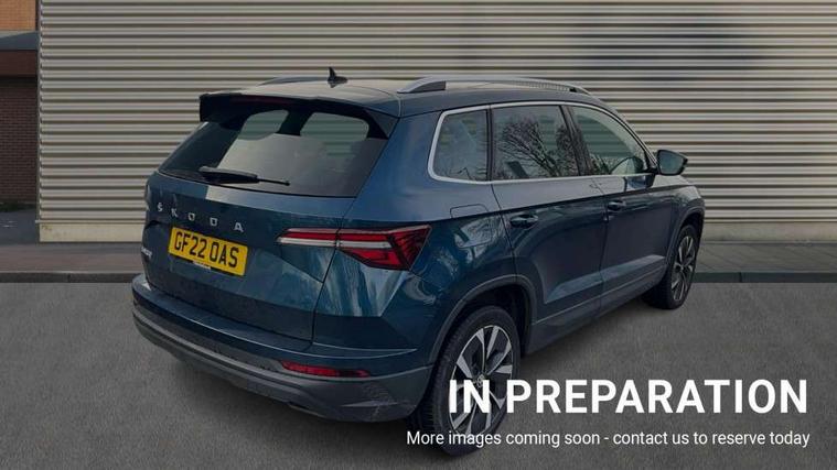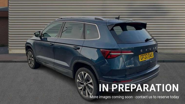 Care connect, Drive mode selector, Driver fatigue sensor, Electro-mechanical PAS, Emergency services call system, Multifunction colour trip computer, Outside temperature gauge, Service interval indicator, SmartLink wireless for Apple and wired for Android, Start/stop system with regenerative braking, USB C Port x 2 in front centre console, 8 Speakers, DAB radio with Bluetooth, USB connection, Acoustic glass, Aero front windscreen wipers with intermittent function, Auto dimming rear view mirror with light and rain sensors, Automatic headlight control system, Black electric window control buttons, Body colour door mirrors and handles, Body coloured bumpers, Electric front and rear windows with child proof lock, Electrically adjustable heated folding and auto dimming door mirrors, Heated rear windscreen, LED daytime running lights, LED Headlights, LED rear lights with high functionality welcome effect and dynamic indicators, Light assistant (coming/leaving home/tunnel light), Privacy glass, Rear side wing doors, Rear spoiler, Rear wiper, Safety reflectors on front doors, Third brake light, 1.5 litre bottle holders in driver and front passenger door panels, 12V socket in boot, 12v socket in front centre armrest with storage compartment and rear air vents, 2 Folding hooks and nets in boot, 2 spoke leather heated multifunction steering wheel, 2 x Tablet holder, 3 rear height adjustable headrests, 3 seat bench in 2nd row, 4 foldable roof handles with rear coat hooks, Black floor carpet, Chrome inner door handles, Decorative door sills with KAROQ badging, Double sided boot floor, Foldable hooks in the boot, Folding tables on the front seat backrests, Front head restraints, Height adjustable driver and passenger seat, Height adjustable front three point seats belts with tensioners, Height/reach adjust steering wheel, Ice scraper, Illuminated and cooled glovebox, Illuminated luggage compartment, Isofix child seat preparation for front passenger seat, Isofix child seat preparation outer rear, Manual lumbar support for front seats, Pen holder, Pollen filter, Rear boot cover, Rear reading lights, Retractable parcel shelf attachable to tailgate, Rubbish bin door, Safety vest holder, Single front passenger seat, Storage box in upper central dashboard closed, Sunvisors with illuminated vanity mirrors, Textile floor mats, Umbrella under passenger seat, VarioFlex seats with standard rear seat release, Chrome roof rails + chrome pack - Karoq, Parking pack - Karoq, Airbags - Front side, head, knee and curtain, Automatic door unlocking in case of crash, Automatic fuel cut off in case of crash, Child locks on rear doors, Driver airbag, Electronic parking brake with auto hold function, Emergency rear braking signal, ESC including ABS, MSR, ASR, EDS, HBA, DSR, RBS, MKB and traction control, Front assist radar scanning of the space in front of the car with automatic braking, Hill hold control, Passenger airbag with switch-off function, Pedestrian monitor, Seatbelt reminder signalisation and pretensioner for all seats, Three point seatbelts rear, Two tone horn, Tyre pressure display, Tyre pressure monitor, Alarm with interior monitoring, back up horn and tilt sensor with safe function, Electronic engine immobiliser, Keyless entry and start/stop system with SAFE system, Remote central locking with 2 remote folding keys, Chrome framed air vents, 18" Miran alloy wheels in black, Anti-theft wheel bolts protection, Storage on wheel cover,
