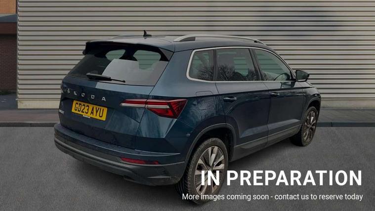 8" Digital display, Care connect, Driver fatigue sensor, Emergency services call system, Outside temperature gauge, Service interval indicator, SmartLink wireless for Apple and wired for Android, Start/stop system with regenerative braking, USB C Port x 2 in front centre console, 8 Speakers, DAB radio with Bluetooth, USB connection, Acoustic glass, Aero front windscreen wipers with intermittent function, Auto dimming rear view mirror with light and rain sensors, Black electric window control buttons, Body colour door mirrors and handles, Dynamic headlight range control with cornering light function, Electric front and rear windows with child proof lock, Heated rear windscreen, LED daytime running lights, LED rear lights with high functionality welcome effect and dynamic indicators, Light assistant (coming/leaving home/tunnel light), Plastic scuff plates, Privacy glass, Rear side wing doors, Rear spoiler, Rear window wiper with washer system and intermittent control, Safety reflectors on front doors, 1.5 litre bottle holders in driver and front passenger door panels, 12V socket in boot, 12v socket in front centre armrest with storage compartment and rear air vents, 2 spoke leather heated multifunction steering wheel with DSG paddles, 2 x Tablet holder, 3 rear height adjustable headrests, 3 seat bench in 2nd row, 4 foldable roof handles with rear coat hooks, Black floor carpet, Chrome inner door handles, Decorative door sills with KAROQ badging, Double sided boot floor, Foldable hooks in the boot, Front head restraints, Height adjustable front three point seats belts with tensioners, Height/reach adjust steering wheel, Ice scraper, Illuminated glovebox, Illuminated luggage compartment, Isofix child seat preparation for front passenger seat, Isofix child seat preparation outer rear, Manual lumbar support for front seats, Pen holder, Pollen filter, Rear boot cover, Rear reading lights, Rubbish bin door, Safety vest holder, Single front passenger seat, Storage box in upper central dashboard closed, Sunvisors with illuminated vanity mirrors, Textile floor mats, Ticket holder, VarioFlex seats with standard rear seat release, Boot pack - Karoq, Chrome roof rails + chrome pack - Karoq, Parking pack - Karoq, Automatic door unlocking in case of crash, Automatic fuel cut off in case of crash, Child locks on rear doors, Driver airbag, Electronic parking brake with auto hold function, Emergency rear braking signal, ESC including ABS, MSR, ASR, EDS, HBA, DSR, RBS, MKB and traction control, Front side airbags, Hill hold control, Knee airbags, Passenger airbag with switch-off function, Pedestrian monitor, Seatbelt reminder signalisation and pretensioner for all seats, Three point seatbelts rear, Two tone horn, Tyre pressure display, Tyre pressure monitor, Alarm with interior monitoring, back up horn and tilt sensor with safe function, Electronic engine immobiliser, Keyless entry and start/stop, Remote central locking with 2 remote folding keys, Chrome framed air vents, 18" Procyon silver alloy wheels with anthracite aero inserts, Anti-theft wheel bolts protection, Storage on wheel cover, Tool kit,