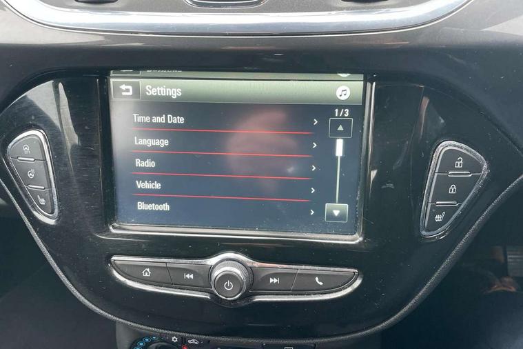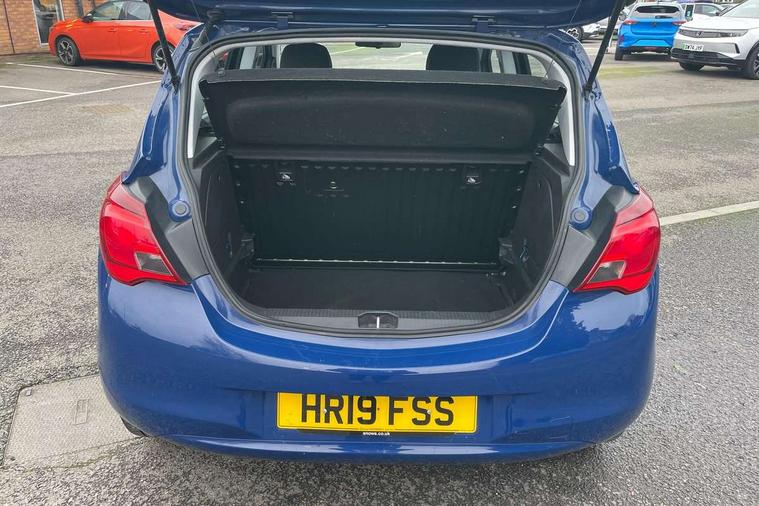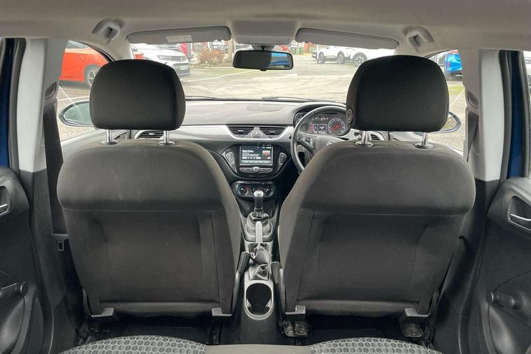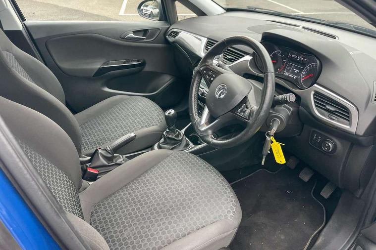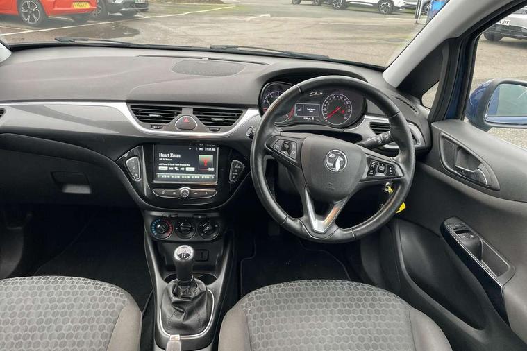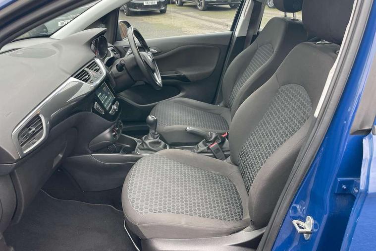 Apple car play/Android Auto, Central facia display, Cruise control + speed limiter, Digital fuel gauge with low fuel warning light, Digital water temperature gauge, Electric speed sensitive power steering, Exterior temperature gauge, Lights on audible warning, Rev counter, Service indicator, Speed warning indicator, Speedometer, Trip computer, White graphics on black background, Front anti roll bar, Steering wheel mounted audio/cruise controls, Black foil on B-pillars, Body colour bumpers, Body colour door handles, Body coloured door mirrors, Chrome front grille, Dipping rear view mirror, Door to door illumination, Electric adjustable/manual folding heated door mirrors (wide angle on driver's side), Electric headlight beam leveling, Electrically operated front windows with safety auto reverse/one touch facility, Front fog lights with black surround, Halogen headlights with halogen signature daytime running lights, Hazard warning lamps, Headlamp levelling, Heated rear window, Heated windscreen, High level LED centre brake light, Intermittent rear wash/wipe, Laminated windscreen, Rear fog lights, Rear wiper, Side window demist vents, Two speed windscreen wipers with variable intermittent wipe, Welcome lighting, Windscreen demist vents, 12V electrical accessory socket in front, 3 spoke steering wheel, Anti submarining ramps in all seats, Centre console with cupholders, Chrome gear knob, Chrome interior door handles, Cloth upholstery, Comfort front seats, Driver's and front passenger's sunvisors, Driver's and front passenger's tiltable assist handles, Driver's and passenger's vanity mirrors with flip up cover, Driver's vanity mirror, Four adjustable facia vents, Front courtesy lights, Front door pockets, Front map reading lights, Front seat belt pre-tensioners with load limiters, Glovebox with lid, Grab handles, Height adjustable driver's seat, Height adjustable front headrests, Height adjustable rear head restraints with adjustable backrest, Illuminated luggage compartment, Instrument panel light dimmer, Interior tailgate handles, Isofix child seat mounting points on outer rear seats, Load restraining lashing points, Luggage compartment cover, Multi function steering wheel, Passenger make up mirror, Pollen filter, Reach + rake adjustable steering column, Rear courtesy lights, Rear door pockets, Rear reading lights, Reclining front seats, Storage box on driver's side lower facia, Stowage facility for luggage compartment cover behind rear seats, Twin gas assisted tailgate struts, Sight and light Pack - Corsa, Winter pack - Corsa, Anti-lock braking system (ABS), Brake assist function, Electronic brake force distribution, Electronic Stability Programme, Energy absorbing steering column, Front and rear seatbelt reminder, Front and rear seatbelt unfastened audible warning and warning light, Front seatbelt force limiters, Gas pressure dampers, Height adjustable front seatbelts, Hill start assist, Manual passenger airbag deactivation function, Pedal release system, Rear child proof door locks, Reinforced passenger safety cell, Side impact protection beams, Six airbags - Driver's dual stage airbag/front passenger's dual stage airbag/front seat side impact airbags/full size curtain airbags, Three 3 point rear seatbelts, Three inertia reel lap/diagonal seatbelts, Traction control, Tyre pressure monitoring system, Electronically protected audio, Engine Immobiliser & Deadlocks, Key left in ignition audible warning, Locking wheel bolts, Remote control central locking, Visible vehicle identification number, Rhutenium facia with chrome effect inserts, Low rolling resistance tyres,