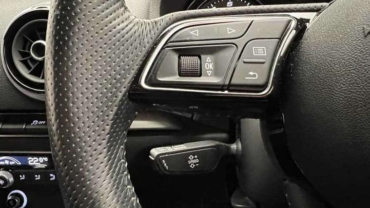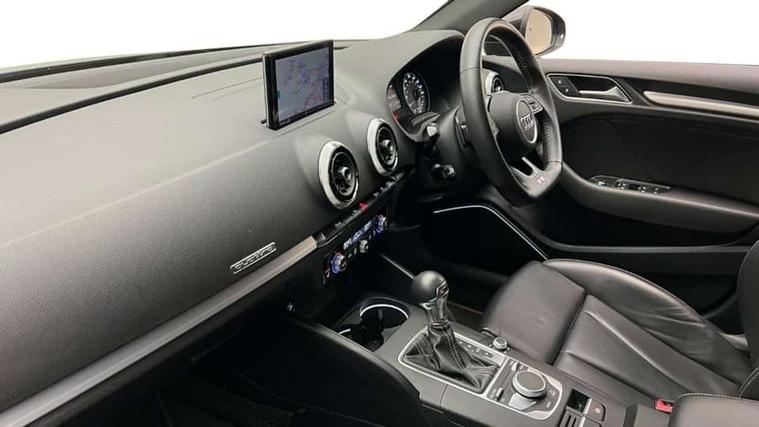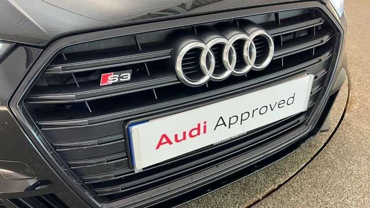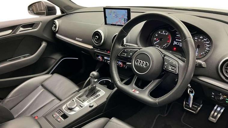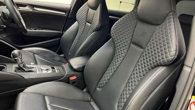 Audi connect, Audi drive select, Audi smartphone interface, Colour driver's information system display, HDD satellite navigation system radio single CD/DVD player MMI control system, Mobile telephone preparation - bluetooth interface, Progressive power assisted steering, Service interval indicator, Speed limit display, Voice control system, S sports suspension, 2 USB ports, Audi music interface, Auxiliary input socket, Bang + Olufsen advanced sound system, CD player, DAB Digital radio, MMI radio plus with 7" colour MMI screen and MMI controller, Auto dimming rear view mirror with light and rain sensors, Black door mirrors, Black window surrounds, Body colour bumpers with black insert, Body colour roof spoiler, Electric front windows, Electric operated/heated door mirrors, Electric rear windows, Headlight washers, Heated windscreen washer jets, LED daytime running lights, Matt black radiator grille, Platinum grey radiator grille with double chrome bars, Privacy glass, Rear wiper, S body styling, Twin oval chrome trimmed exhaust tailpipes, 3 adjustable rear headrests, 3 spoke flat bottomed multi-function leather steering wheel, 4 lashing points to secure luggage, Adjustable front armrest, Dual zone electronic climate control, Front and rear interior lights with delay, Front passenger seat isofix location point, Front/rear floor mats, Heated front seats, Height/depth adjustable steering column, Illuminated glovebox, ISOFIX child seat preparation+airbag deactivation, Jack and tool kit, Rock grey headlining, Stainless steel pedals, Steering wheel gearshift paddles, Storage compartment in centre console, Storage compartment under front seats, Storage compartments in doors, Black styling pack - A3/S3, LED interior light pack - A3/RS3, Non smoking pack - A3, Storage and luggage pack - A3/RS3, 3 point seatbelts on all seats, ABS/EBD, Active bonnet, Active front headrests, ASR, Curtain airbags, Driver and passenger side airbags, Driver/Front Passenger airbags, Drivers knee airbag, EDL, Electromechanical parking brake, ESC - Electronic Stability Control + traction control, Front passenger airbag deactivation, Hill hold assist, Manual rear child locks, Multi-Collision braking, Seatbelt warning, Tyre pressure warning, Warning triangle and first aid kit, Anti theft alarm, Anti-theft wheel bolts, Remote control central locking, Thatcham category 1 alarm + immobiliser, Aluminium air vent surrounds, Aluminium trim elements, Matt brushed aluminium inlays, Space saver spare wheel,