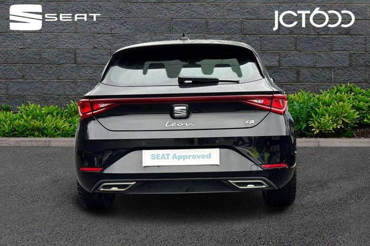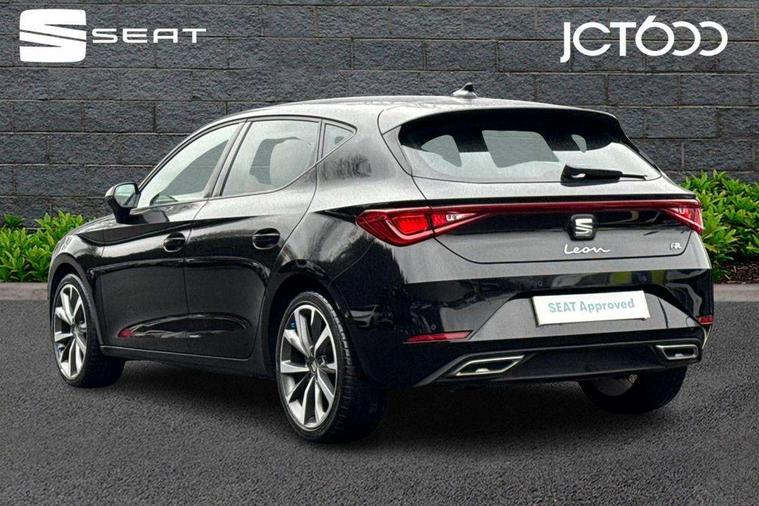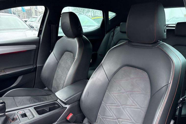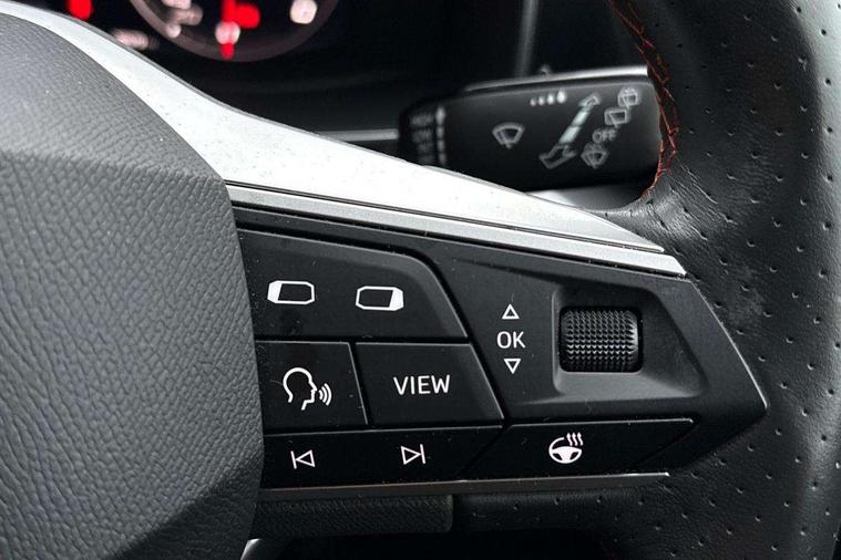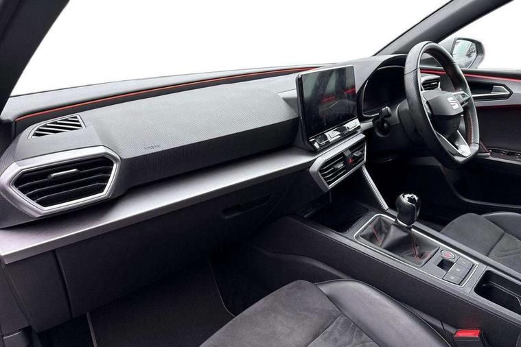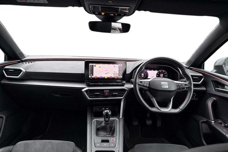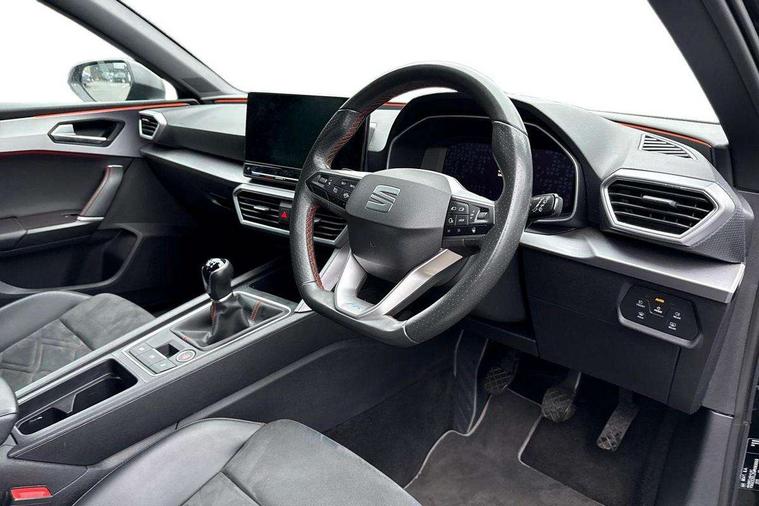 Digital cockpit, Four x USB Type C ports, Front assist with forward collision warning braking reaction to vehicles, pedestrians and cyclists, Full link smartphone integration with Mirror Link, wireless Apple CarPlay and wired Google Android Auto, Lane assist, Lockable tailgate, Park assist (inc front/rear parking sensors), Power assisted speed sensitive electro-mechanical steering, RPM, trip computer, outside temp gauge, instrument light brightness, low fuel warning light, lights on reminder, gearshift indicator, SEAT drive profile with 4 modes (Eco/Normal/Sport/Individual), throttle response, Service interval indicator, Start/stop system with regenerative braking, Sports suspension, XDS electronic differential lock and dynamic traction support, 7 speakers, Auxiliary input socket, Auto dimming rear view mirror, Body colour door handles, Body coloured bumpers, Dark tinted rear windows, Door mirror LED indicator lights, Electric adjustable/heated/folding door mirrors with memory, Electric front/rear windows, FR sports bumper, Illuminated front door sill, LED front fog lamps with cornering function, LED headlights and tail lights with dynamic turn signals, welcome light silhouette from exterior mirrors and dynamic headlight range control, LED rear fog lamp, Rain sensing wipers, Rear wash/wipe, Separate daytime running light with automatic headlight control and coming home feature, 12v power point in centre console, 60/40 split rear bench seat with armrest, Ambient lighting with glovebox, footwell and single monocolour, Black headlining, Dust/pollen filter, Electric driver lumbar support + passenger manual lumbar support, Folding boot cover, Front and rear height adjustable headrests, Front and rear reading lights X 4, Front centre armrest, Front seatback storage pockets, Heated front seats, Heated leather steering wheel with leather gearstick, Height/reach adjust steering wheel, ISOFIX points in outer rear seats with top tether anchorage points, Luggage tie-down hooks, Microsuede cloth upholstery, Power driver seat with memory and manual height adjustable passenger seat, Sunvisors with covered illuminated mirror, Three zone climate control, Wraparound lighting, Media system plus with navigation - Leon, 3 point seatbelts on all rear seats, ABS, Brake control system - ESC and brake booster, Child proof door locks, Driver and front passenger airbags with front passenger airbag de-activation, front side and curtain airbags, Electronic parking brake, Extended safety system - seat belt tensioner, window closure and hazard lights, Hill hold control, Rear disc brakes, Seat belt reminder for front and rear seats, Tiredness recognition system, driver alert system, Tyre pressure monitoring system, Anti theft alarm system with interior monitoring in cab, backup horn and towing protection, KESSY Go (Keyless start), Locking wheel bolts, Wireless phone charging, Chrome interior detailing, 18" Performance machined alloy wheels with 92Y tyres, Tool kit,