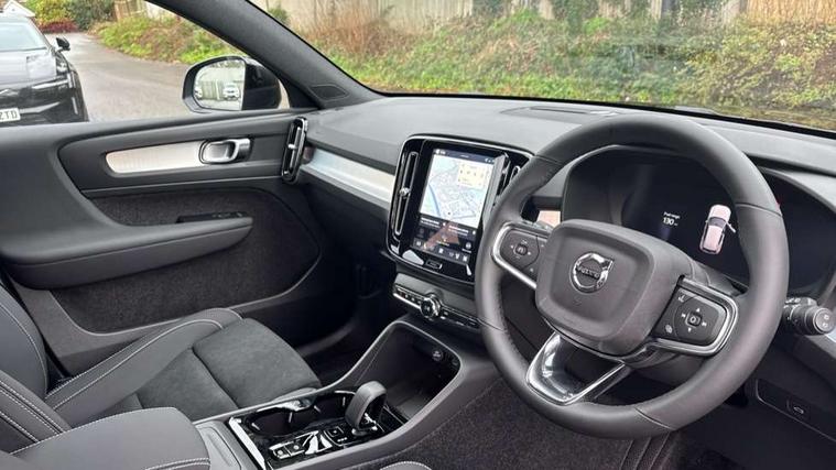 12.3" Progressive Driver Display, 9" centre console portrait touch screen, Adjustable steering wheel force, Android auto (Wired), Apple carplay (wired), Bluetooth handsfree system, Driver alert control, Driver assistance (pilot assist and adaptive cruise control), Driver awareness - Blind spot information system with steer assist, cross traffic alert with autobrake and rear collision warning and mitigation, E-call, Front and rear parking sensors, Front park assist, Google automotive services - Enabled entertainment apps, navigation with google maps, voice recognition with google assistant, Hands free power tailgate, Intelligent speed assistance, Lane keeping aid, Oncoming Lane Mitigation, Speed sensitive steering, Volvo cars services with app - Driving journal, emergency and breakdown call, engine remote start, remote door locking/unlocking and vehicle dashboard, Wireless/Inductive Mobile Phone Charging, Automatic transmission with start/stop and manual change functions, Dynamic chassis, DAB Digital radio, Steering wheel mounted remote controls, Adaptive brake lights with high level LED brake lights, Auto dimming feature for exterior door mirrors, Auto dimming interior mirror, Auto folding and heated power door mirrors, Automatic headlamp levelling, Automatic LED Headlights + Active high beam incorporating daytime running lights, Front aluminium tread plates, Front and rear electric windows, High gloss black front and rear skid plate, High gloss black front bumper deco, High gloss black mesh front grille with high gloss black surround, High gloss black window trim, Home safe and approach lighting, Integrated roof rails in high gloss black, LED front fog lights, Puddle lights, Rain sensor with automatic windscreen wiper activation, Rear side wing doors, Rear wiper, Roof antenna, Roof spoiler, Visible VIN plate, 12V socket in front tunnel console and luggage compartment, 2-Zone electronic climate control with CleanZone air quality system and pollen filter, 3 seat bench in 2nd row, 3 Spoke tailored steering wheel with chrome trim, 60/40 versatile split folding rear seat, Centre console cupholders and storage, Charcoal carpet and floor mats, Charcoal headlining, Connect suede textile/microtech upholstery, Flexible load floor and grocery bag holder, Front headrests, Front seat cushion extensions, Glovebox bag hook, Heated front seats, Height adjustable passenger seat, Height/reach adjustable steering column, High gloss centre tunnel deco, High level illumination - Front door pocket, front side step (under door), tailgate, instrument panel, front door inlay, rear courtesy&reading lights, Integrated waste bin, Isofix attachments on outer rear seats, Load cover, Load protection net, Mid level illumination - Front footwell, luggage & glovebox compartment, front cabin courtesy & reading lights, illuminated vanity mirrors+ticket holder, Multi directional lumbar support for driver and passenger seat, Power driver seat with memory + exterior mirrors memory, Rear armrest with cupholders, Rear headrests, Single front passenger seat, Underfloor luggage compartment storage, Climate pack without heated front seats - XC40, 3x3 point rear seatbelts, City safety with steering support with Pedestrian + cyclist + front collision warning with full auto brake and rear auto brake, Driver and passenger airbags, Drivers knee airbag, Electronic parking brake with auto hold, First aid kit, Front and outer rear seatbelt reminder and pretensioners, Front seats SIPS airbags, Hill descent control - Off-road drive mode, Hill start assist, IC (Inflatable Curtains) - Full Length, Passenger airbag cut-off device, Power child locks on rear doors, Road sign information display, Run off Road Protection, SIPS (Side Impact Protection System), Slippery road and hazard light alert, Stability and Traction Control with Spin control, Engine Drag Control and Corner Traction Control, Tyre pressure monitoring system, Vehicle deceleration control with Anti-lock Brake System, Electronic Brake Distribution and Emergency Brake Assist, Warning triangle, WHIPS whiplash protection system - front, 2 x Key integrated remote control central locking including with deadlocking system and auto open/close windows, Anti-theft alarm including immobiliser/volume sensor + level sensor, Keyless drive includes keyless entry and keyless start, Locking wheel nuts,