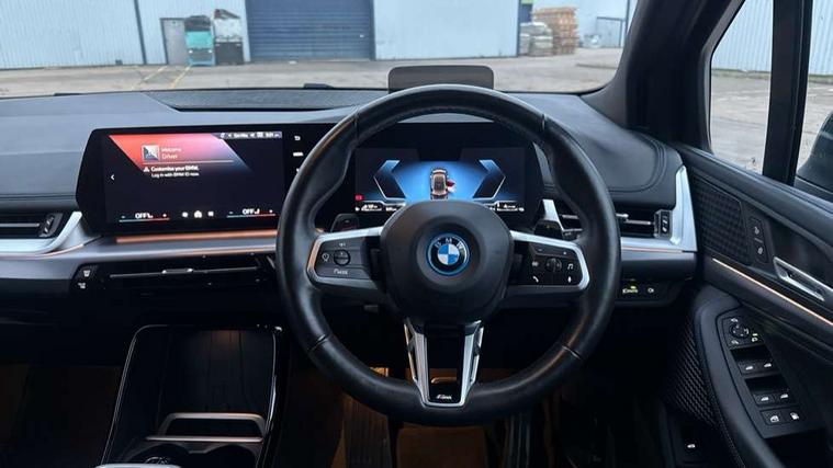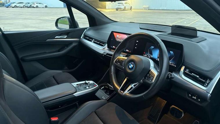 Active Guard, Attentiveness assist, Automatic powered tailgate, Automatic start/stop function, BMW Online services, BMW Operating system 9 with BMW Maps, real-time traffic information, in-car experiences, remote services and smartphone integration, BMW Teleservices, Brake pad wear indicator in front and rear, Condition based service, ConnectedDrive Services, Drive off assistant, Flat air vents on instrument panel in high gloss black, adjustable slats with elements in pearl chrome, iDrive controller, Instrument cluster with speedometer with miles per hour read out, tachometer and fuel gauge, Language version English, On board computer - average speed+fuel consumption, service interval, clock/date, odometer/trip meter, outside temperature display and ice warning, Parking assistant with active park distance control, reversing assistant, lateral parking aid and rear view camera, Servotronic variable electric power steering (EPS), Widescreen display, Wireless charging, 45 Litre fuel tank, Drive performance control with ECO PRO comfort + sport mode, eDrive exterior sound, Gear selector switch with toggle operation, M Adaptive suspension, Mode 3 charging cable, Petrol Particulate Filter, Steptronic transmission with double clutch and gear shift paddles, 2x USB Type C ports in front centre console for charging and data transfer, 2x USB Type C ports in rear centre console for charging, DAB Digital radio, Welcome sound upon opening of the front driver or passenger door, Air inlet middle part on front apron in lines specific design with trim strip in satinised aluminium, Automatic headlights, Black rear bumper trim strip, BMW emblem, engine compartment lid and tailgate, Body colour roof mouldings, Body coloured door mirror caps, Contoured rear spoiler in vehicle colour with side aeroblades in black high-gloss, Driver side exterior mirror lighting with BMW logo projection, Dynamic brake lights, Electric adjustable heated door mirrors, Electric windows - front and rear, with open/close fingertip control, anti-trap facility and comfort closing, Folding door handles integrated flush with surface, Front and rear windscreen wipers with heated front washer nozzles, Front bumper cover with independent design in body colour with inserts in black high gloss, Front bumper design elements in satinised aluminium, Front door sill finishers aluminium inserts with M inscription, Front entry sills with aluminium inserts + BMW inscription, Front oramental grille with radiator grille bars in satinised aluminium, Heated rear window, Hidden exhaust pipe, High gloss shadow line, Home light, Key with M identification, LED Daytime running lights and parking lights with turn indicators, LED number plate light, LED third brake light in rear spoiler, M identification on sides, Manual headlight range control, Model inscription on right tailgate, Rain sensor, Rear bumper cover with independent design in body colour with inserts in black high gloss, Rear side wing doors, Shark fin antenna, Side sill covers with independent design in Body colour, Trailer stabilisation logic, Trims on front and rear bumper covers colour-coordinated with side window graphic, Visible VIN plate, Welcome lighting, Windscreen washer nozzle for rear view camera, 12V power socket in luggage compartment and front centre console, 12V socket in right side trim panel, 2 bag hooks in luggage compartment, 2 front reading lights, 2 open cup holders in front centre console, 3 seat bench in 2nd row, 40:20:40 split folding rear seats with backrest, Ambient lighting front and rear, Automatic two zone climate control air conditioning, Bottle trays in all doors, Child seat ISOFIX attachment for two outer rear seats and front passenger seat with anchorage points, Driver and front passenger sports seats, Embellishers on steering wheel spokes in pearl chrome, Four grab handles integrated in roof lining, Front and rear door pockets, Front and rear footwell lighting, Front and rear side armrest integrated into door trim, Front centre console storage compartment, Front door exit lights, Front head restraints, Glovebox with light, Heated front seats, Height adjustable 3 rear head restraints, Interior door handle recess light on all doors, Luggage compartment lighting, M Anthracite headlining, M specific floor mats, M sport leather steering wheel, Manual adjustment of seat height, fore/aft position, seat depth, backrest tilt and head restraint height, Map pockets, Mechanical rear seats with fore/aft adjustment, Middle centre console storage compartment, Multi-function controls for steering wheel, One piece parcel shelf opens together with tailgate and removable, Rear cloth hooks, Single front passenger seat, Stainless steel pedals, Steering wheel column manual adjustment, Storage compartment lighting in centre console and storage tray in centre stack, Storage compartment net in left side trim panel, Storage compartment with folding cover under centre console armrest cushion, Sunvisors with illuminated vanity mirrors, 3 point seatbelts on all seats, front pyrotechnic belt tensioners, stopper and belt force limiters, rear coded belt buckles, Acoustic protection for pedestrians, Airbag - Front driver and passenger, front and rear head, front side, curtain head protection, manual deactivation of front passenger airbag possible, Anti lock braking system (ABS) with brake assist, Automatic hold function, BMW emergency call, Brake drying, Braking readiness, Child proof locking system in rear door, Cornering brake control, Crash Sensor - activates hazard/interior lighting + unlocks doors, DSC - Dynamic Stability Control, Dynamic brake control, Dynamic Traction Control - DTC, Electromechanical parking brake, Energy recovery system, Front disc brakes, Integrated braking system, PC iBrake PostCrash approach control warning with light braking function, Rear disc brakes, Tyre pressure monitoring system, Warning triangle and first aid kit, Anti theft alarm system, Closing system with cent