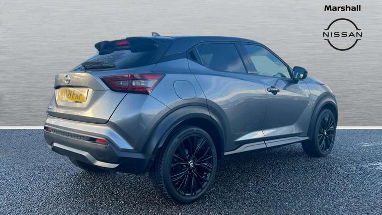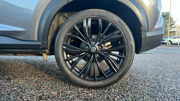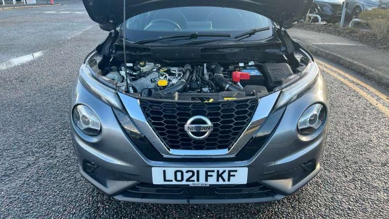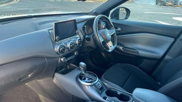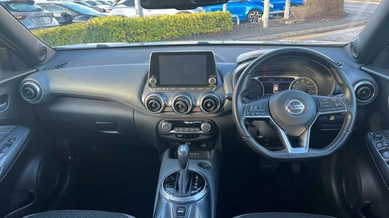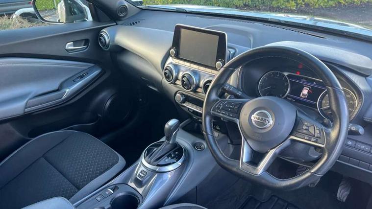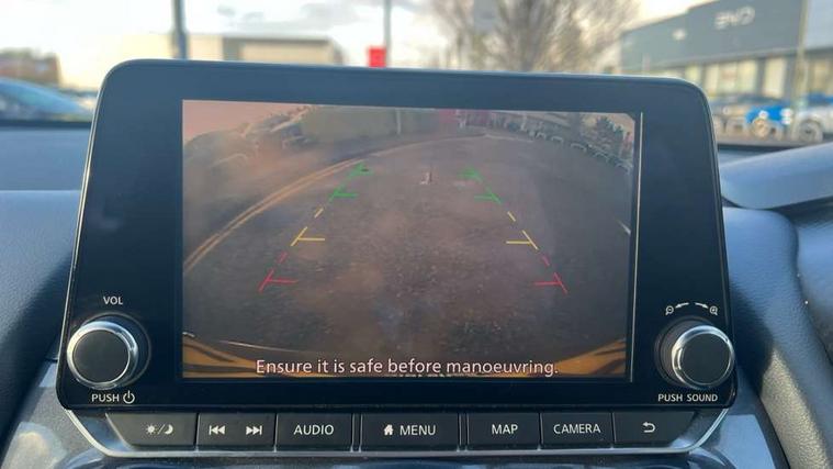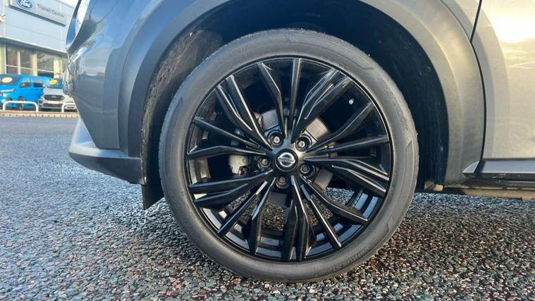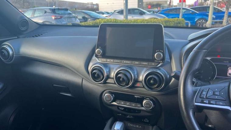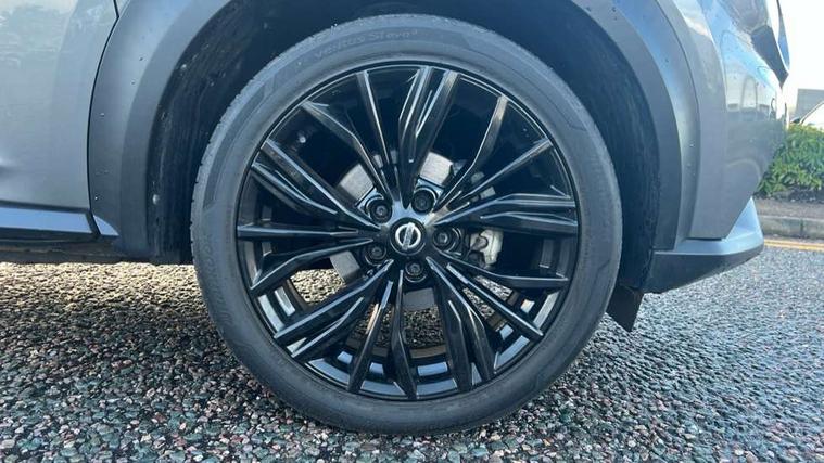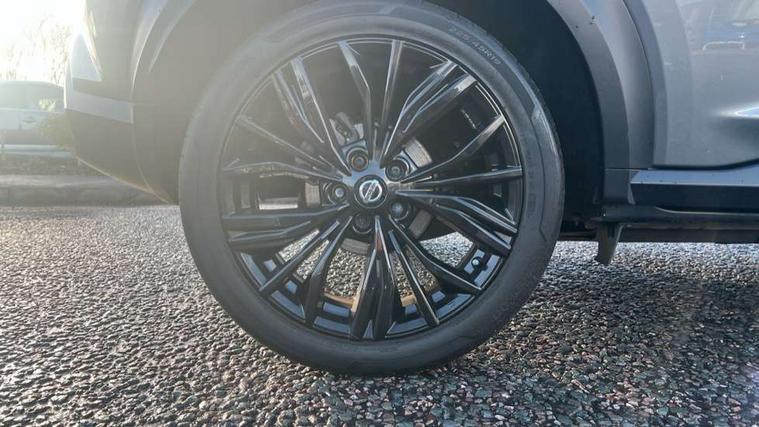 7" full colour TFT screen combimeter, 8" infotainment colour display with touch screen, Apple CarPlay and Google Android auto, Cruise control + speed limiter, Drive modes select (Eco, normal and sport), Emergency and breakdown call, Front parking sensor, Idle start/stop system, Intelligent lane intervention, Lane departure warning system, Nissan connect nav with TomTom traffic, Nissan connect services and Wifi connection, Outside temperature sensor, Power Steering, Rear parking sensor, Rear view camera, Traffic sign recognition, Trip computer, Gasoline particulate filter, 6 speakers, Bluetooth system, USB, Aux-in and 12V socket, DAB Digital radio, Rear console USB port, Auto dimming interior rear view mirror, Automatic hazard signal with emergency stop signal, Body colour bumpers, Body colour door handles, Electrically adjustable door mirrors with integrated indicators, Follow me home headlights, Front and rear electric window with one touch driver window, Front bumper, rear bumper and side skirts with Pearl Black inserts, Heated and auto folding door mirrors, High beam assist, LED daytime running lights, LED front fog lights, LED headlamps, LED rear fog lamp, LED rear lamps, Pearl black door mirrors, Rain sensor windscreen wipers, Rear privacy glass, Rear spoiler, Rear wiper, Shark fin roof antenna in Pearl Black, Textured stickers on door mirrors and roof, Three blink turn signal, 3 height adjustable rear headrests, 60/40 split folding rear seat, Automatic climate control, Card holder on driver sunvisor, Cloth upholstery, Driver and passenger sliding and reclining seats, Driver side rear coat hanger, Driver/passenger sunvisors and vanity mirrors, Front and rear cabin lighting, Front armrest, Front door pockets with bottle holders, Front head restraints, Front/rear passenger grab handles, Grey synthetic leather kneepad, Height adjustable driver's seat, Internal chrome door handles, Leather gearshift knob, Leather steering wheel, Luggage board, Luggage space lighting, Monoform sporty seats, Multifunction steering wheel, Rear door bottle holders, Steering wheel mounted gearshift paddles, Telescopic steering wheel adjustment, Two cupholders in front centre console, Two rear isofix child seat anchorage points with top tether, Voice recognition switch on steering wheel, Welcome light and console tray ambient lighting, ABS with EBD and brake assist, Active ride control, Active Trace Control, Driver and passenger airbags, Driver and passenger side airbags, Electric handbrake with auto hold function, Electronic Stability Programme (ESP), Front and rear curtain airbags, Height adjustable seatbelts, Hill start assist, Intelligent emergency braking with pedestrian and cyclist recognition, Seatbelt reminder for driver/front passenger and rear seats, Single tone horn, Three 3 point rear seatbelts, Traction control, Tyre pressure monitoring system, VDC Dynamic Vehicle Control, Ventilated rear brake discs, Alarm, Immobiliser, Intelligent Key with push button starter, Remote central locking, 19" Akari Black alloy wheels, Tyre puncture repair kit,