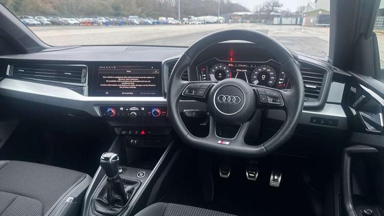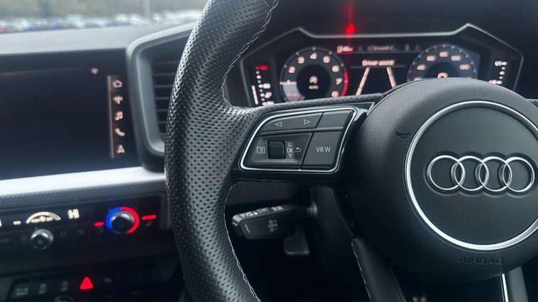 10.25" Digital instrument cluster display classis style instrument dials + speed, odometer, time, outside temperature, telephone menu + fuel level warning, Audi drive select - power steering assistance + engine, Audi smartphone interface with connect compatible smartphone via USB directly MMI display + Nav, music, third party apps controlled via MMI controller, Automatic start/stop system, Bluetooth interface, Cruise control, Driver's information system, Electromechanical power steering, Emergency e-call, Lane departure warning system, Rear parking sensor, Service interval indicator, Speed limiter, Voice control system, Washer fluid level indicator, Sports suspension, 2 x USB type C connection points, 6 passive loudspeakers, DAB Digital radio, MMI radio plus with 10.1" colour MMI display screen and MMI touch, Auto dimming rear view mirror, Black side skirts, Body coloured bumpers, Door sill trims with aluminium inlays and logo, Electric front and rear windows, Electrically adjustable, heated, folding door mirrors with integrated LED side indicator, Front side air inlets in grained matt black and C frame in anthracite black, Front wing badges, Heat insulating glass windscreen and side windows, Heated rear windscreen, High level LED brake light, LED headlights with LED rear lights + dynamic rear indicators + headlight adjustment and high beam, turning light + LED daytime running lights, Privacy glass, Rain and light sensors, Rear fog lights, Rear side wing doors, Rear wiper, Side front spoiler lips in grained matt black, 12V socket in centre console with two cup holders, 3 rear seats with headrests, 3 seat bench in 2nd row, 3 spoke flat bottomed multi-function plus leather steering wheel with S badging, grips in preforated leather and contrast stitching, 40:60 Split folding rear seat or folded fully, Black cloth headlining, Driver and passenger seat with manual height adjust with forward and backwards adjustment, Front and rear black floor mats with contrast stitching in fine silver, Front head restraints, Front passenger seat, Height and reach adjustable steering wheel, ISOFIX child seat mounting for front passenger and outer rear seats including top tether attachment point of outer rear seats, Leather gear knob with aluminium trim, Leather handbrake grip, Luggage compartment light with front and rear reading lights, Manual air conditioning, Manually adjustable lumbar support in front seats, Stainless steel pedals, Black styling pack - A1 Sportback Black Edition, LED interior lighting pack - A1, Luggage compartment pack - A1, 3x3 point rear seatbelts, Audi pre-sense front with pedestrain and cyclist recognition, Brake assist function, Driver and front passenger airbag with front side and head airbags, Electronic Stability Control including ABS, EBD, ASR and EDL, Front passenger airbag deactivation switch, Hill hold assist, Manual rear child locks, Seatbelt height adjustment for front seats, Seatbelt monitoring, Tyre pressure warning light, Warning triangle and first aid kit, Anti theft alarm, Anti theft wheel bolts and loose wheel warning, Immobiliser, Remote central locking with 2 foldaway keys, Aluminium trim for control switches, air vents and digital instrument cluster, Black dashboard, Silver grey inlays polygon structure in diamond paint finish, Structured grey accent areas including air vents, door handle recesses and centre console in quartz paint finish,