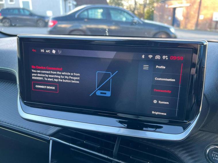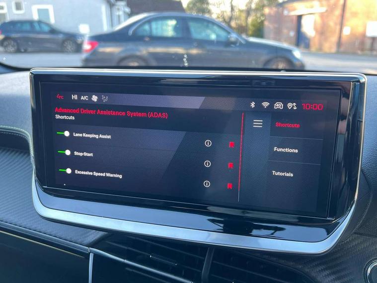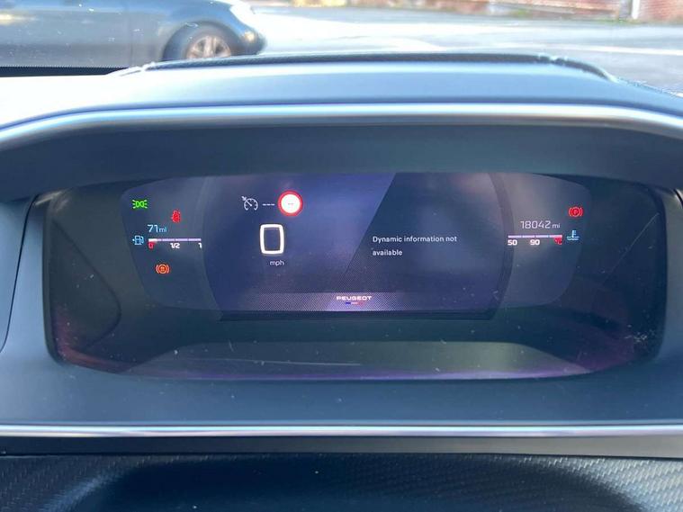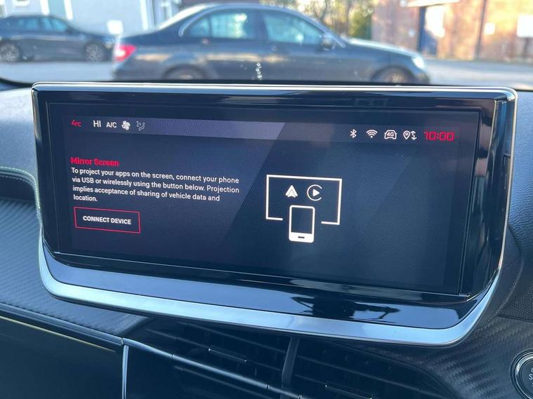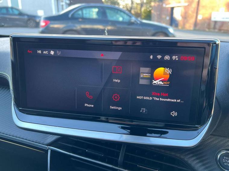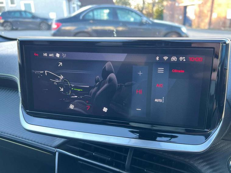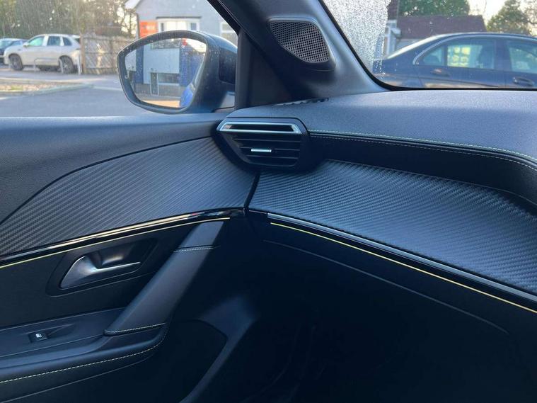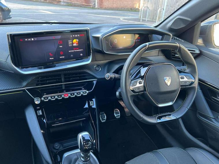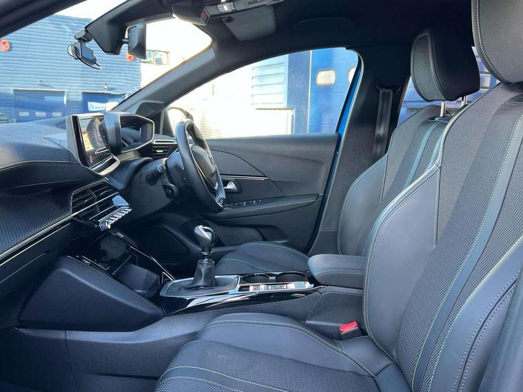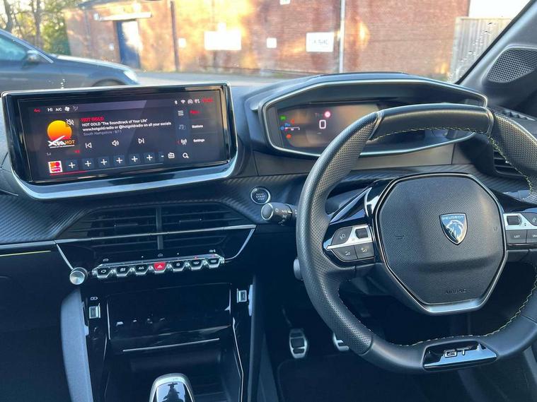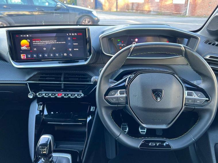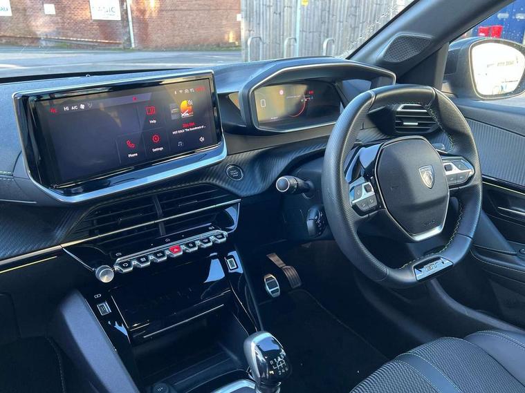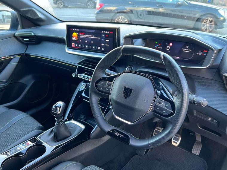 Bluetooth telephone facility, Drive mode select (Eco/Normal/Sport), Driver attention warning, Emergency call service, Exterior temperature indicator with ice warning, Front and rear parking sensors, Multi function trip computer, PEUGEOT i-Cockpit with 10" configurable 3D colour head up instrument panel, PEUGEOT i-Cockpit with 10" HD capacitive colour touchscreen, PEUGEOT i-Cockpit with compact steering wheel, PEUGEOT SOS and assistance, Push button start, Smart phone docking station, Smartphone 15W wireless charging plate, Speed limit recognition and recommendation, Start/stop system, Wireless mirror screen with apple carplay and android auto, 6 Speakers - 2 tweeters and 4 door speakers, DAB Digital radio, Peugeot i-connect infotainment system - 10in HD touchscreen, AM/FM/DAB digital radio, Wifi Mirroring, Bluetooth & 2 USB connection, USB-A socket (x1) and USB-C socket (x1) - rear, USB-C data and charge socket and USB-C charge socket in front, Voice recognition for radio, navigation and telephony features, 2 X Rear number plate lights, Acoustic windscreen, Antenna - Gloss Black 'fin' design, Automatic hazard light activation upon heavy brake application, Body coloured exterior door handles, Dark tinted rear side and tailgate windows, Diamond black rear spoiler (roof), Door sills protection with PEUGEOT signature lettering, Electric heated and power folding door mirrors with courtesy floor lighting, Frameless electrochrome interior rear view mirror, Full LED headlights with automatic height adjustment and PEUGEOT smartbeam assist, Gloss black B pillar, Gloss black door mirror shells, Gloss black front bumper grille with body colour accents, Gloss black rear cluster connecting strip, Gloss black wheel arch extensions, Gloss black window weatherstrips, GT model designation badging on C pillar, GT model designation badging on tailgate, Headlights left on audible warning, LED 3 claw horizontal rear lighting signature (with daylight function) and LED brake lights, indicators and reversing lights, LED daytime running lights with distinctive 3 claw signature, LED front indicators, LED third brake light, Model designation badges front and rear in basalt grey, One touch electric front/rear windows with pinch protection, Rear bumper with gloss black finish, Rear reversing lights, Rear side wing doors, Rear windscreen wiper triggered automatically in reverse gear, Roof spoiler, Tailgate with heated rear windscreen and wiper blade, Variable front intermittent wipers, 1/3 to 2/3 split folding rear seats, 12V socket, 3 seat bench in 2nd row, 8 Colour personalisable ambient lighting, Adamite green contrast stitching to front and rear armrest, front centre console, dashboard facia, Aluminium pedals, Automatic mono zone climate control air condition, Boot lighting, Driver and front passenger dynamic seats, Driver and front passenger seat manual adjustment in longitudinal and back rest angle, Driver and front passenger seat mechanical height adjustment, Driver and passenger sun visors, front footwells and central storage with LED lighting, Electric power steering with reach and rake adjustable steering column, Front centre armrest with storage compartment, Front LED interior light, front LED reading spotlights(x2), rear LED reading spotlight(x2), Gear shift indicator, High centre console with 2 cup holders, Luxury carpet mats, Map pockets on the backs of the front seats, Multi function full grain perforated leather steering wheel with adamite green stitch detail and 'GT' emblem, Passenger seat height adjuster, Piano keys gloss black plated toggle switches to access main functions of the vehicle, Rear centre headrest, Roof lining - Mistral black, Seatbelt unfastened on the move audible and visual alert for front and rear seats, Single front passenger seat, Visibility pack - 208, 2x Isofix child seat fitting on outer rear seats, 3 rear 3 point seatbelts, ABS (Anti-lock Braking System) with EBD (Electronic Brakeforce Distribution) and EBA (Emergency Braking Assistance), Active safety brake with night function/cyclists/pedestrians, Child locking functionality on rear doors, Driver and front passenger airbag with passenger airbag deactivation, Driver/front passenger side airbags, Electric parking brake, ESP with Hill Assist, Front and rear curtain airbags, Front and rear disc brakes, Front optimised safety headrests and 3 x rear retractable headrests with height adjustable, Front three point retractable seatbelts with force limiters, Remote plip(x2) for locking, unlocking, includes emergency key blade, Tyre pressure monitoring system, Acoustic vehicle alert system (AVAS), Alarm - Connected, volumetric , perimetric, anti lift sensor, Automatic door locking when moving off, Deadlock, Electronic code immobiliser, Peugeot Open and Go System, Remote central locking, Carbon effect Dashboard, front and rear door panel finish, 17" Yanaka two tone diamond cut alloy wheels wheels includes gloss black inserts, Space saver spare wheel,