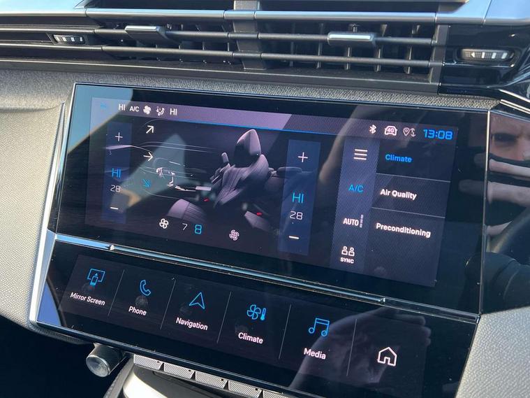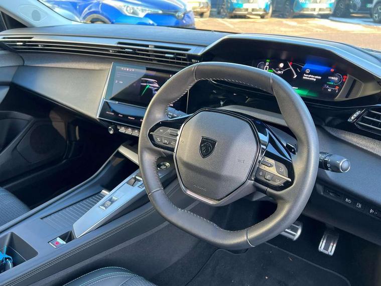 10" Capacitive colour touchscreen with connected 3D navigation, Bluetooth telephone facility, Compact automatic gearbox impulse selector, Driver attention warning, E-remote control, Emergency call service, Exterior temperature indicator with ice warning, Intelligent speed adaptation, Lane keep assist, Mirror screen with mirror link, apple carplay and android auto, Multi driving mode selector - Electric/HYBRID /Sport mode, Multi function trip computer, PEUGEOT i-Cockpit with 10" digital instrument panel display, PEUGEOT i-Cockpit with compact steering wheel, Rear parking sensor, Service interval indicator, Speed limit recognition and recommendation, Sport pedals with foot rest, Wireless charging, Mode 3 type 2 cable for wallbox charging, 6 speakers radio with mp3 compatible, DAB Digital radio, Peugeot customisable iToggles, Steering column mounted multifunction controls, Voice recognition for radio, navigation and telephony features, Acoustic and tinted windscreen, Automatic hazard light activation upon heavy brake application, Automatic triggered rear windscreen wiper in reverse gear, Body colour door handles, Dark tinted rear side and tailgate windows, Dichroic hybrid badging, EcoLED headlights, Electric operated/heated door mirrors, Framed electrochromatic rear view mirror, Front and rear electric windows with one touch/anti pinch, Front grille with horizontal chrome stamping, Gloss black finish B pillar, Gloss black rear cluster connecting strip, High beam assist, LED rear number plate lights, LED side indicator lights integrated into door mirrors, Manual headlight position correction/adjustment, Model designation badges on front and rear, Nera black door mirrors, Peugeot signature LED daytime running lights, Power folding door mirrors, Rain sensor, Rear full LED 3D peugeot signature claw effect lights with daylight function, Rear lower bumper gloss black diffuser effect trim, Rear reversing lights, Rear side wing doors, Tailgate with heated rear windscreen and wiper blade, Twin exhaust pipes with chrome surround, 1/3 to 2/3 split folding rear seats, 12V socket, 2 front USB socket including 1 USB type c, 3 seat bench in 2nd row, 8 Colour personalisable ambient lighting, Automatic air conditioning with AQS 3, Central front armrest with storage compartment, Driver and front passenger seat height adjustment, Driver and front passenger seat manual adjustment in longitudinal and back rest angle, Driver seat lumbar adjustment, Dynamic front seats, Electric power steering with reach and rake adjustable steering column, Falgo tri-material with isabella leather effect and cloth upholstery, Front central console with two cup holders, Manual driving mode - change gear manually via steering mounted paddles, Multifunction split leather and gloss steering wheel, Piano keys gloss black plated toggle switches to access main functions of the vehicle, Roof lining - light grey, Seatbelt unfastened on the move audible and visual alert for front and rear seats, Single front passenger seat, Ski hatch with central rear armrest with cup holder, Sunvisor with concealable mirrors and LED lighting, Visibility pack with automatic magic wash windscreen wipers - 308, 2x Isofix child seat fitting on outer rear seats, 3x Rear three-point retractable seatbelts with force limiters in the outer rear seats, ABS + EBD + EBA, Active safety brake with night function/cyclists/pedestrians, Adaptive driver and front passenger airbags with passenger airbag deactivation function, Automatic post collision braking, Child locks on rear doors, Driver/front passenger side airbags, Electronic parking brake, ESP, Front and rear curtain airbags, Front optimised safety headrests and rear retractable headrests (x3), height adjustable, Front three point retractable seatbelts with force limiters, Front/rear disc brakes, Hill start assist, Tyre pressure sensor, Acoustic vehicle alert system (AVAS), Automatic door locking when moving off, Deadlocking system, Electronic code immobiliser, Locking wheel nuts, Thatcham cat. 1 alarm with anti lift sensor, 17" Calgary diamond cut alloy wheels,