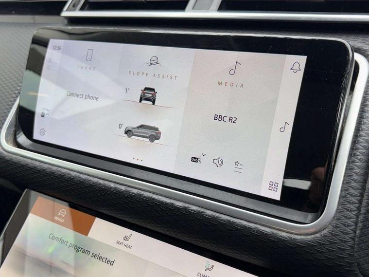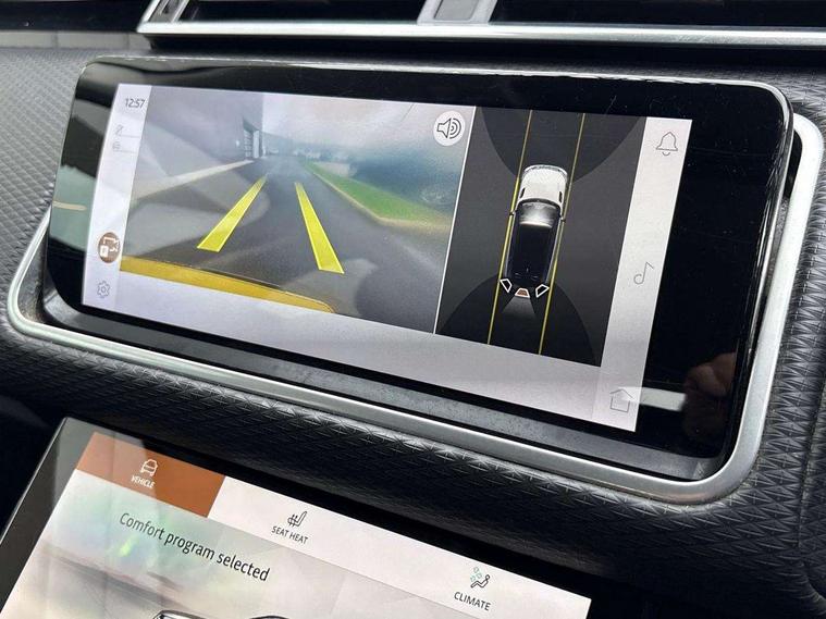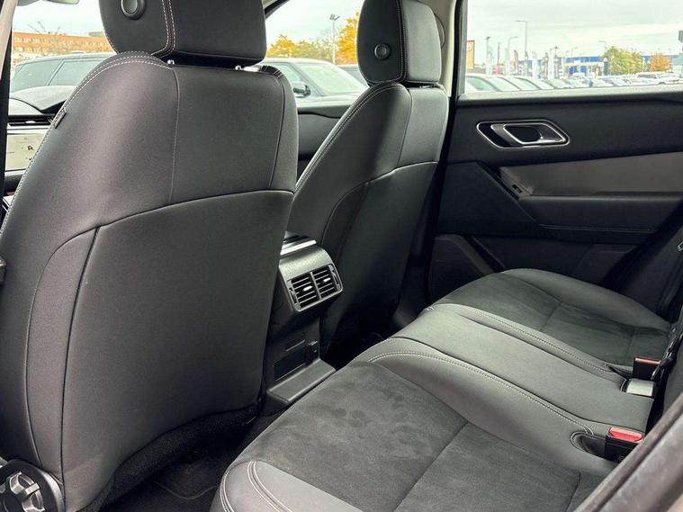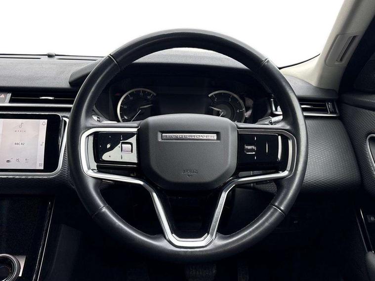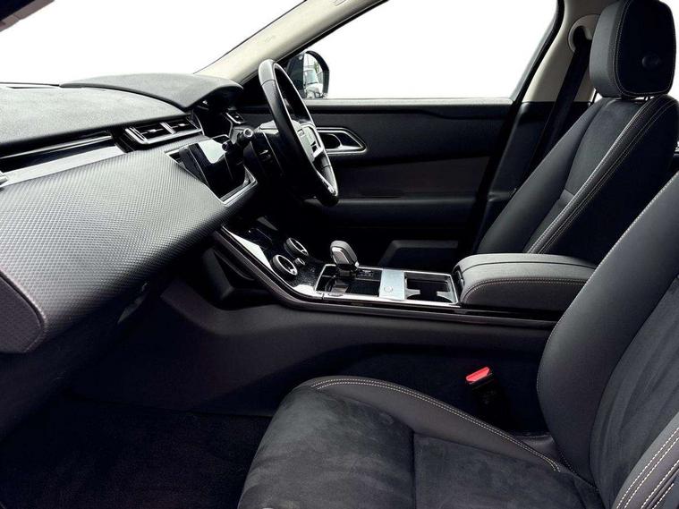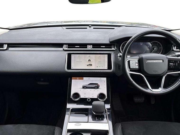 10" deployable touchscreen, Android Auto, Apple car play, Bluetooth connectivity, Brake pad wear indicator warning light, Driver condition monitor, eCall emergency call system, InControl remote, Lane keep assist, Push button start, Service indicator, Speed proportional electronic power assisted steering (EPAS), Trip computer, Voice control system, 8 speed automatic transmission, Open differential with torque vectoring by braking, Single speed transfer box, Digital Audio Broadcast radio-DAB, Steering wheel mounted controls, Acoustic laminated windscreen, Auto dimming interior rear view mirror, Automatic headlamp levelling, Automatic headlights, Body coloured bumpers, Boot protection plate, Electric windows with one touch open/close and anti trap, Flush deployable exterior door handles, Follow me home headlights, Heated rear window with timer, Heated washer jets, LED 3rd brake light, Metal front tread plates, Metal load space scuff plates, No badge - Removes engine badge, Rain sensor windscreen wipers, Rear fog lights, Rear side wing doors, Rear wash/wipe, Tailgate/boot lid spoiler, Trailer stability assist, Velar badge, 3 seat bench in 2nd row, Ambient lighting, Driver/passenger sunvisors with illuminated vanity mirrors, Isofix system on outer rear seats, Loadspace cover, Overhead lighting console, Overhead stowage for sunglasses, Passive front headrests, Rear air vents, Rear centre headrest, Satin chrome gearshift paddles, Single front passenger seat, Standard interior, Twin front cupholders, Twin sliding front centre armrest, 355mm front brakes and 325mm rear brakes, 3x3 point rear seatbelts, Anti-lock braking system (ABS), Cornering brake control, Curtain airbags, Customer configurable autolock, Door side intrusion beams, Driver airbag, DSC - Dynamic Stability Control, Electronic brake force distribution, Electronic parking brake, Electronic traction control, Emergency brake assist, Emergency braking, Front and rear seatbelt reminder, Hill descent control, Hill launch assist, Low traction launch, Passenger airbag, Power operated child locks, Rear airbags, Roll stability control, Side airbags, Tyre pressure monitoring system, Unpainted brake calipers, Global lock and unlock switch on driver door, Immobiliser, Intrusion sensor, Keyless entry, Lock only switch on front passenger door, Locking wheel nuts, Perimetric alarm, Remote central locking, Standard IP end caps,