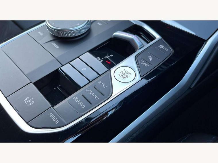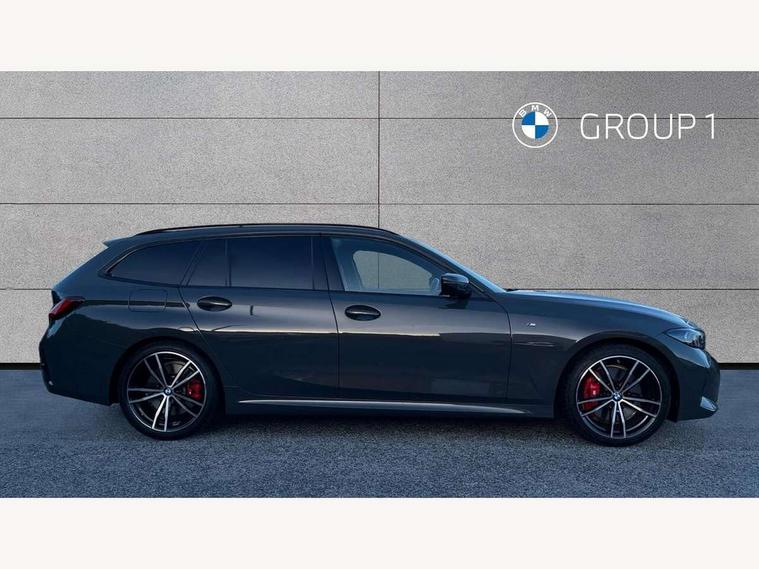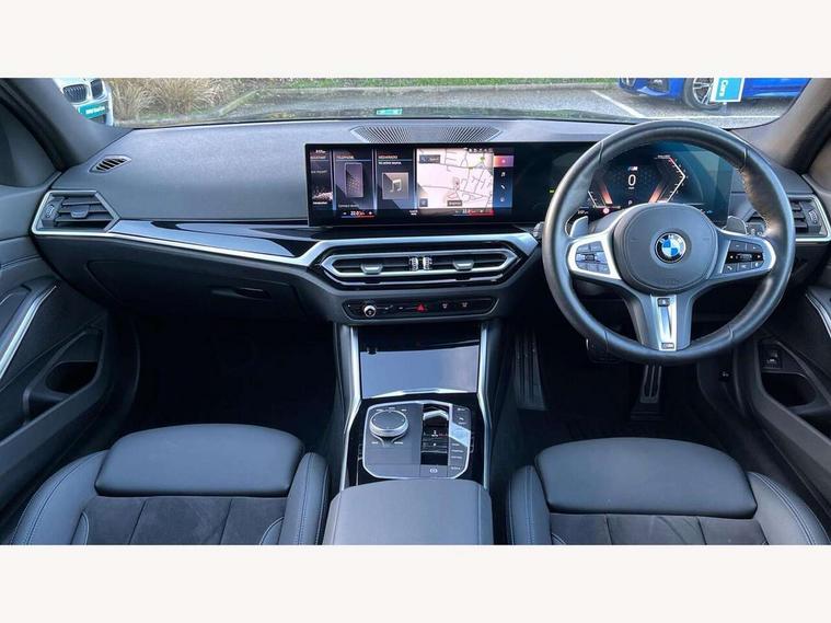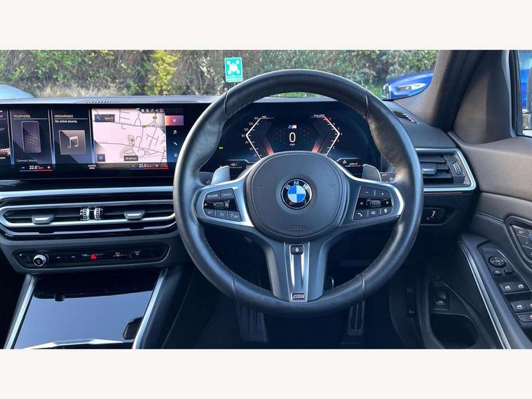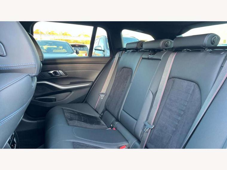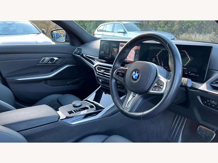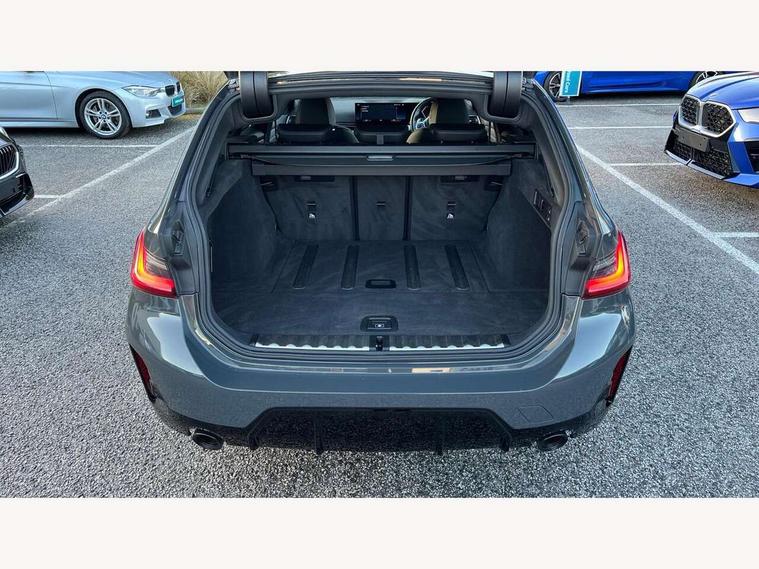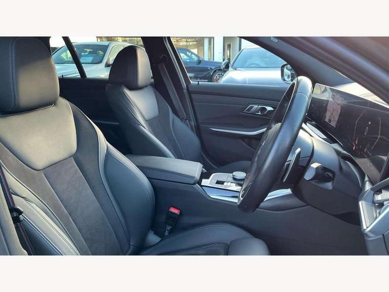 Active guard plus, Attentiveness assist, Automatic Start/stop button, BMW iDrive, BMW Teleservices, Condition based service, ConnectedDrive Services, Driving experience switch, Live cockpit plus with Navigation + 12.3" instrument display + 14.9" display, Intelligent voice assist, 2 USB, 4G LTE connect, Oil sensor for level and grade, Preparation for driver assistance, Shifting point display, Variable sport steering, Double joint spring strut front axle, Fuel tank breather system, M sport suspension, Sport automatic transmission with steering-wheel mounted gearshift paddles and launch control, DAB tuner, 3rd brake light, Acoustic glazing, Automatic headlight beam throw control with load dependent regulating reaction, dynamic compensation of braking dive and acceleration squat, BMW emblem, engine compartment lid and tailgate, Body colour roof fin, Door sill strips, Electric windows - front and rear, with open/close fingertip control, anti-trap facility and comfort closing, Follow me home headlight function, Front and rear bumper system with replaceable deformation elements, Front apron plastic in body colour, Fuel filler flap - right rear in body colour, Heated washer jets, High gloss shadow line exterior trim, High gloss shadow line roof rails, Illuminated bow type door handles in body colour drivers side with door lock, Interior rear view electrochromatic mirror with automatic anti dazzle function, LED headlights with LED daytime running lights and LED turn indicator, LED rear lights, Licence plate panel integrated into front bumper and tailgate, Matt black B-pillar finsher, Matt black window recess cover, Model designation on right side of tailgate, One piece front bumper cover including towing eye cover in body colour, Rain sensor with automatic headlight activation, Rear side wing doors, Rear wiper, Reversing lights, Side frame decorative moulding black matt, Visible exhaust tailpipe finisher, Welcome lights in interior and door handle area, 12V power socket in front storage compartment, 2 front cupholder in centre console with clamping elements and matt black inlay, 3 seat bench in 2nd row, 3 zone automatic air conditioning, 40:20:40 split folding rear seat with loading system, Ambient inside door handle light, Ambient light design projected onto the left and right entering and exiting area, Ambient lighting front and rear with 9 selectable colours, Ambient storage compartment lighting in the centre console, Anthracite headlining, Armrest integrated in front and rear door trim + front centre console armrest, BMW ID, Contour lighting in instrument panel and door trim panel, Cruise control operation in steering wheel, Driver backrest width adjustment, Folding rear centre armrest with 2 cupholders, Front and rear ambient footwell lighting, Front and rear door exit lighting (left / right), Front and rear headrests, Front and rear reading lights, Front and rear velour floor mats, Front sport seats, Heated front seats, Height adjustable mechanically and infinitely variable steering column, Illuminated armrest storage compartment, Illuminated glove compartment, Illuminated luggage compartment, Lashing eyelets in luggage compartment, M Sport multifunction leather steering wheel, Make-up mirror lights, Single front passenger seat, Standard seat for driver and passenger with manual adjustment, Sunvisors with vanity mirrors and ticket pocket, Toolkit located in luggage compartment, Connected pack professional - 3 Series Saloon/Touring, Interior and exterior mirror pack - 3 Series Touring/Saloon, M Aerodynamics package - 3 Series Saloon/Touring, M sport exterior styling pack - 3 Series Saloon/Touring, Storage compartment pack - 3 Series Saloon/Touring, 3x3 point rear seatbelts, BMW emergency call, Child locks on rear doors, Crash sensor activating of airbags, Unlocking doors, hazard warning lights, interior light, safety battery terminal, Driver and front passenger with seat occupancy detection for driver's and passenger side, Driver and passenger side airbags, body protection at side and airbags deploy from seat backrests, Dynamic brake control, Dynamic stability control + (DSC+) - Anti-lock Braking System (ABS) with brake assist and cornering brake control + Automatic Stability Control (ASC), Dynamic Traction Control - DTC, Electric parking brake including automatic hold function and automatic release of the parking brake when driving off, Electronic differential lock control (EDLC), Head airbags in 1st and 2nd row, head protection at side, curtain airbags open from headliner above 1st and 2nd row, Plastic fuel tank, Side impact protection, Tyre pressure monitoring with three level warning strategy, Ventilated front and rear disc brakes, Warning triangle and first aid kit, Alarm system, Centre lock switch, Closing system with central locking, Electronic vehicle immobiliser,